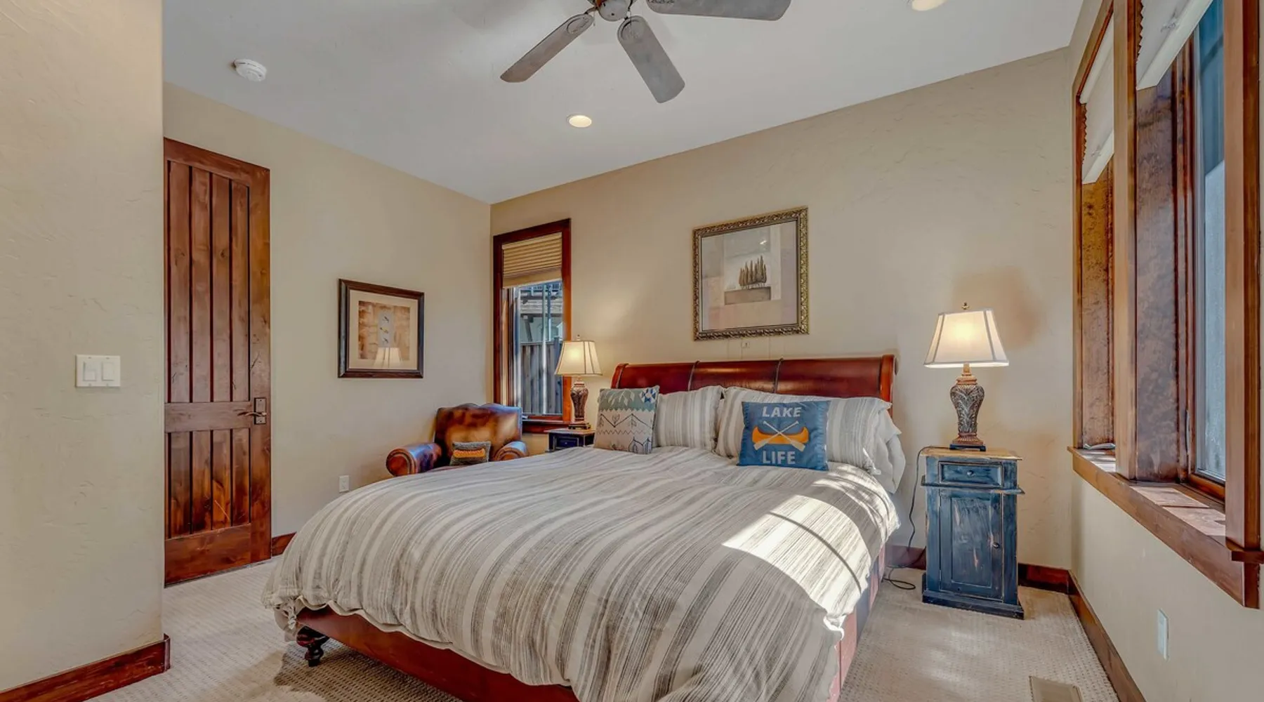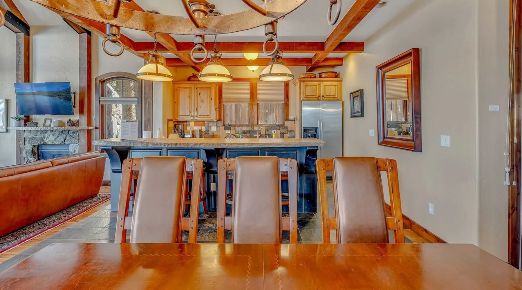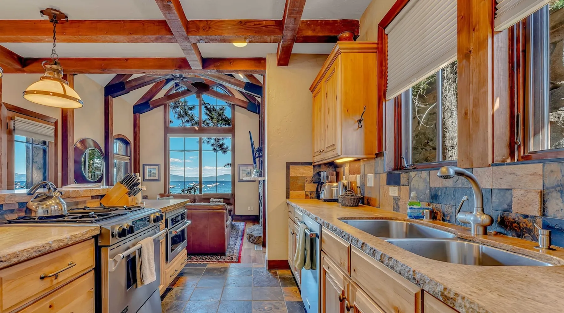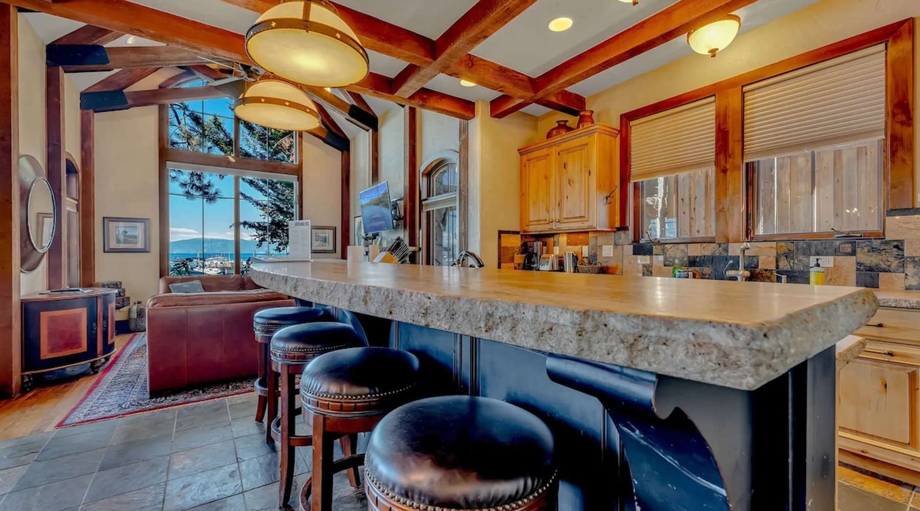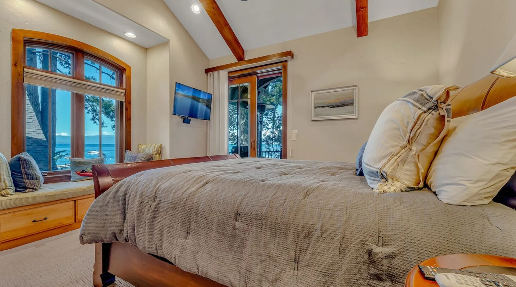 This Lake Tahoe vacation rental combines mountain charm with modern comforts, offering 3 floors of inviting living space. With 3 bedrooms, 3 bathrooms, and thoughtful amenities like a fully equipped kitchen, free WiFi, and central heating, this home is perfect for your next getaway. Enjoy private balconies with peaceful views, cozy evenings by the fireplace, and easy access to year-round outdoor adventures. Make this your base for exploring the beauty of North Lake Tahoe. The space Location perks: Lake Tahoe (on-site), Homewood Mountain Resort (0.1 miles, CLOSED for the 2024-2025 ski season), Tahoe City (6.3 miles), Alpine Base Area at Palisades Tahoe (13.1 miles), Northstar California Resort (21.6 miles) Interior: - Kitchen (drip coffee maker, Crockpot, blender, cooking utensils, tableware) - Gas fireplace - 2 Smart TVs with cable (50” in living room, 46" in bedroom) - Free WiFi (16 Mbps) - Washer and dryer - Central heating, no A/C (ceiling fans in bedrooms) - 1,846 sq ft Exterior: - Beach access - Patio - 2 balconies - Fire pit - Gas grill - On-site tandem parking for 2 vehicles in driveway Optional luxe add-on services (additional fees, please contact host to arrange): - Airport transfer - Chef/bartender - Grocery pre-stocking - Mid-stay clean Upper Floor: 2 bedrooms, 1 en-suite bathroom, 1 full bathroom Main Floor: Living room, kitchen, dining room, 1 bedroom, 1 full bathroom Whether you're here to ski, relax by the lake, or explore the beauty of Lake Tahoe, this home provides the perfect blend of luxury and convenience! Upon entering the home on the main level, you'll find an open layout with soaring windows that frame the crystal blue waters of Lake Tahoe—a stunning backdrop for your stay. On this level, there is a beautiful kitchen fully equipped with everything you need to prepare home-cooked meals, including a Crockpot and blender. The kitchen features a spacious bar with 4 bar stools, perfect for grabbing a snack, enjoying a meal, or catching up on remote work. A 7-person dining table is steps away from the kitchen, offering the perfect spot to enjoy a meal with your group while taking in the lake views. Gather in the living room on the 2 leather couches, warm up by the gas fireplace, and watch a movie on the 50” Smart TV. In the summertime, step outside to the private patio, where an outdoor table and seating offer a dreamy spot to relax while enjoying the lake views. When you are ready to tuck in for the night, you'll find 3 bedrooms, all with king beds and ceiling fans for added comfort. The first guest bedroom is on the main floor, tucked away from the shared living space, and includes a wardrobe for storing your personal items. A full bathroom with a bathtub/shower combo is across the hallway from the first bedroom for convenient shared use. On the upper floor, you'll find a second guest bedroom with 2 closets and a private balcony with views of the ski lifts at Homewood. A second shared bathroom is next to this guest room and, like the main floor bathroom, includes a single-sink vanity and a bathtub/shower combo. Rounding out the upper floor is the master bedroom, a beautiful space with a 46” Smart TV, a window seat, a private patio overlooking the lake with a propane heater, and an en-suite bath. The en-suite bath is a spa-like space with a double-vanity sink, a steam shower, and a jacuzzi tub. A washer and dryer are also included on the main floor, making it hassle-free to keep up with laundry needs during your stay. STR License Number: STR23-4666 Guest access Guests will have access to the entire home and 2 tandem parking spaces on one side of the driveway. Other things to note Please note that like most homes in the area, this home does not have A/C. Charcoal grills are strictly forbidden in this county and will result in a $1,500 citation if used. 4-wheel drive or 2-wheel drive tires with snow chains may be necessary for safe travel to this property, even if it hasn’t snowed in a few days. Please keep in mind that if you plan to ski, you are responsible for verifying the ski resorts' opening and closing dates. If you're interested in luxury add-on services like airport transfers, a private chef, bartender, grocery pre-stocking, or a mid-stay clean, please contact Local VR for details on availability and additional fees. Registration details STR23-4666