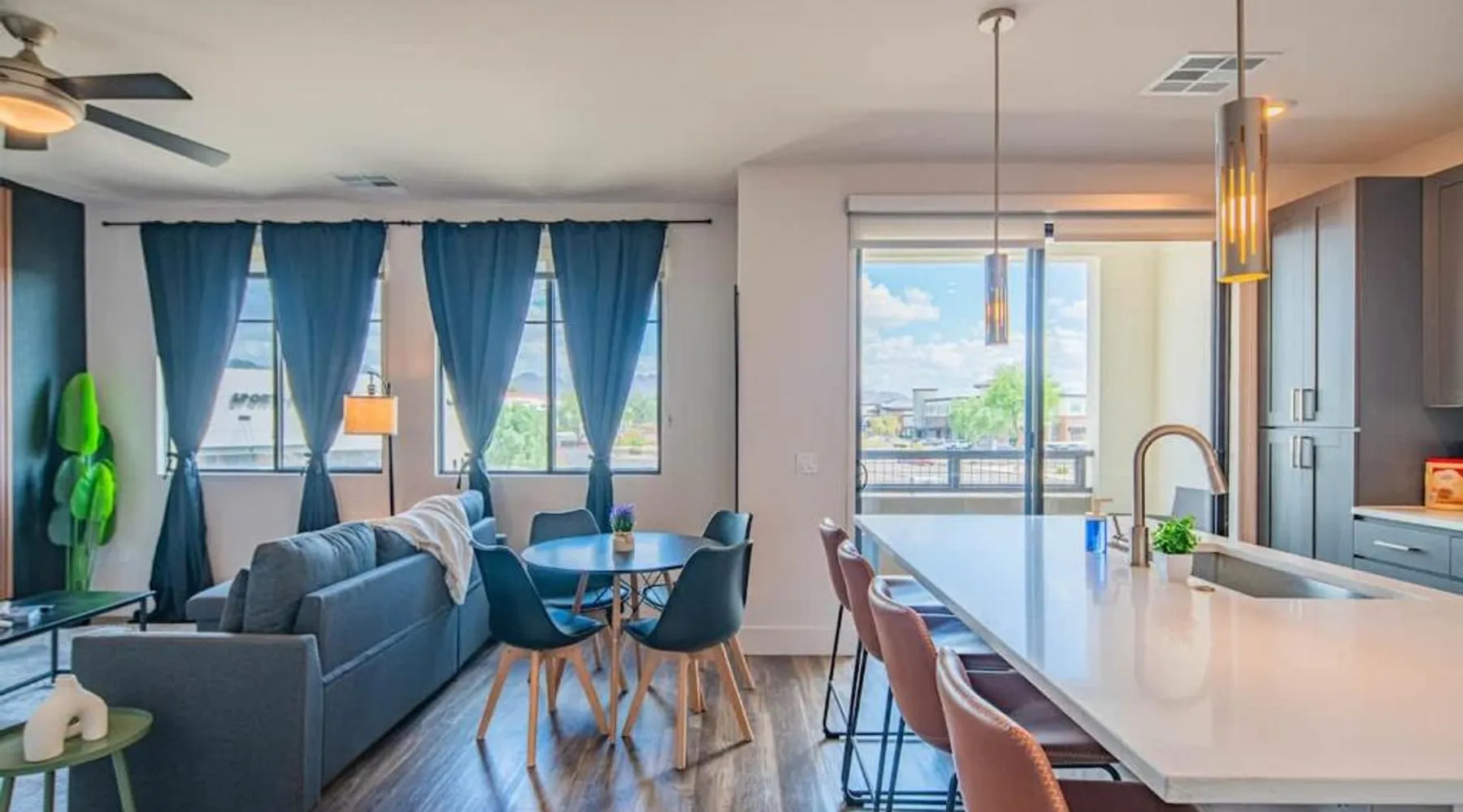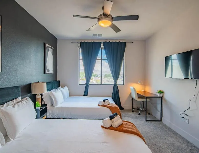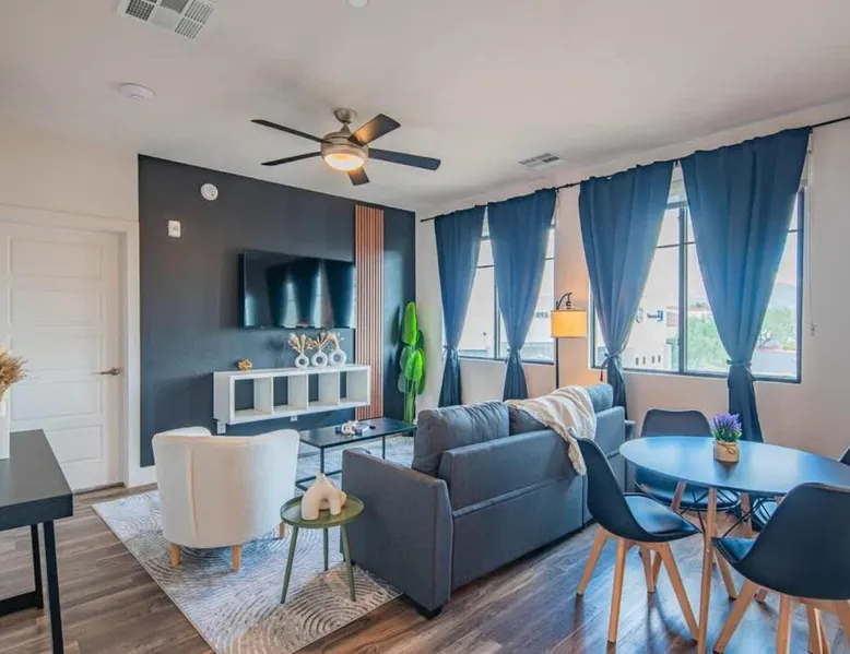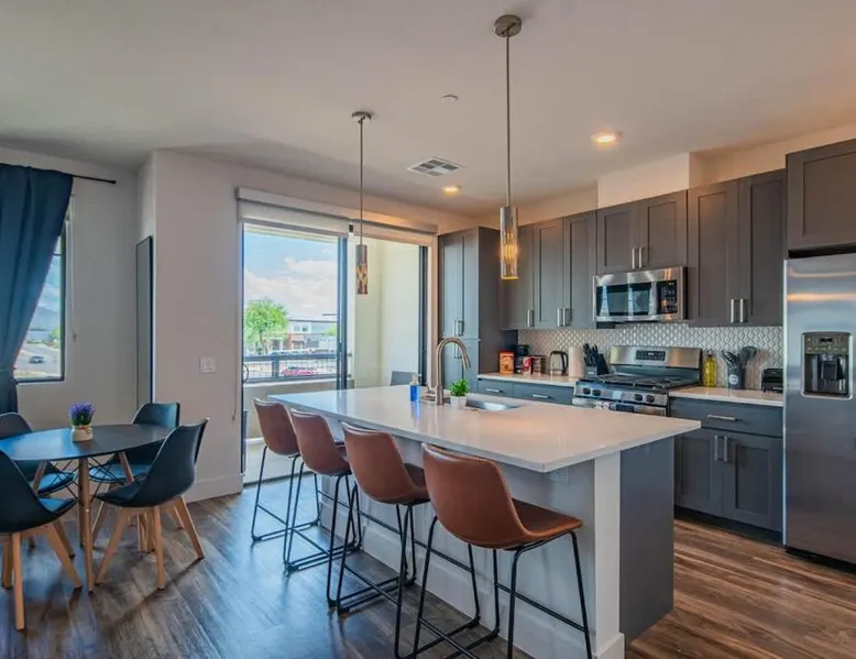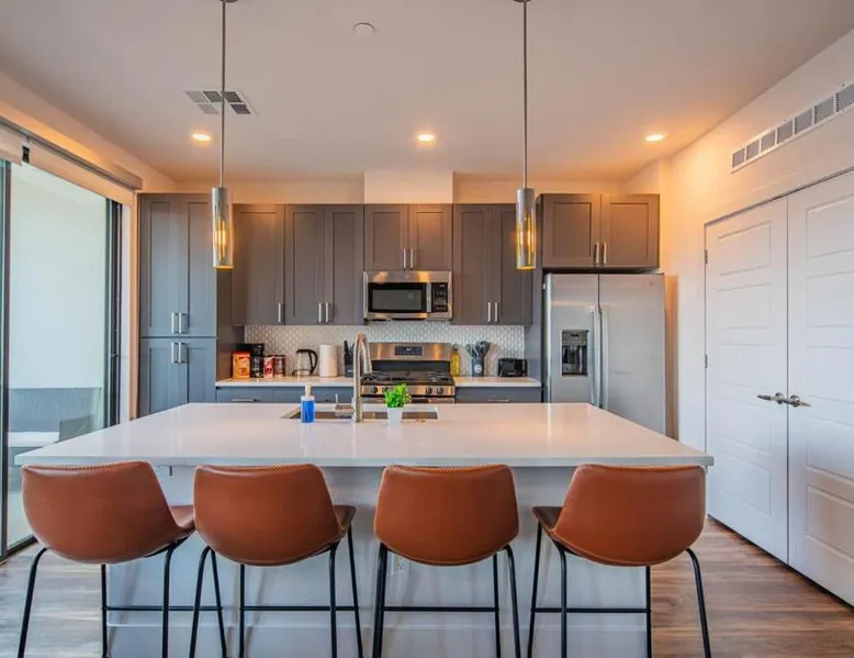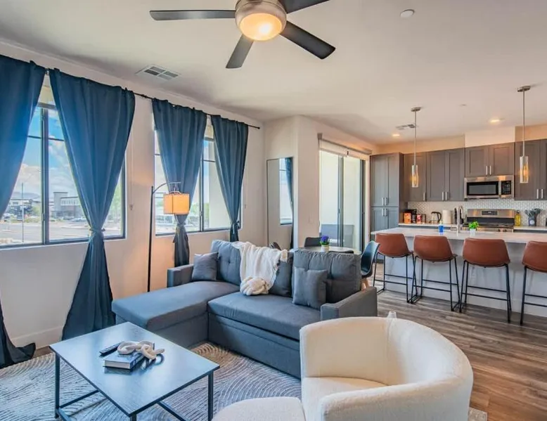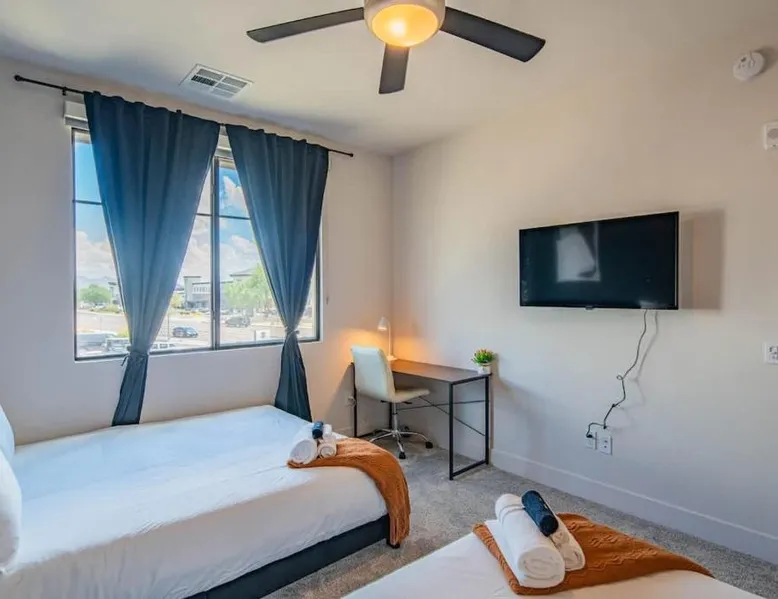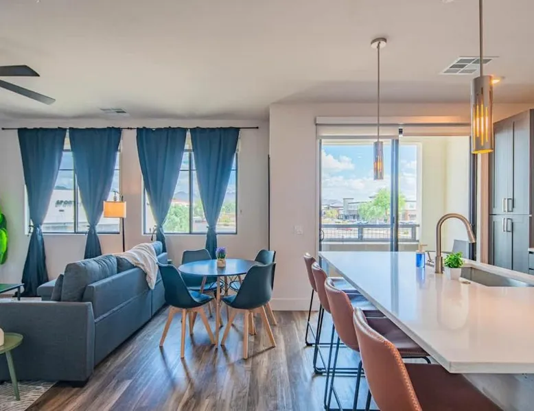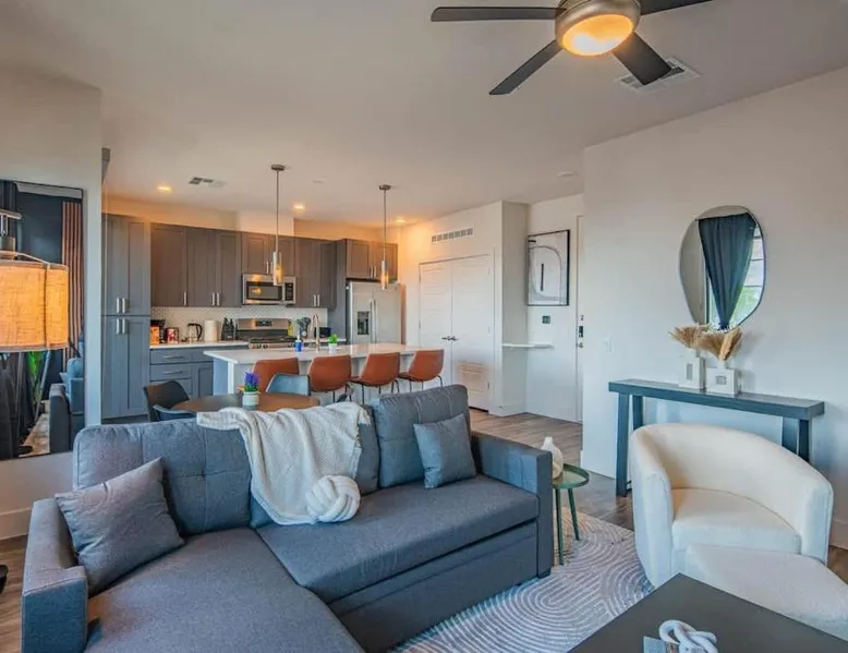 Spacious Living: Peaceful 1BR Kierland Common in Scottsdale offers a spacious apartment with one bedroom, one bathroom, and a comfortable living room. The property includes a private entrance and a fully equipped kitchen with modern appliances. Modern Amenities: Guests enjoy free WiFi, air-conditioning, and a fitness center. Additional amenities include a washing machine, dishwasher, microwave, and a fully equipped kitchen with a refrigerator, oven, and stovetop. Convenient Location: Located 1.2 mi from Scottsdale Airport, the apartment is close to attractions such as the Musical Instrument Museum (6.2 mi) and OdySea Aquarium (8.1 mi). Reception staff speak English. This spacious apartment consists of 1 living room, 1 separate bedroom and 1 bathroom with a hairdryer and free toiletries. Guests can make meals in the kitchen that comes with a stovetop, a refrigerator, a dishwasher and kitchenware. The air-conditioned apartment provides a TV, a washing machine, a private entrance and a tea and coffee maker. The unit offers 3 beds.