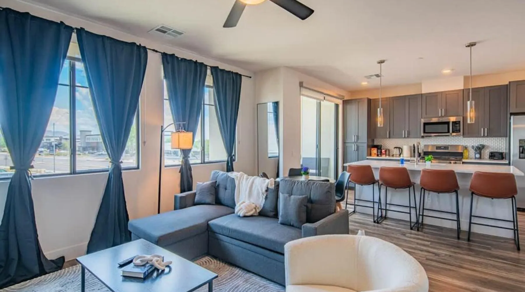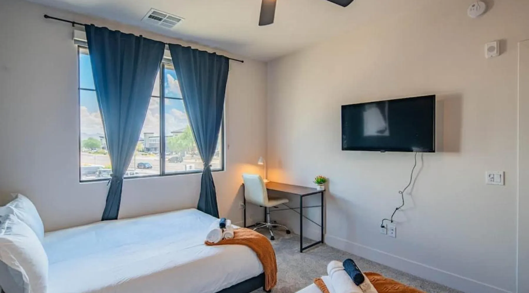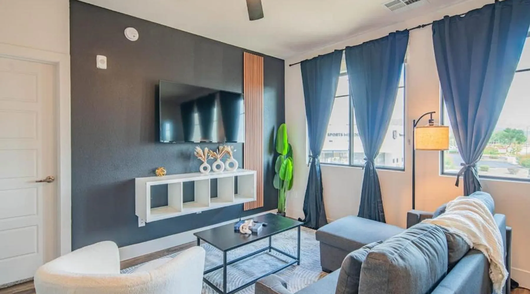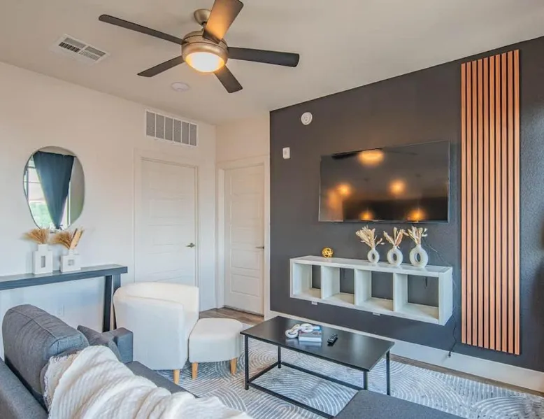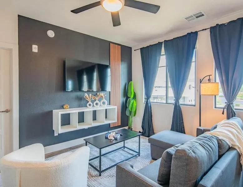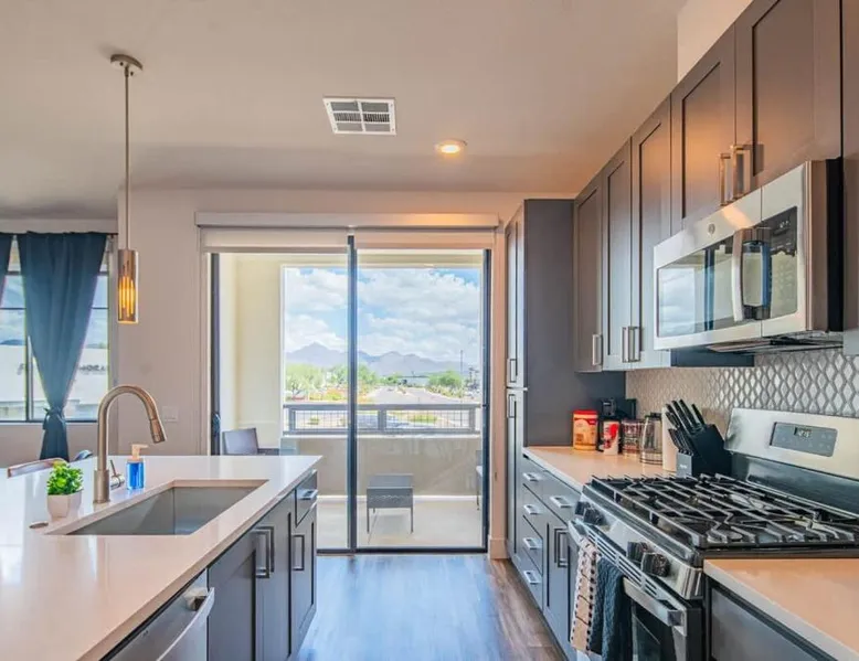 Spacious Living: Peaceful 1BR Kierland Common in Scottsdale offers a spacious apartment with one bedroom, one bathroom, and a comfortable living room. The property includes a private entrance and a fully equipped kitchen with modern appliances. Modern Amenities: Guests enjoy free WiFi, air-conditioning, and a fitness center. Additional amenities include a washing machine, dishwasher, microwave, and a fully equipped kitchen with a refrigerator, oven, and stovetop. Convenient Location: Located 1.2 mi from Scottsdale Airport, the apartment is close to attractions such as the Musical Instrument Museum (6.2 mi) and OdySea Aquarium (8.1 mi). Reception staff speak English. This spacious apartment consists of 1 living room, 1 separate bedroom and 1 bathroom with a hairdryer and free toiletries. Guests can make meals in the kitchen that comes with a stovetop, a refrigerator, a dishwasher and kitchenware. The air-conditioned apartment provides a TV, a washing machine, a private entrance and a tea and coffee maker. The unit offers 3 beds.