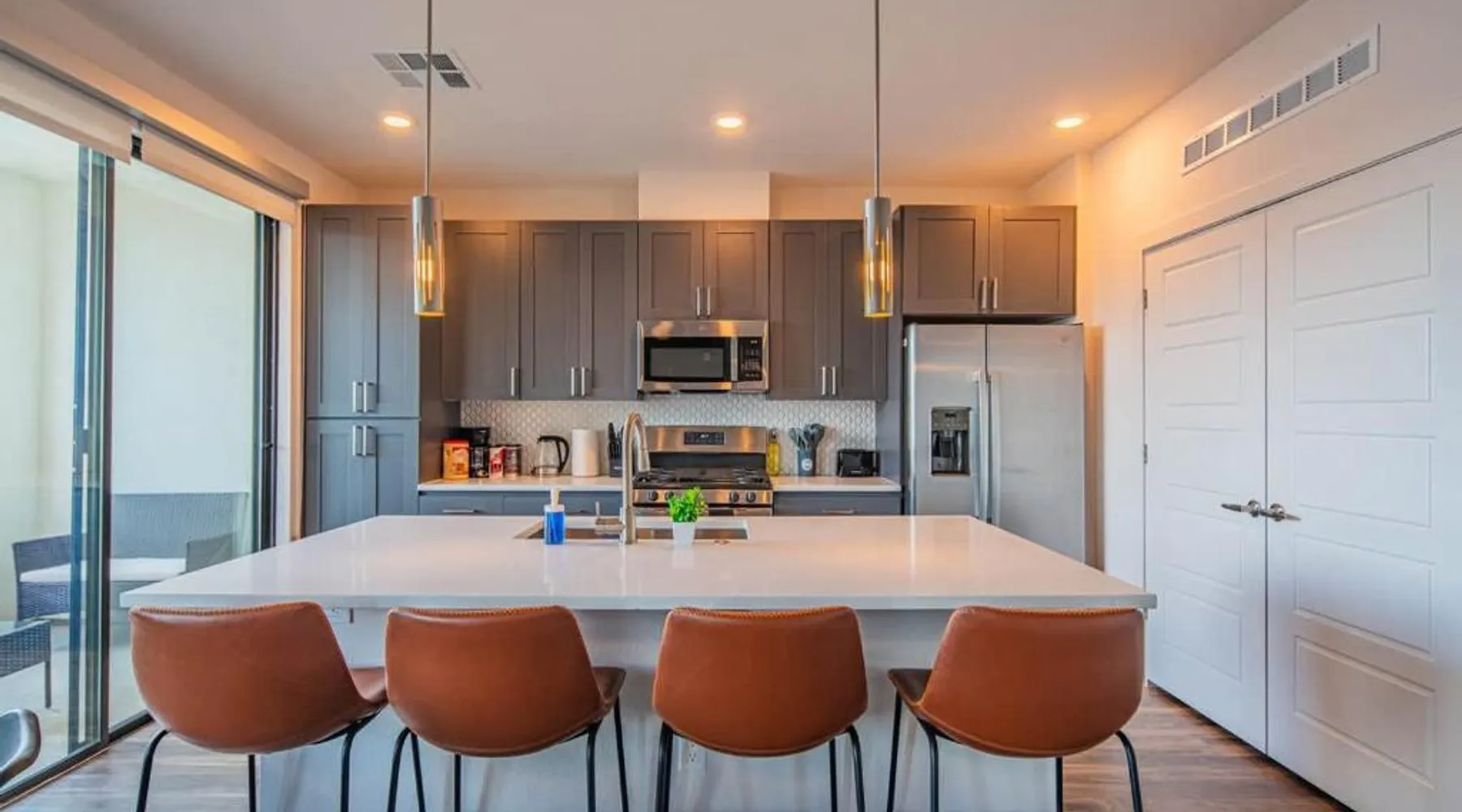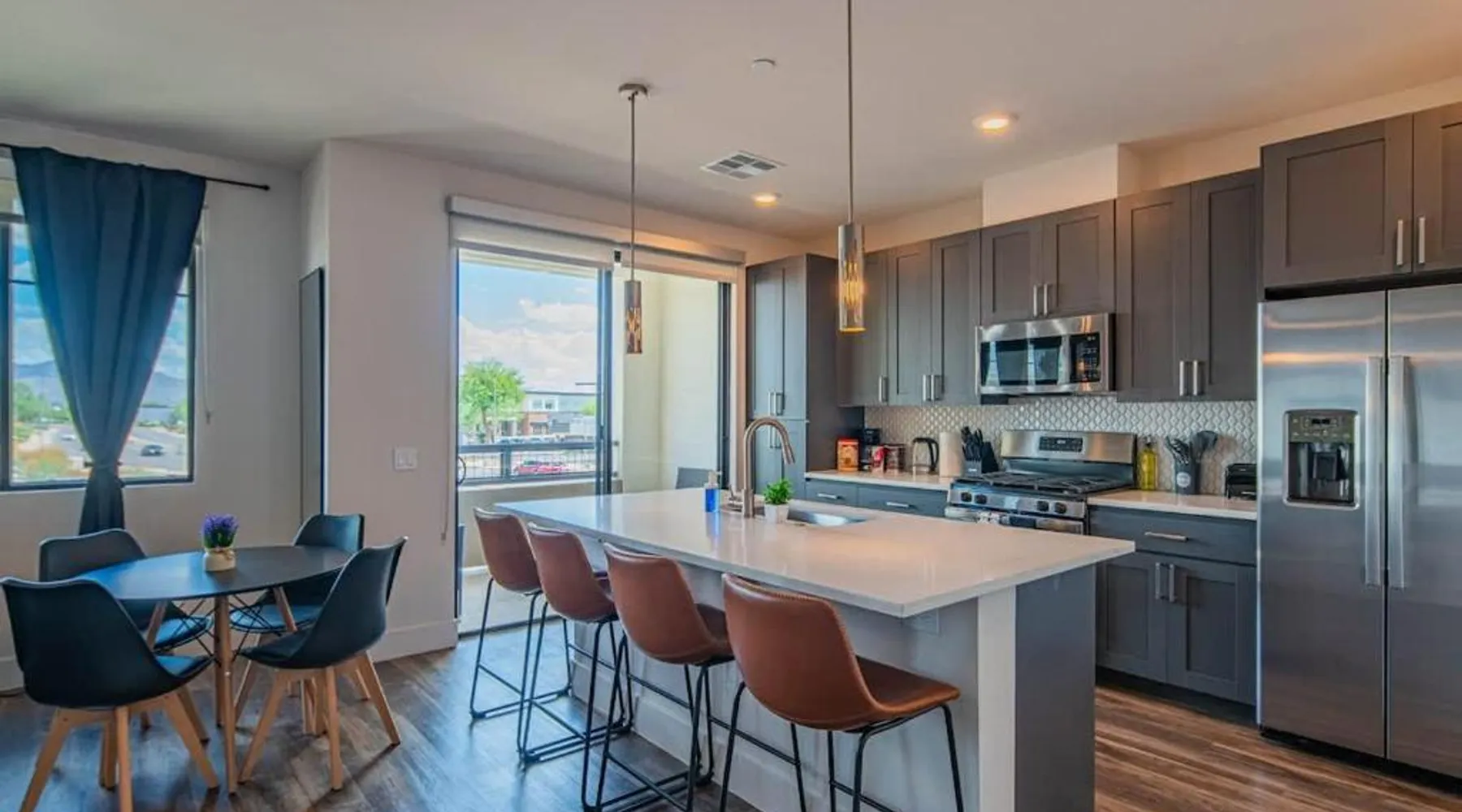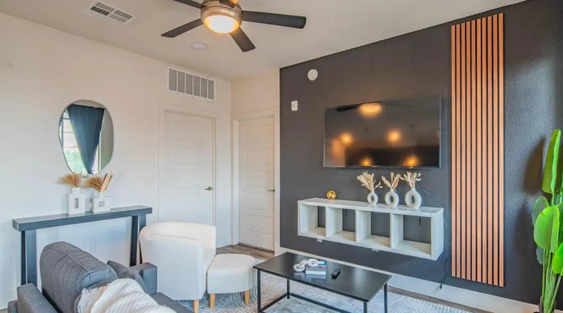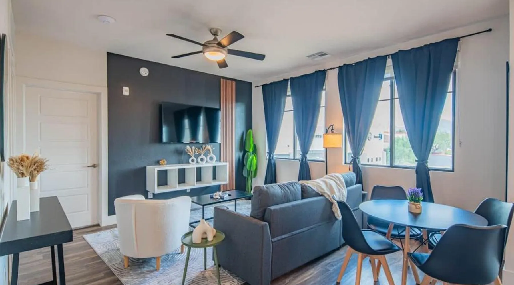 Spacious Living: Peaceful 1BR Kierland Common in Scottsdale offers a spacious apartment with one bedroom, one bathroom, and a comfortable living room. The property includes a private entrance and a fully equipped kitchen with modern appliances. Modern Amenities: Guests enjoy free WiFi, air-conditioning, and a fitness center. Additional amenities include a washing machine, dishwasher, microwave, and a fully equipped kitchen with a refrigerator, oven, and stovetop. Convenient Location: Located 1.2 mi from Scottsdale Airport, the apartment is close to attractions such as the Musical Instrument Museum (6.2 mi) and OdySea Aquarium (8.1 mi). Reception staff speak English. This spacious apartment consists of 1 living room, 1 separate bedroom and 1 bathroom with a hairdryer and free toiletries. Guests can make meals in the kitchen that comes with a stovetop, a refrigerator, a dishwasher and kitchenware. The air-conditioned apartment provides a TV, a washing machine, a private entrance and a tea and coffee maker. The unit offers 3 beds.