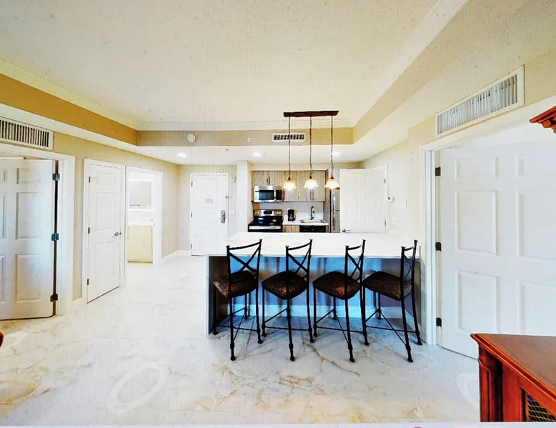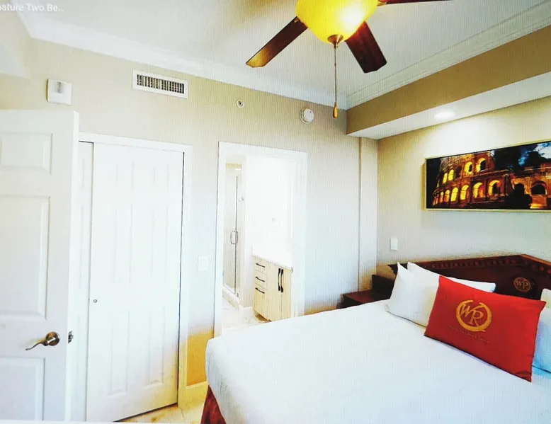 After an amazing day exploring Orlando theme parks and area attractions, escape to the brilliantly adorned Signature Two-Bedroom Deluxe Suite at Westgate Palace Hotel / Universal / I-Drive, which offers astonishing spaciousness. An Orlando resort hotel near Universal Orlando Resort, Westgate Palace provides the ideal setting for an unforgettable vacation or business trip near local theme parks and outlet malls, onsite dining options and a variety of activities, or splash around in the huge resort style panaramic pool. In addition to 700 square feet of space and room for up to 6 guests, the spacious Signature Two-Bedroom Deluxe Suite features a queen bed in the master bedroom, two twin beds in the second bedroom, a queen sleeper sofa in the living room, a fully equipped kitchen and en-suite laundry. With premium bedding, pillowtop beds, in-room safe, and amenities like AC, free WiFi, free parking, a fitness room, a game room, a playground, a basketball court, and a huge resort style panaramice pool overlooking a lake and a boating dock and the Orlando Water Theme Park. You'll feel right at home. Enjoy another 10% discount if you book for 7 nights or longer. Amenities: Hairdryer In-Room Safe Alarm Clock Radio Iron & Ironing Board Phone with Voice Mail Cable TV with Premium Channels DVD Player Wi-Fi Internet Access Washer/Dryer Kitchen: Stoves and Oven Microwave Coffee/Tea Maker Refrigerator Eating Utensils, Pots, Pans & Dishes Accessible Features Include Bathroom with Handrails Lowered Countertop & Appliances Roll Up Kitchen Sink