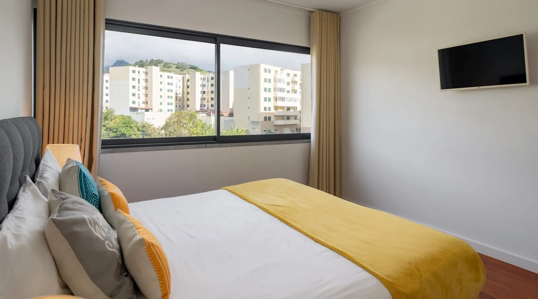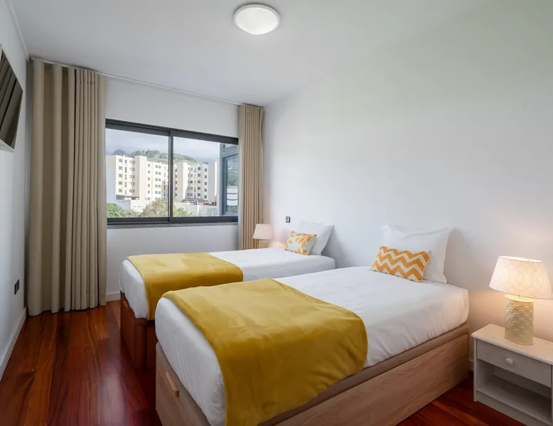 This city flat, located area in Amparo - Funchal, is fully equipped and decorated for your comfort. It is close to beaches, gardens and services. With a capacity for 4 people, the flat has 2 bedrooms and a balcony with sea views. The space This flat is perfect for people looking for a city holiday, away from the fast-paced atmosphere of the city centre, but close to various services and access points. Recently decorated, with care for detail and comfort, this flat has two bedrooms; the first is equipped with a double bed and a private bathroom with bathtub. The second bedroom has two single beds. The other bathroom in the flat is general and is also equipped with a bathtub. The kitchen is spacious and fully equipped, with a dining table. The living room, which has fantastic natural light, is decorated for your comfort, with a cosy sofa and a dining table to enjoy your meals. Outside there's a pleasant balcony with sea views and a small table where you can have your meals or take the opportunity to read a book or relax in the chairs available. The building is equipped with a lift and has parking for one car. Note: the building is located near a military regiment, so some sounds of military training can be heard during the day. AREA The property is located in the residential area of Amparo, just a few minutes' drive from the centre of Funchal. Next to the building you'll find various services, including bakeries, cafés and hairdressers. A quiet area with quick access to Praia Formosa. The flat is close to the Promenade that links Funchal to Câmara de Lobos. Nearby you'll find the Forum Madeira shopping centre, various restaurants, bars, pastry shops, pharmacies and other services. If you choose to go to the city centre of Funchal, there are many tourist attractions and information on cultural activities, radical activities, nature activities, whatever the purpose of your visit to Madeira Island. GETTING AROUND The best option to get to the property will be the transfer. Ask us to book one with our local partners. It is cheaper than the taxis you find at the airport. If you rent a car, any navigation app can easily find the address. ACCESS TO PROPERTY You have access to all areas of the property. INTERACTION We are always available to help or answer questions. We do our best to reply all requests. We also have an app for guests with all the important information about the property and other useful information for your stay. OTHER OBSERVATIONS - We would like to inform you that a Tourist Tax will be charged to all people staying in the municipality of Funchal. Thus, all customers staying in tourist resorts and/or accommodation establishments, aged 13 or over, will be charged €2.00 per person/night, up to a maximum of 7 nights and a maximum of €14.00 per person/stay. Before the arrival, you will receive a link to pay this municipal tax. - According to Portuguese law, all guests are required to present a valid ID. (passport or identity card). - Check-in hour must be scheduled in advance. If it is not scheduled within a maximum of 48 hours before, guests will be subject to the availability of our team. - All bed linen and towels are provided. We can also put a baby cot, a high chair and a baby bath if needed, but you should request. There are a first aid kit, extinguishers and fire blanket in the property. RULES We want you to feel at home. We do not ask for more than respect for neighbours and care for the property, in addition to not smoking inside the house. Registration Details 122040/AL