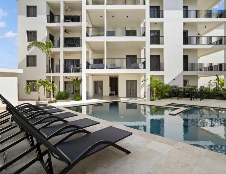 Spacious Accommodations: Bonaire Beach Apartment 5 in Kralendijk offers a spacious layout with two bedrooms and two bathrooms. Guests enjoy sea views from the balcony and a fully equipped kitchen with modern appliances. Leisure Facilities: The apartment features a garden, outdoor swimming pool, and free WiFi. Additional amenities include air-conditioning, washing machine, and a elevator for easy access. Prime Location: Located 1.2 mi from Flamingo International Airport, the property is a few steps from Chachacha Beach and a 3-minute walk to Flamingo Beach. Te Amo Beach is 1.9 mi away, and scuba diving opportunities are available in the surroundings. The fully equipped kitchen features a stovetop, a refrigerator, a dishwasher and kitchenware. The spacious air-conditioned apartment provides a TV, a washing machine, a tea and coffee maker, a wardrobe as well as sea views. The unit offers 2 beds.