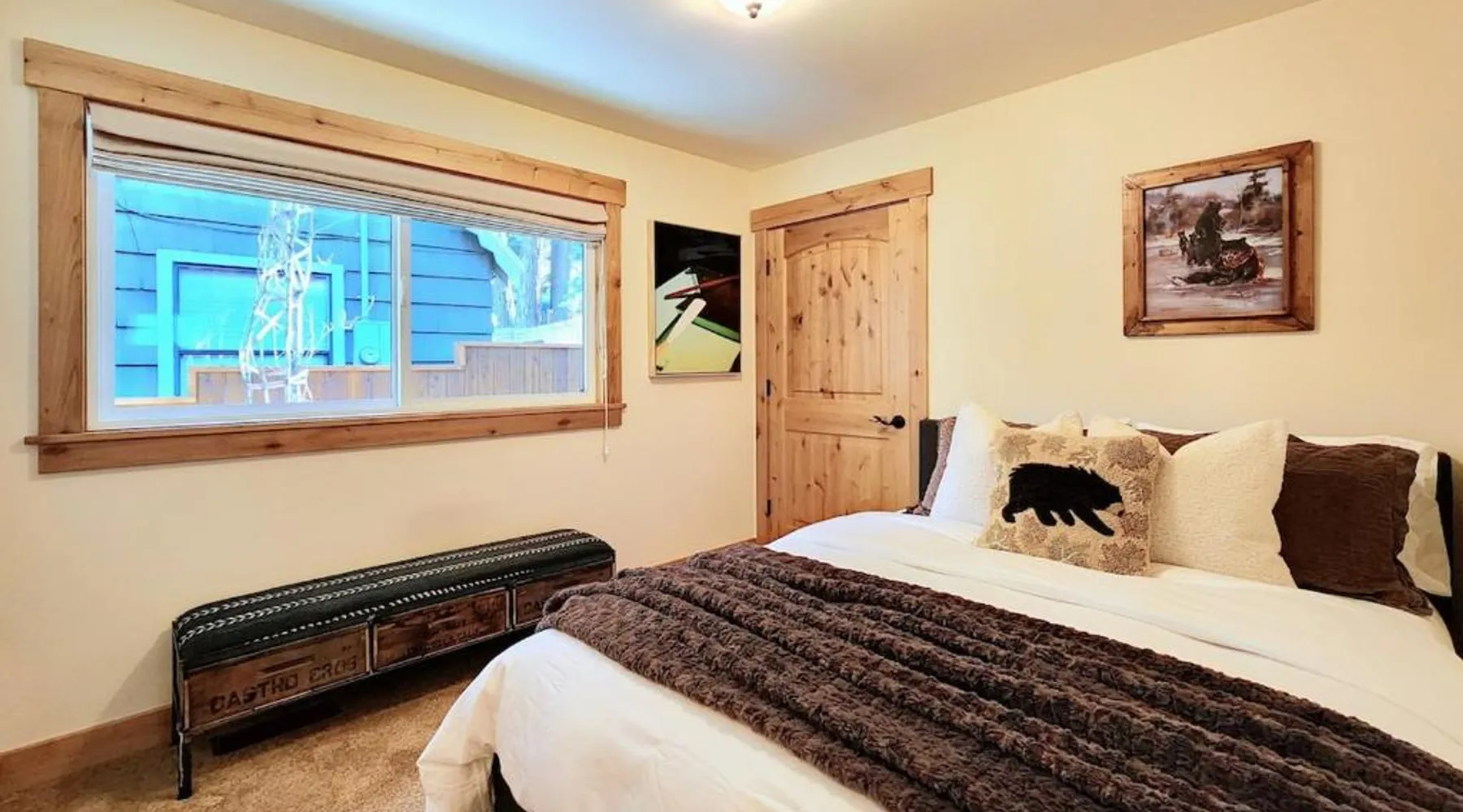 Spacious Holiday Home in Tahoe Vista: Das Bar Haus offers a spacious holiday home in Tahoe Vista, California. The property features one bedroom and two bathrooms, providing ample space for guests. Outdoor Amenities: Guests can enjoy a sun terrace and free WiFi, perfect for relaxing outdoors. The property includes an outdoor fireplace, laundry service, and barbecue facilities, ensuring a comfortable stay. Convenient Facilities: The holiday home provides private check-in and check-out services, an outdoor seating area, and a picnic area. Additional amenities include streaming services, a washing machine, and a fully equipped kitchen. Nearby Attractions: Kings Beach is located 1.2 mi away, offering easy beach access. Reno-Tahoe International Airport is 37 mi from the property, providing convenient travel options. This holiday home features a fireplace. Guests will find a stovetop, a refrigerator, a dishwasher and an oven in the fully equipped kitchen. The holiday home also comes with a barbecue. The spacious holiday home features a washing machine, a private entrance, a tea and coffee maker, a flat-screen TV with streaming services, as well as mountain views. The unit has 1 bed.
