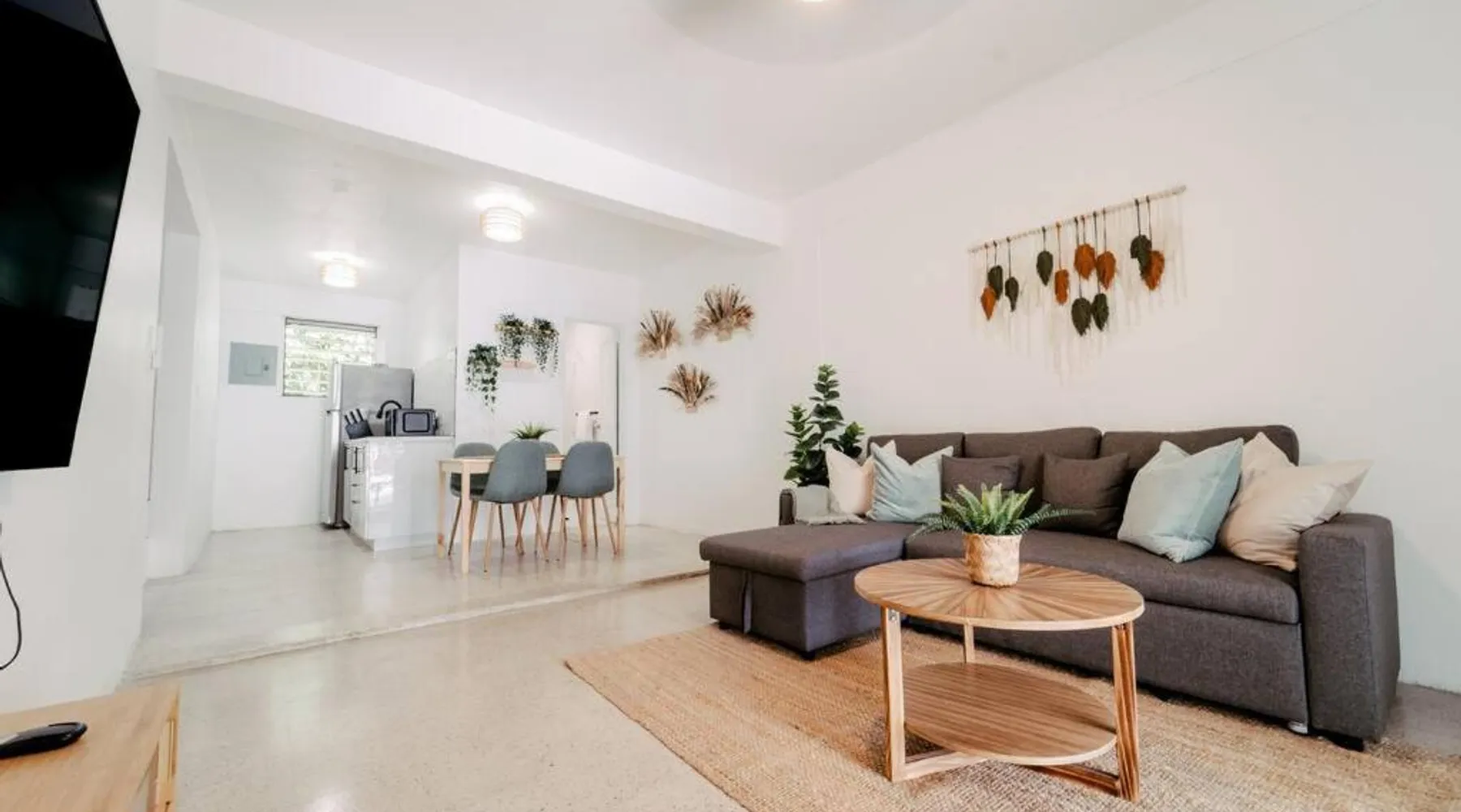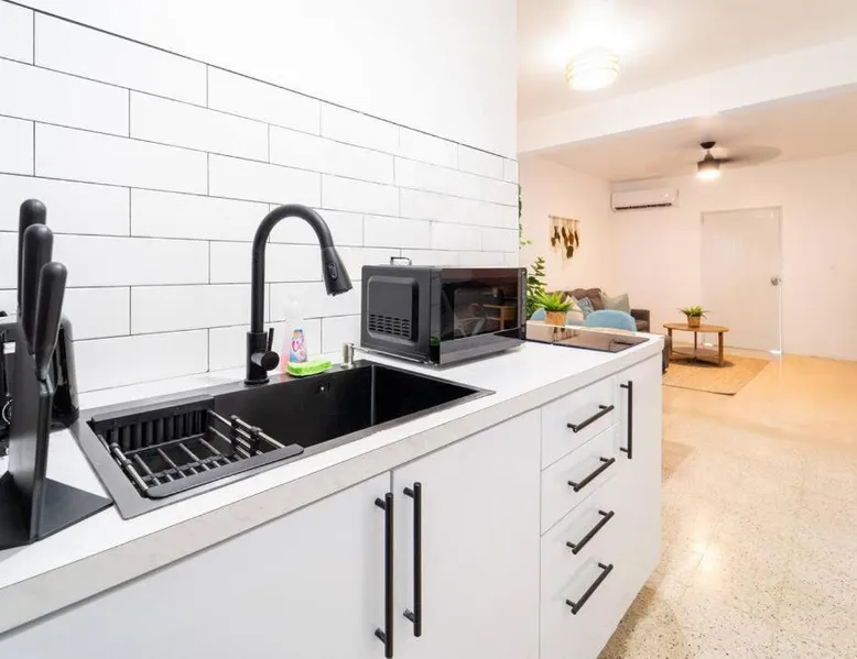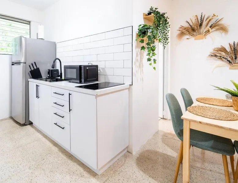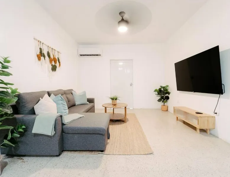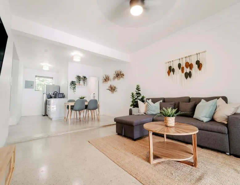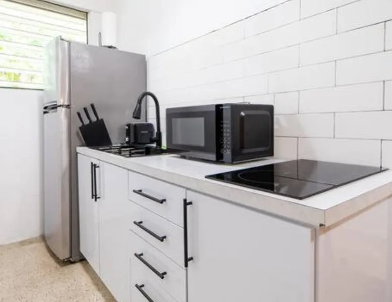 Comfortable Living Space: Spacious Apartment close to San Juan and El Yunque in Canóvanas offers a one-bedroom apartment with a living room. The ground-floor unit features a private entrance, tiled floors, and a sofa bed. Modern Amenities: Guests enjoy free WiFi, air-conditioning, a kitchenette, washing machine, and a fully equipped kitchen with a refrigerator, stovetop, microwave, and coffee machine. Additional amenities include a dining table, work desk, and free toiletries. Convenient Location: Located 14 mi from Luis Munoz Marin International Airport, the apartment is near attractions such as El Yunque Rainforest (17 mi) and Fort San Felipe del Morro (22 mi). Free on-site private parking is available. Meals can be prepared in the kitchen, which has a stovetop, a refrigerator, kitchenware and a microwave. This apartment is air-conditioned and has a seating area with a flat-screen TV, a washing machine, a private entrance, a tea and coffee maker, as well as a wardrobe. The unit has 2 beds.