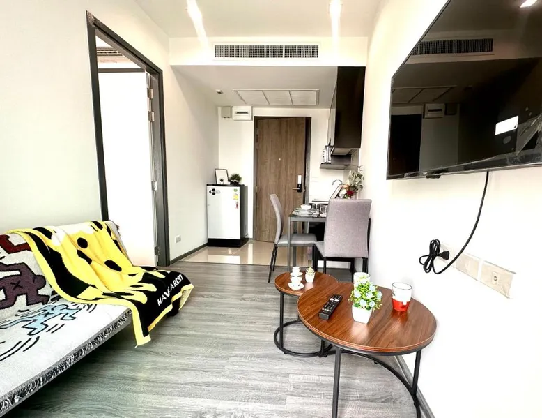 Comfortable Living: Monthly and Annual Condo in Bangkok offers a one-bedroom apartment with a private pool and terrace. Guests enjoy free WiFi, air-conditioning, and a fully equipped kitchenette. Modern Amenities: The apartment includes a washing machine, dining area, and balcony. Additional features include a refrigerator, microwave, TV, and free toiletries. Convenient Location: Located 19 mi from Don Mueang International Airport, the property is close to Wat Arun, Wat Pho, and the Grand Palace, each 2.5 mi away. Other attractions include Jim Thompson House and MBK Center, each 4.3 mi distant. This apartment's special feature is the infinity pool. The air-conditioned apartment features 1 bedroom and 1 bathroom with a shower and a hairdryer. Guests can make meals in the kitchenette that is equipped with a refrigerator, kitchenware, a microwave and an electric kettle. Featuring a terrace, this apartment also provides a washing machine, a dining area and a flat-screen TV. The unit offers 1 bed.