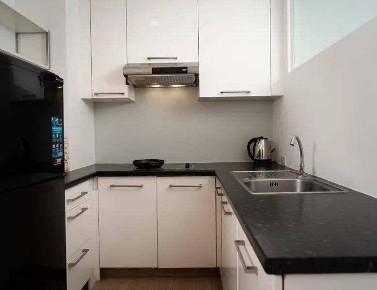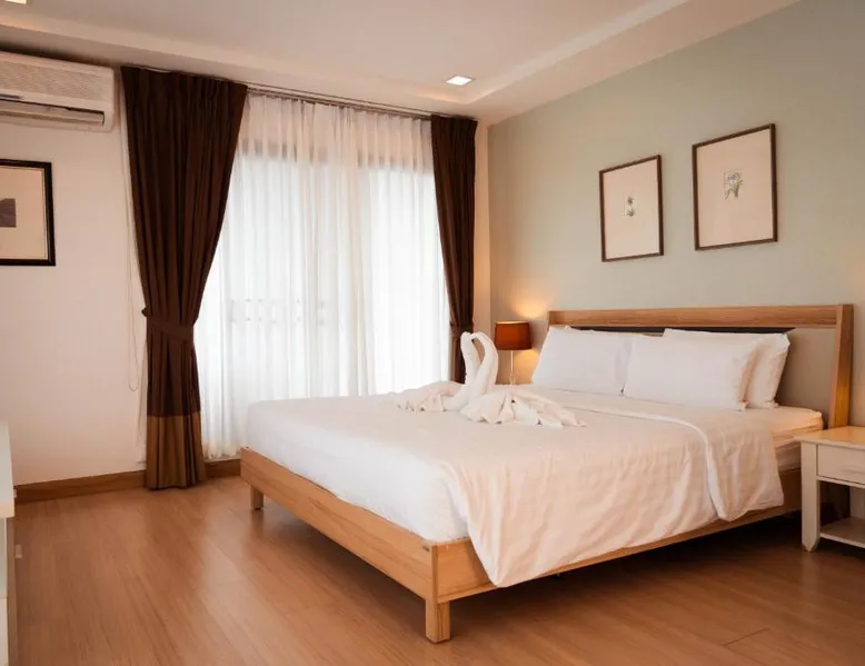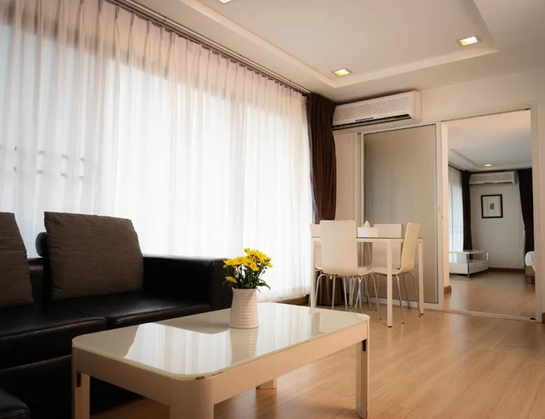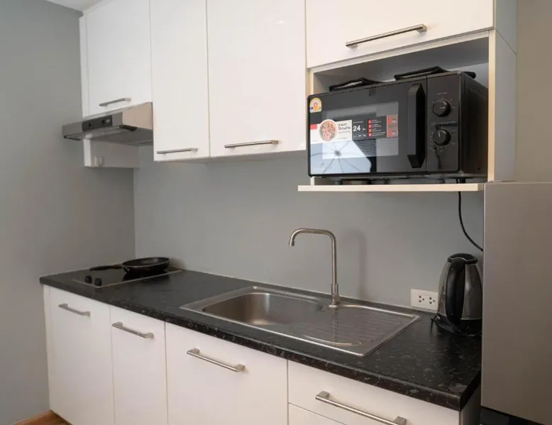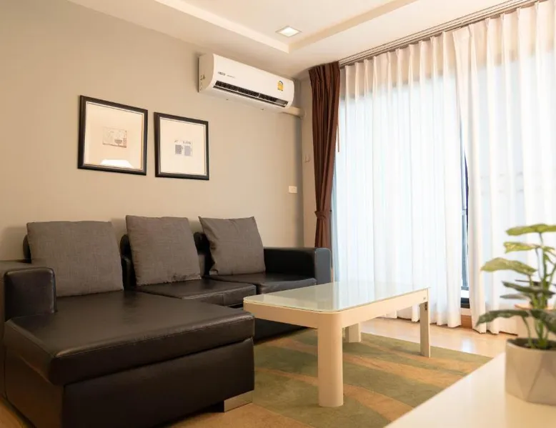 Comfortable Accommodations: Baan K Residence in Bangkok offers comfortable rooms with air-conditioning, kitchenettes, balconies, and private bathrooms. Each room includes a work desk, free toiletries, and a TV. Dining and Leisure: Guests can enjoy a modern restaurant serving brunch, lunch, and dinner. The terrace provides a relaxing outdoor space. Free WiFi is available throughout the property. Convenient Facilities: The hotel features a elevator, full-day security, and free on-site private parking. Additional amenities include a dining area, seating area, and a kitchen. Prime Location: Located 17 mi from Don Mueang International Airport, the hotel is a short walk from One Bangkok and Lumpini Park. Nearby attractions include Central Embassy and Siam Paragon Mall. This spacious suite includes 1 living room, 1 separate bedroom and 1 bathroom with a shower and free toiletries. In the well-fitted kitchen, guests will find a stovetop, a refrigerator, a microwave and an electric kettle. A seating area with a flat-screen TV, air conditioning and a balcony are offered in this suite. The unit has 1 bed.