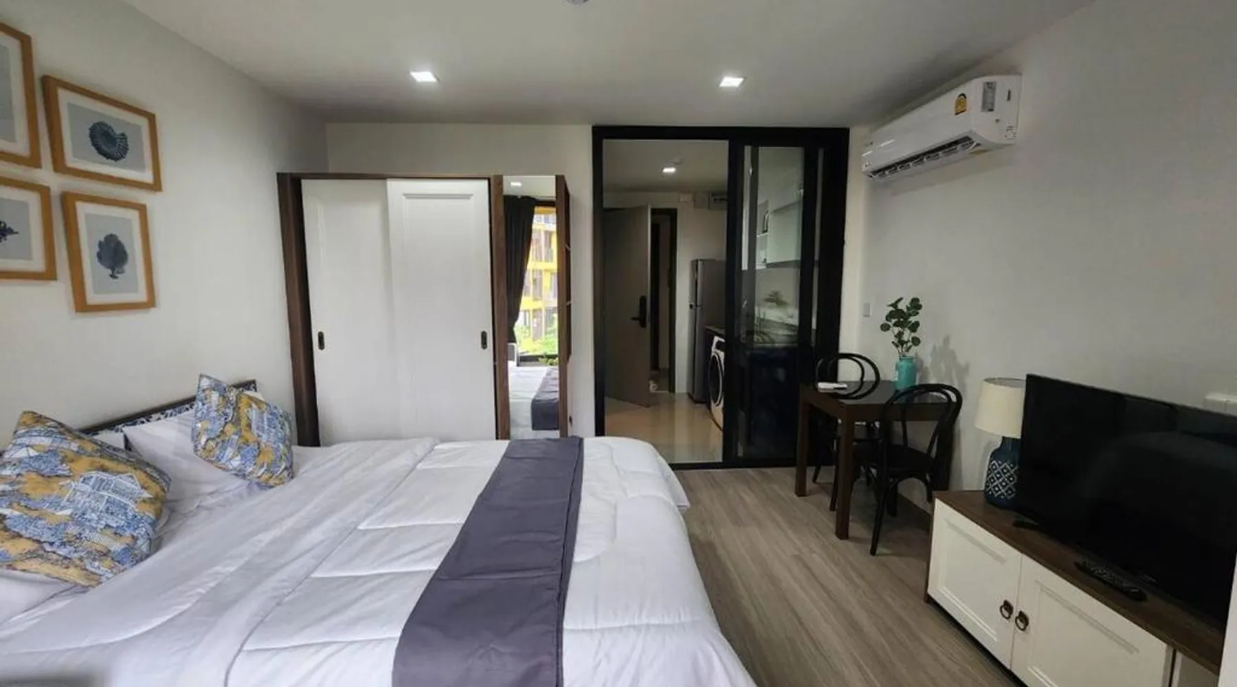 Essential Facilities: The Base Central Phuket-C54BS in Phuket offers a terrace, a year-round outdoor swimming pool, and free WiFi. Guests can relax in the lounge or enjoy the kids' pool. Comfortable Amenities: The apartment features air-conditioning, a kitchenette, balcony, washing machine, and garden views. Additional amenities include a private pool, tea and coffee maker, dining table, and work desk. Convenient Location: Located 19 mi from Phuket International Airport, the property is near attractions such as Chinpracha House (1.9 mi), Thai Hua Museum (1.9 mi), and Chalong Temple (4.3 mi). Free on-site parking is available. This apartment features a private pool. The apartment's kitchen, which has a refrigerator and a microwave, is available for cooking and storing food. The air-conditioned apartment features a flat-screen TV, a washing machine, a tea and coffee maker, a wardrobe as well as garden views. The unit has 1 bed.