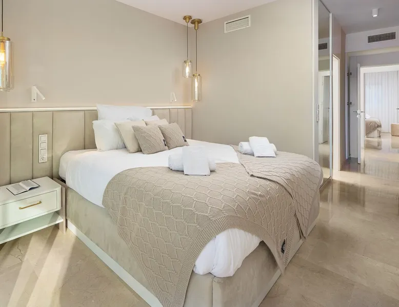 Experience luxury coastal living in this beautifully refurbished three-bedroom modern apartment, located in the prestigious Granados de Cabopino urbanisation. Situated right on the beachfront, this stunning property offers breathtaking sea views, contemporary interiors, and access to exclusive resort-style amenities. Prime Beachfront Location – Step directly onto the sandy shores of Cabopino Beach and enjoy the soothing sounds of the Mediterranean. The space Experience luxury coastal living in this beautifully refurbished three-bedroom modern apartment, located in the prestigious Granados de Cabopino urbanisation. Situated right on the beachfront, this stunning property offers breathtaking sea views, contemporary interiors, and access to exclusive resort-style amenities. Prime Beachfront Location – Step directly onto the sandy shores of Cabopino Beach and enjoy the soothing sounds of the Mediterranean. Spacious & Stylish – The open-plan living area features modern, sleek furnishings, creating the perfect space to relax and entertain. The fully equipped kitchen includes top-of-the-line appliances, perfect for preparing gourmet meals. Exclusive Community Amenities – Enjoy year-round access to a range of high-end facilities including: Padel Court – Perfect for some friendly competition. 3 Outdoor Swimming Pools & 2 Kids Pools – Spacious sunbathing areas with sunbeds and umbrellas, surrounded by lush gardens. Indoor Heated Pool – Open all year, offering comfort no matter the season. Playground & Basketball Area for Kids – Keep the little ones entertained with safe, fun activities. Illuminated Tennis & Padel Courts (on demand) – Play at your convenience, day or night. On-Site Bar & Dining – During the summer months, enjoy the exclusive urbanization bar offering refreshing drinks, breakfast, and lunch. Fitness & Wellness – Stay active with access to the gym, sauna, and landscaped gardens for peaceful strolls. Convenience & Comfort – Private parking and close proximity to Cabopino Marina, golf courses, and the vibrant town of Marbella. Apartment Features: Direct Access to Private Garden – Ground-floor access to your own outdoor space. Fully Equipped Kitchen – Featuring oven, microwave, toaster, kettle, induction hob, capsule coffee machine, and a fridge with freezer. Also includes wine & champagne glasses for 12, tableware for 12, knives, cutting boards, etc. Laundry & Household Essentials – Washing machine, dryer, iron & ironing board, hairdryer, laundry hangers, towels, and swimming pool towels provided. Additional Comforts – Enjoy the perfect blend of tranquility and luxury with every convenience at your fingertips. With exceptional facilities and a prime location, this apartment is the ideal place to unwind and indulge in coastal living. Book your stay today and enjoy the Mediterranean at your doorstep. Other things to note Included services - Swimming pool - Air conditioning Registration Details Spain - National registration number ESFCTU0000290440005446880000000000000000VUT/MA/766925 Andalucia - Regional registration number VUT/MA/76692