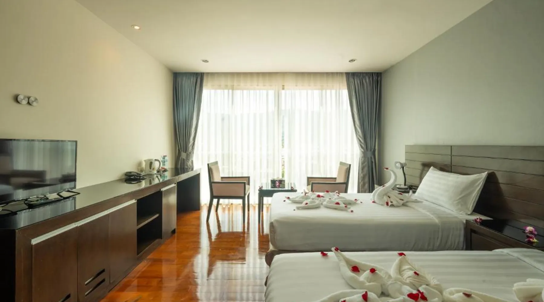 Comfortable Accommodations: Yenna Apartment in Kamala Beach offers 4-star comfort with air-conditioned rooms featuring private bathrooms, city views, and modern amenities. Each room includes a work desk, free toiletries, and a TV. Dining Experience: Guests can enjoy a variety of cuisines at the on-site restaurant, including Thai, international, and European dishes. The restaurant serves American and à la carte breakfasts, complemented by free WiFi throughout the property. Leisure Facilities: The hotel features a sun terrace, outdoor seating area, and a minimarket. Additional services include private check-in and check-out, a 24-hour front desk, room service, and car hire. Location and Attractions: Located less than 0.6 mi from Kamala Beach, Yenna Apartment is 16 mi from Phuket International Airport. Nearby attractions include Patong Boxing Stadium and Jungceylon Shopping Center, each 6.2 mi away. Scuba diving is available in the surrounding area. The apartment features 1 bedroom and 1 bathroom with a hairdryer and free toiletries. The air-conditioned apartment provides a TV, a wardrobe, a safe deposit box, an electric kettle as well as city views. The unit offers 1 bed.