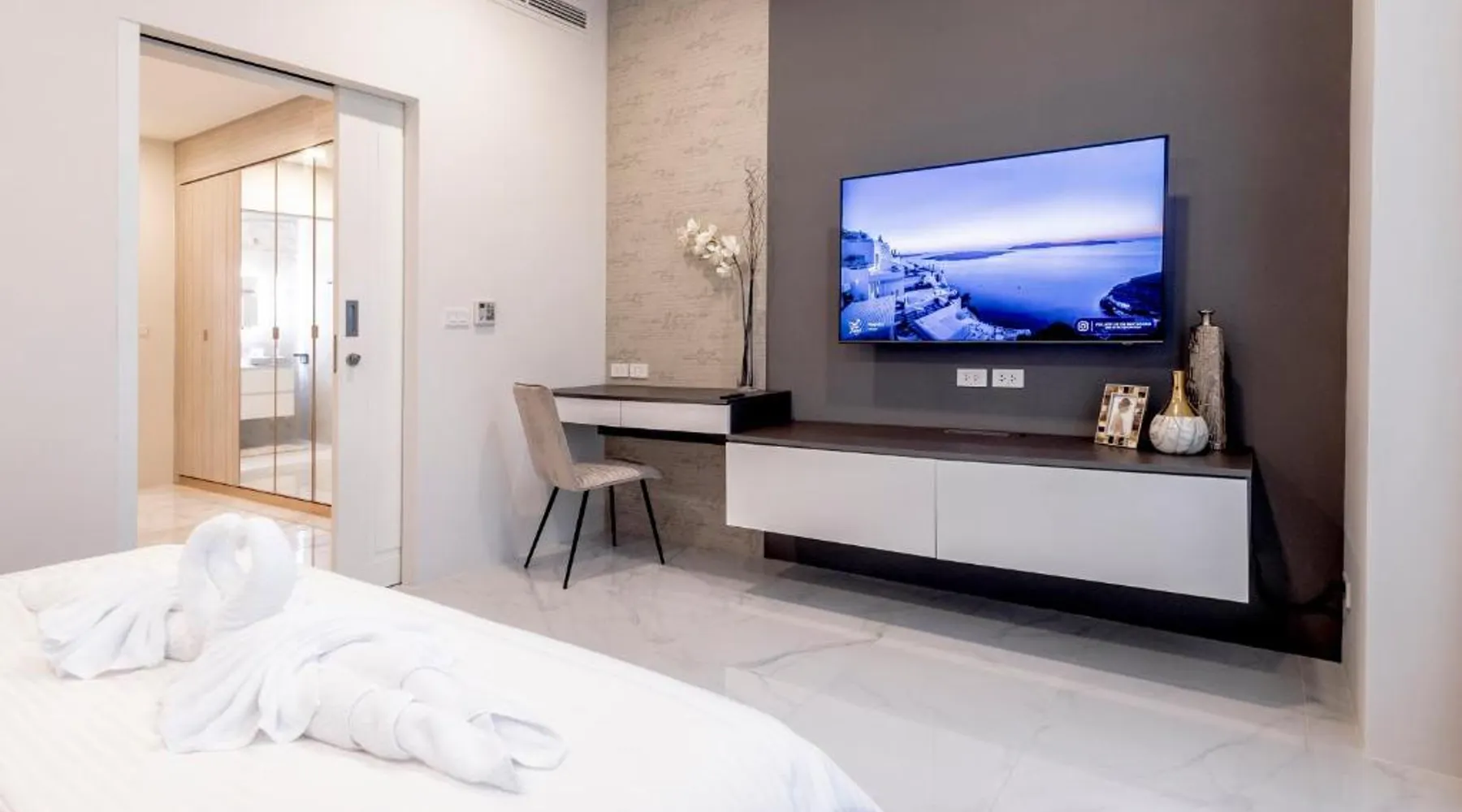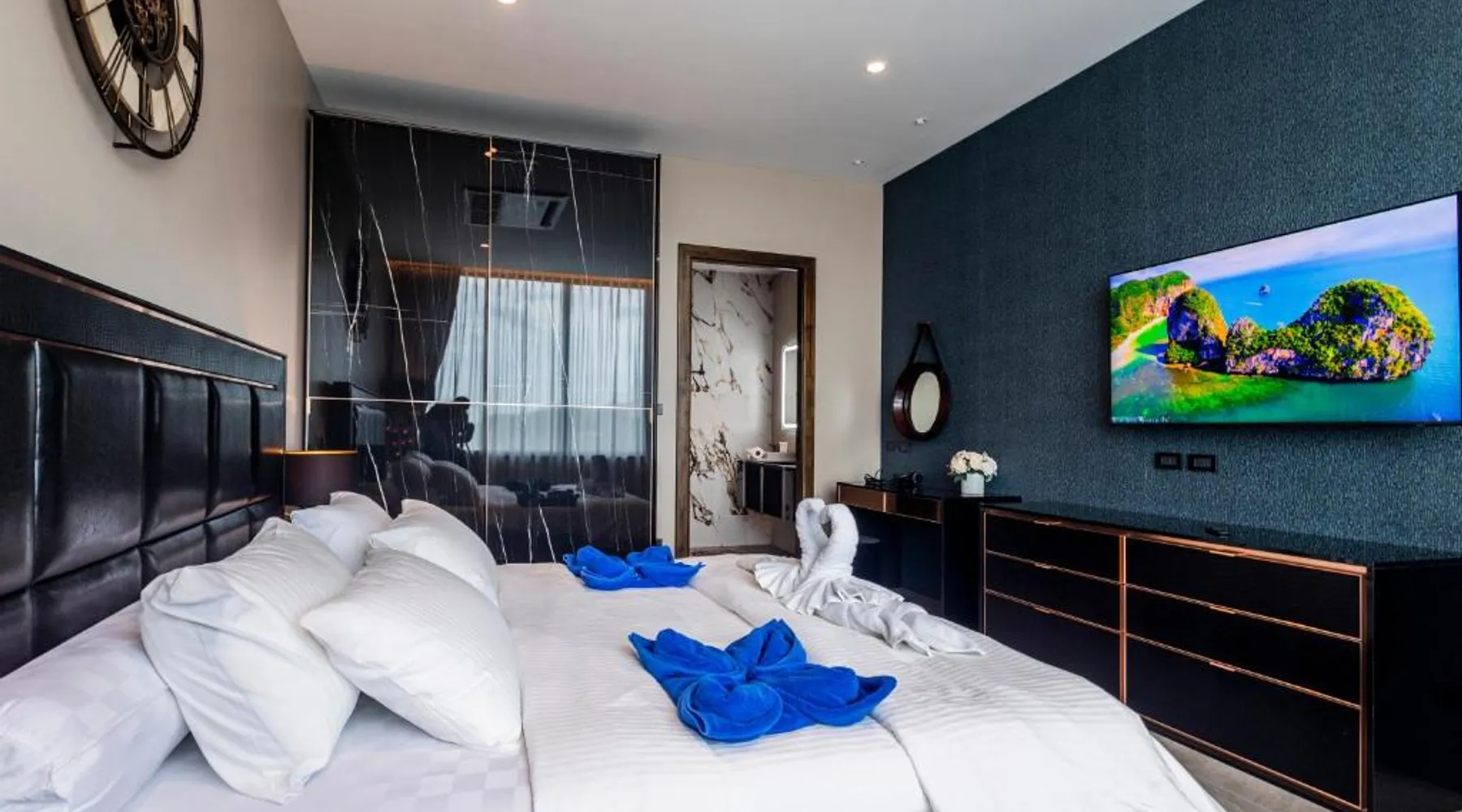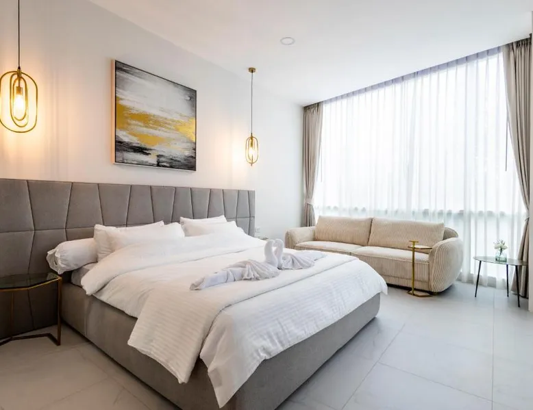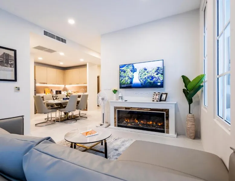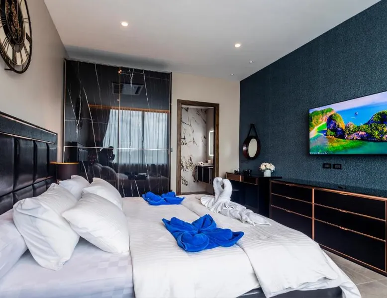 Modern Comforts: Karon Beach Residence in Karon Beach offers a recently renovated apartment with air-conditioning, a kitchenette, and a private bathroom. Guests enjoy free WiFi, a sun terrace, and a year-round outdoor swimming pool. Convenient Facilities: The property features a fitness room, kids' club, and a kids' pool. Additional amenities include a washing machine, dishwasher, and a work desk. Free on-site private parking is available. Prime Location: Located 27 mi from Phuket International Airport, Karon Beach Residence is a 12-minute walk from Karon Beach. Nearby attractions include Chalong Pier and Jungceylon Shopping Center. Guest Satisfaction: Highly rated for its kitchen, property cleanliness, and swimming pool, the apartment ensures a comfortable and enjoyable stay. The private pool and fireplace are the special features of this apartment. This spacious apartment consists of 1 living room, 3 separate bedrooms and 2 bathrooms with a bath and free toiletries. The well-equipped kitchen features a stovetop, a refrigerator, kitchenware and an oven. The air-conditioned apartment provides a flat-screen TV, a washing machine, a tea and coffee maker, a seating area as well as sea views. The unit offers 3 beds.
