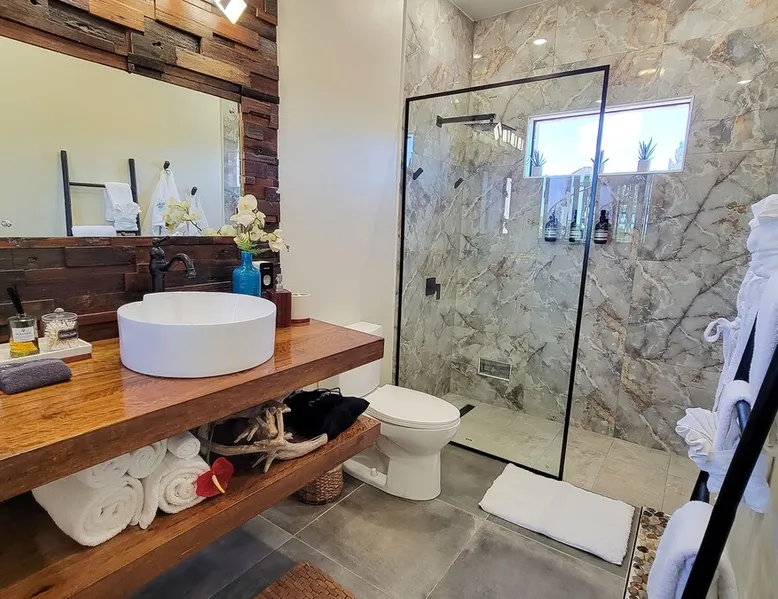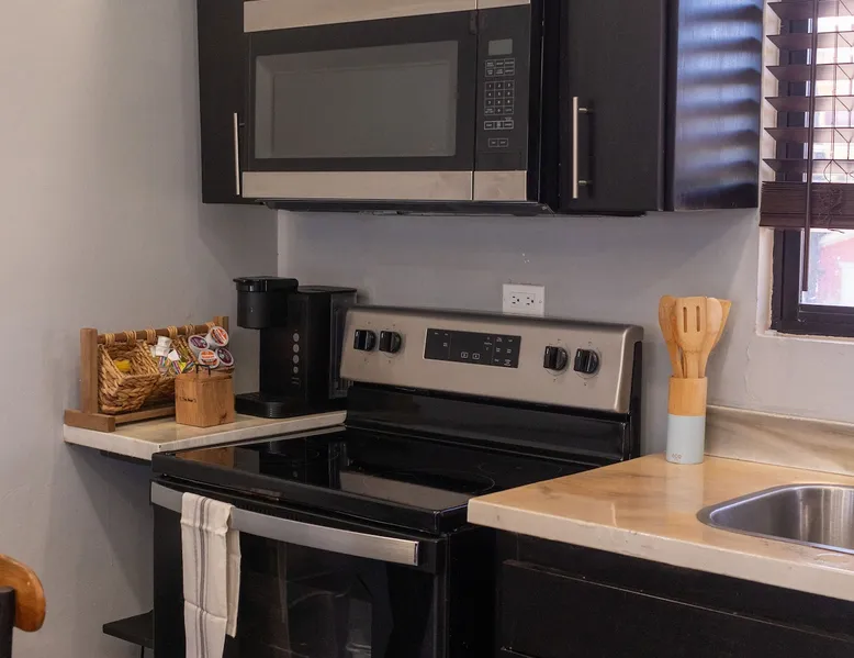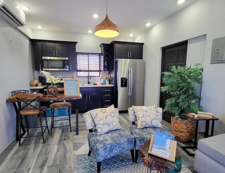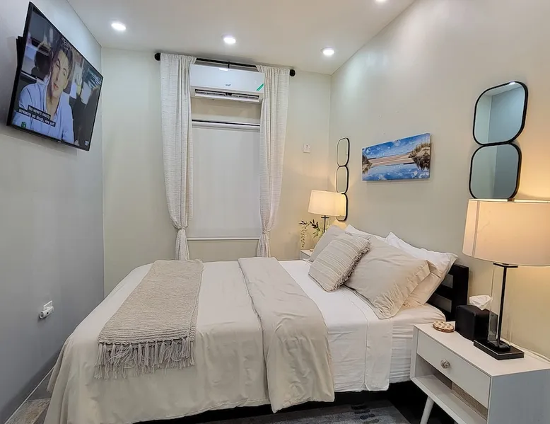 Escape to a peaceful, stylish hideaway made just for two. Whether you're working from paradise or simply pressing pause on everyday life, this villa is your romantic, relaxing Caribbean escape. This romantic villa offers everything you need to unwind — and stay productive if you're working remotely. Wake up with the sunrise, enjoy your morning coffee in the garden, and end your day with a soak in the shared hot tub or a glass of wine under the stars on the roof top. The space Welcome to your serene coastal escape located, in a private gated community Stonebrook Estates, Falmouth, Jamaica which is 10 minutes away from the Georgian Historical Capital of Falmouth. This 1-bedroom, 1-bathroom apartment is designed to provide you with a tranquil and comfortable retreat, making your stay truly exceptional. ⭑BEDROOM⭑ The bedroom features a comfortable bed designed to provide you with a restful experience. Beyond the hotel-like comfort, the room is thoughtfully furnished with everything you need for a perfect night's sleep. Bedroom Suite ✔ Queen-size bed with Pillows Linens and Sheets. ✔ Closet with hangers. ✔ 2 night stands with lamps. ✔ Small Bistro Table w/ 2 chairs. ✔ 55” TV with Netflix included. ✔ Air conditioner, and ceiling fan. ✔ Room-darkening shades. ✔ Digital in-room safe ✔ Bluetooth Speaker with Alexa System ✔ Sound Machine. ✔ USB Ports ✔ Blanket ✔ Luggage Rack ✔Attached Bathroom. ✔ Full-length mirror. ✔ Beach towels. ✔Compimenatry travel-sized toiletry ✔ Iron board, lint remover and steamer ⭑BATHROOM⭑ Our modern, spa-like bathroom offers the perfect water pressure for an enjoyable and relaxing bath experience. En-suite Bath ✔ Equipped with/ Rain effect shower ✔ Solar and electric water heater. ✔ Mirror ✔ Sink Vanity ✔ Bath Robes ✔ Towels ✔ Toilet ✔ First Aid kit ✔ Makeup rag ✔ Toothpaste ✔ Body wash shampoo and conditioner. ⭑LIVING ROOM⭑ The living room is designed with spacious comfort in mind, offering a perfect space to sit with loved ones. ✔ Two comfortable side chairs with pillows ✔ Comfortable Sofa with Pillows ✔ 55" Flat Screen TV with Netflix ✔ Air-conditioned space. ✔ Coffee table ⭑KITCHEN & DINING AREA⭑ Our open-concept kitchen and dining area provide the ideal space for sharing meals, whether you choose to dine indoors or on the private patio. The fully stocked kitchen comes equipped with all the essentials to make you feel right at home. Kitchen ✔ Keurig coffee maker ✔ Blender ✔ Tea kettle ✔ Smoothie maker ✔ Microwave ✔ Stove ✔ Oven ✔ Refrigerator/Freezer ✔ Sink- Hot; Cold Water ✔ Baking Trays ✔ Silverware ✔ Pots & Pans ✔ Pyrex Dishes ✔ Tupperware ✔ Table w/ 2 chairs located in the kitchen ✔ Cooking basics (oil, salt, pepper) and much more ⭑OUTDOOR SPACE⭑ Step out onto your private balcony and enjoy the serene surroundings of this vibrant Jamaican living, or opt for a coastal and mountainous view perfect for morning coffee or an evening under the stars. ✔ Garden gazebo ✔ BBQ grill with all the necessary utensils. ✔ enjoy our seasonal herbs & veggies from the garden ✔ The backyard offers a great space for outdoor activities, while beach access is just a 6-minute drive away for those who love the sea. ⭑ADDITIONAL AMENITIES:⭑ Other than the already mentioned amenities, our home is also equipped: ✔ Air conditioner in every room ✔ Room-darkening shades ✔ Bluetooth, a sound machine, and Alexa system ✔ Dedicated workspace equipped with several USB ports and outlets. ✔ Flat iron & blow dryer. ✔ Steamer, lint brush remover, and an ironing board. ✔ Washer and dryer in the building ✔ Books and reading material ✔ Board games ✔ Beach towels, sun loungers ✔ Cleaning products ✔ Cleaning is available during your stay at an additional cost. ✔ High-speed Wi-Fi (over 102 Mbps) ⭑SAFETY & SECURITY⭑ The gated community offers a secure and peaceful environment, perfect for leisurely walks. ✔ ID required for entry at security gate. ✔ Lockbox for self-check-in ✔ Located within a gated community ✔ Smoke detectors ✔ Carbon monoxide detectors ✔ Fire extinguisher. ✔ Lock on the bedroom door for added privacy ⭑PARKING & FACILITIES⭑ ✔ Free driveway parking for 3 cars. ✔ Free street parking available. ✔ The home is a two-story with stairs. ✔ Private entrance for easy access ✔ Washer and dryer in the building ~ 7+ stay required. ⭑SERVICES⭑ We’re taking the greatest cleaning precautions in today's pandemic era by doing one-day turnovers to ensure the utmost safety of every single guest. ✔ Self-check-in process for your flexibility ✔Luggage drop off is allowed for guests with early arrival or late departure. ✔ Babysitter recommendations available ✔ Mandatory weekly cleaning fee of $45 for long-term stays, along with a linen change ✔ Daily housekeeping services can be arranged for an additional charge for short stays. ✔ Long-term stays of 28 days or more are permitted This island gem is perfect for couples or solo travelers seeking a serene getaway just minutes from the beach. Not sure if our space meets your specific needs? Message us directly—we typically respond within an hour and can provide additional details or photos Guest access The top floor of the villa is your own private oasis with a private, well-lit entrance and parking for three cars. Enjoy keyless entry system with unique codes generated for each reservation. Villa on the Rocks is the perfect place to create lasting memories. Other things to note Important Notice for Guests Without Prior Trips or Reviews Please be advised that a refundable security deposit of $300 USD is required for all reservations made by guests who do not have any prior trips or reviews on their profile. The deposit is due at the time of booking or no later than four (4) days prior to check-in, whichever comes first. Failure to provide the required deposit wit