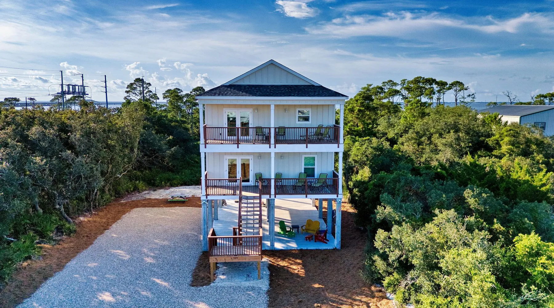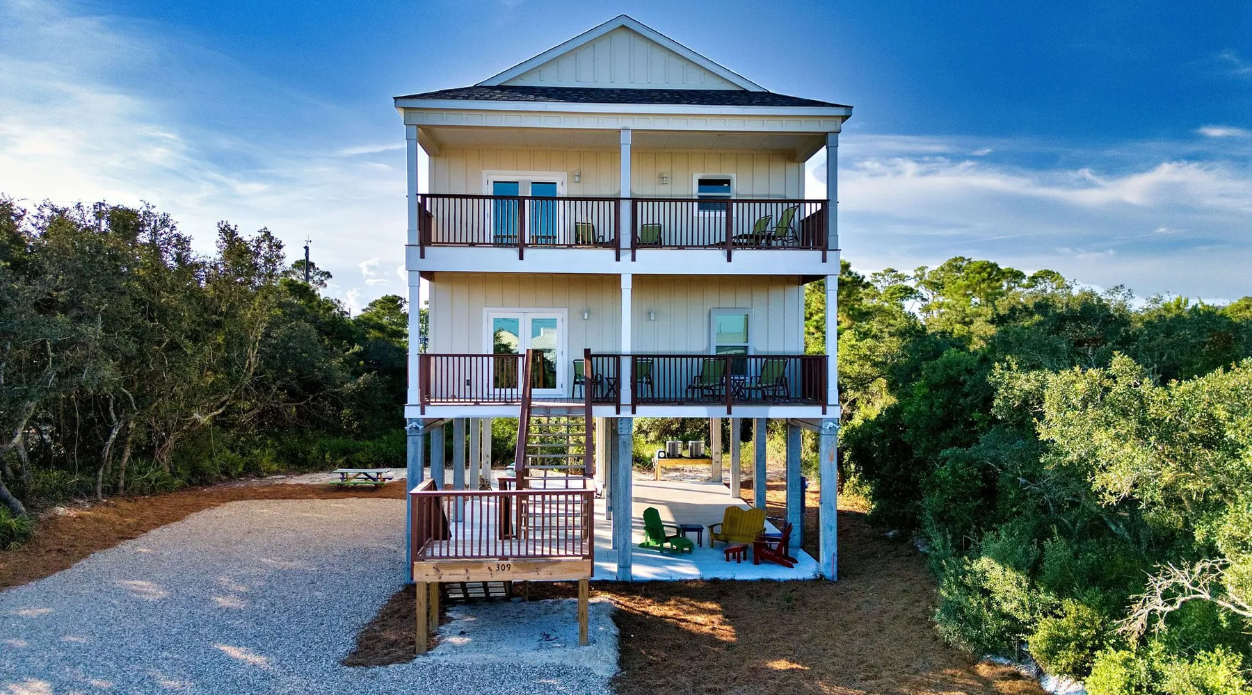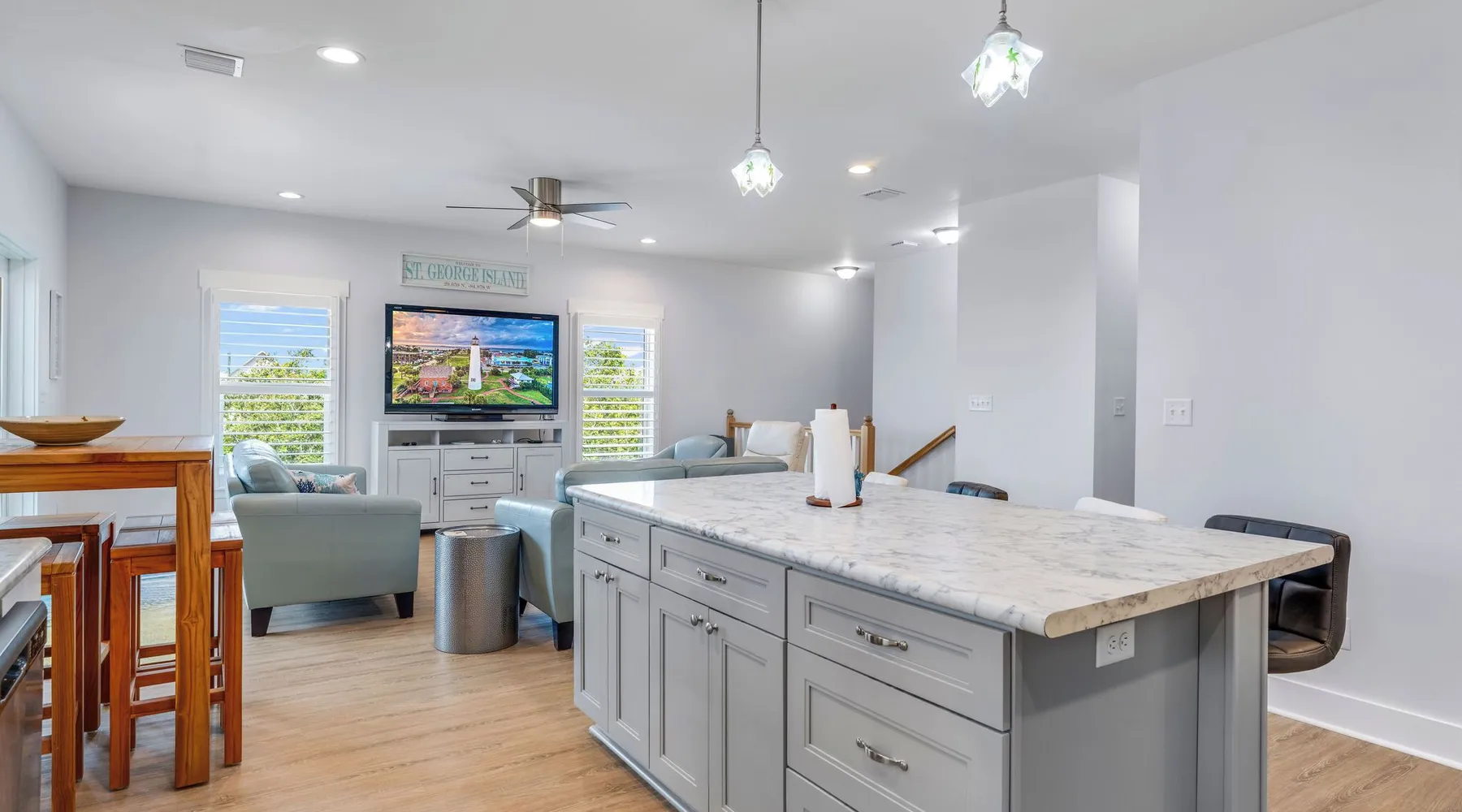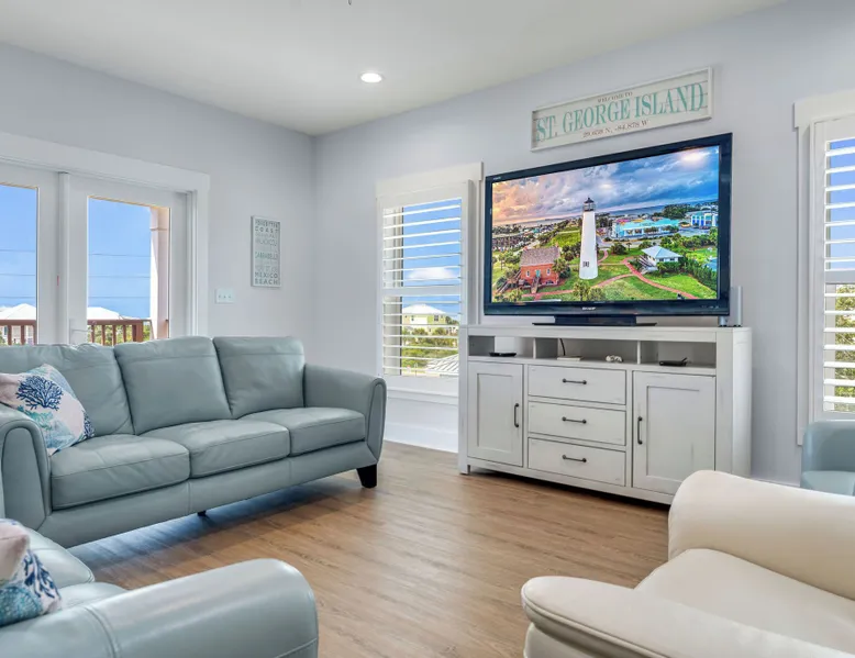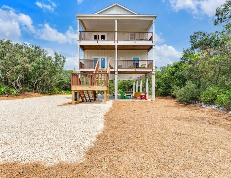 Sandy Diamond is a newly constructed and beautifully decorated home located near the center of St. George Island. This spacious 3BR/3.5BA retreat offers two living areas and an open kitchen with a bar, perfect for cooking, dining, and spending time with family and friends. Enjoy two Gulf-view decks, one on each level, where you can sip your morning coffee while watching the sunrise or relax in the evening while soaking in the island atmosphere with loved ones. 🛏️ Sleeping arrangements: • First level: • Bedroom 1: King bed • Bedroom 2: Two full beds • Bedroom 3: Queen + Twin bed • Additional living space with flat-screen TV, refrigerator, and sink • Second level: • Open living room that flows into the kitchen • Laundry room • Half bath 🏖️ Extra perk: When you book Sandy Diamond, you’ll receive a beach gear credit for rentals delivered right to the house on arrival and picked up at checkout—no hassle, all fun! With its stylish décor, modern layout, and multiple gathering spots both indoors and out, Sandy Diamond is the perfect setting for your next St. George Island getaway.