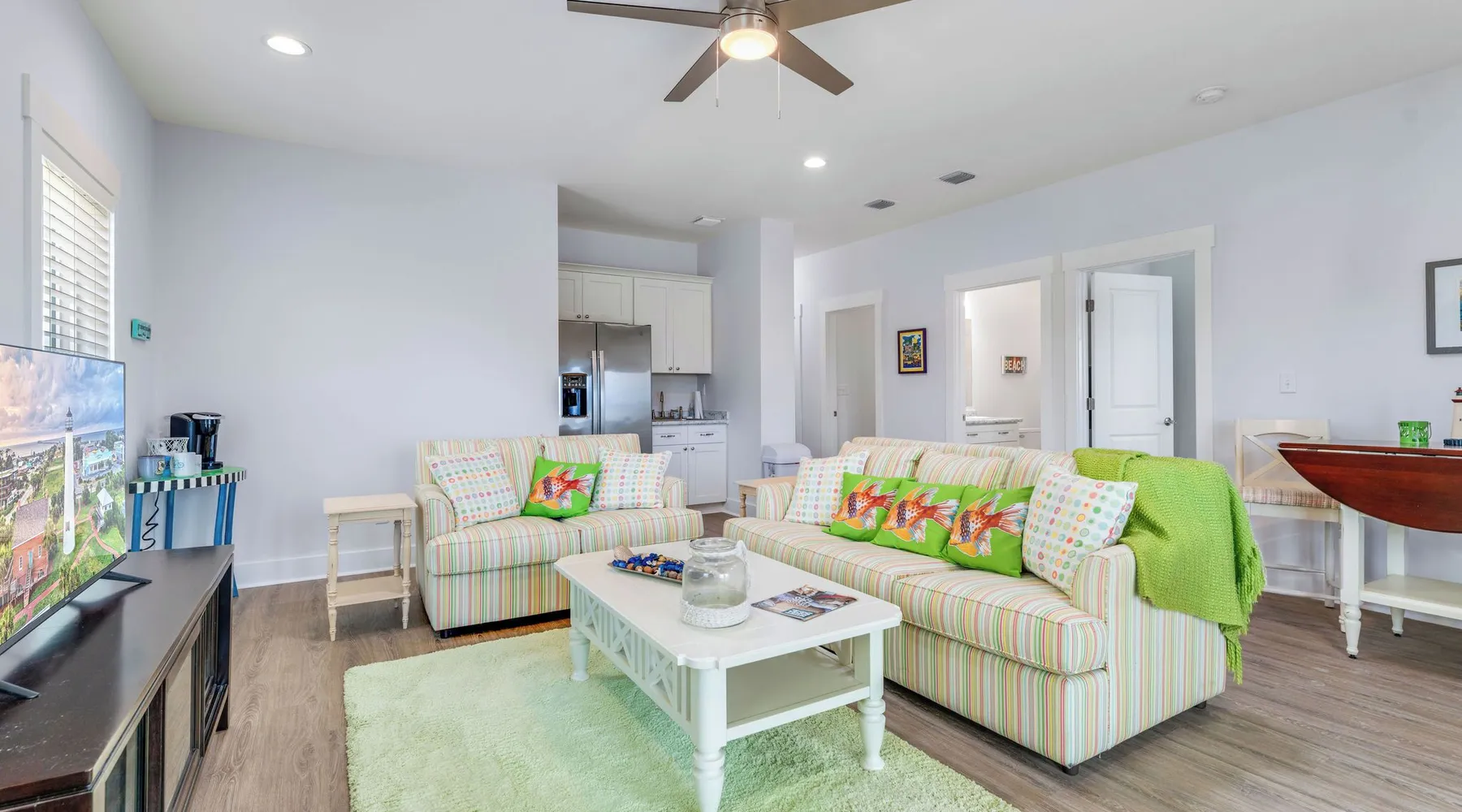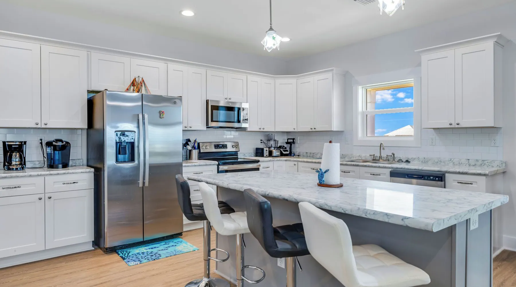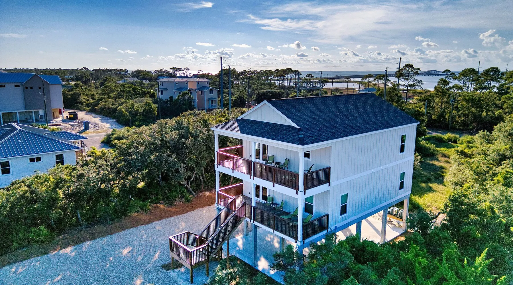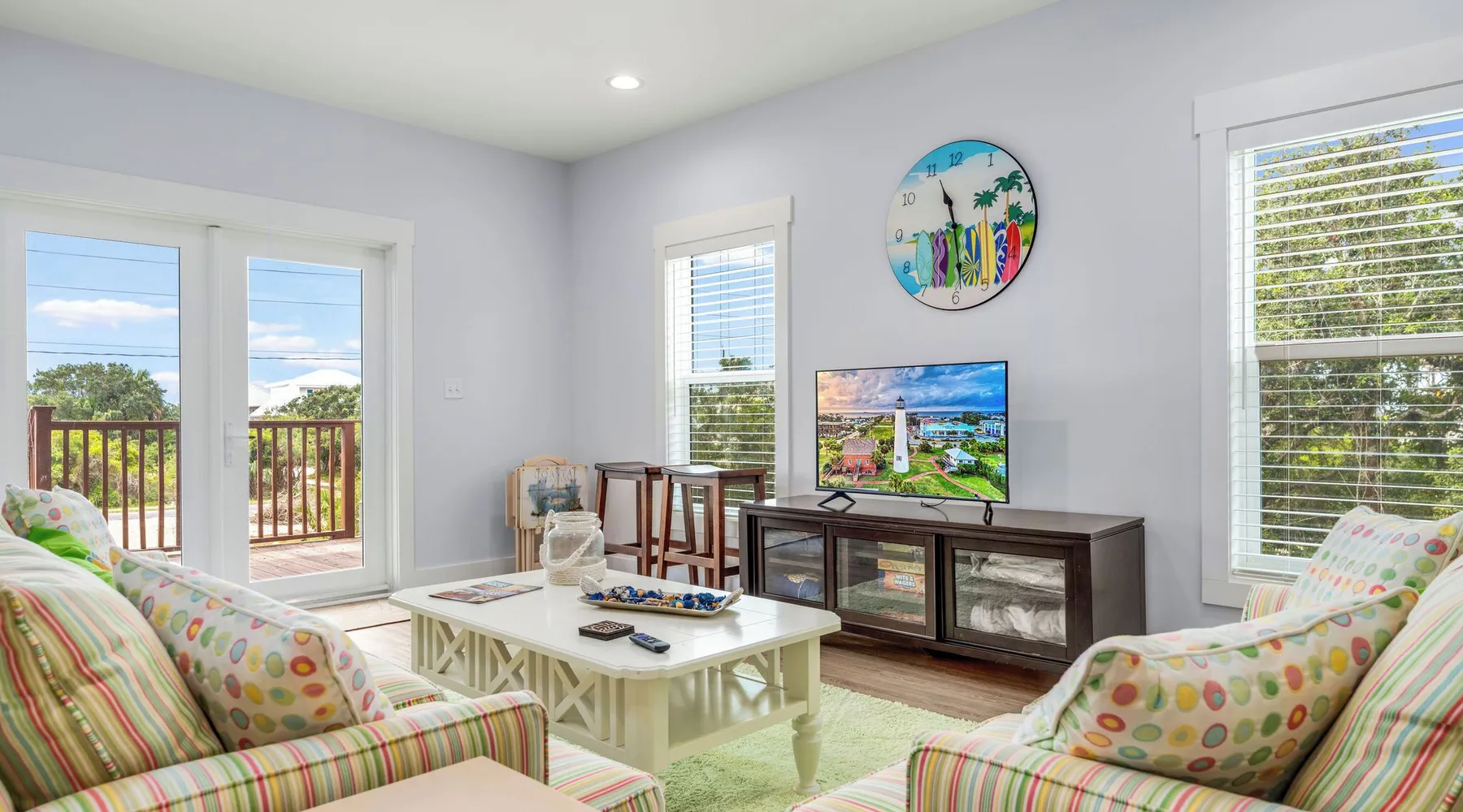 Sandy Diamond is a newly constructed and beautifully decorated home located near the center of St. George Island. This spacious 3BR/3.5BA retreat offers two living areas and an open kitchen with a bar, perfect for cooking, dining, and spending time with family and friends. Enjoy two Gulf-view decks, one on each level, where you can sip your morning coffee while watching the sunrise or relax in the evening while soaking in the island atmosphere with loved ones. 🛏️ Sleeping arrangements: • First level: • Bedroom 1: King bed • Bedroom 2: Two full beds • Bedroom 3: Queen + Twin bed • Additional living space with flat-screen TV, refrigerator, and sink • Second level: • Open living room that flows into the kitchen • Laundry room • Half bath 🏖️ Extra perk: When you book Sandy Diamond, you’ll receive a beach gear credit for rentals delivered right to the house on arrival and picked up at checkout—no hassle, all fun! With its stylish décor, modern layout, and multiple gathering spots both indoors and out, Sandy Diamond is the perfect setting for your next St. George Island getaway.