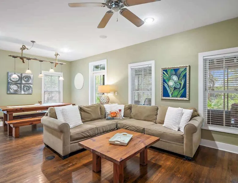 Summary: Escape to Mississippi Magnolia, a charming beach cottage in Magnolia Cottages by the Sea, just minutes from the Gulf’s pristine white sands. Located in a quiet neighborhood, this 3-bedroom, 3-bathroom retreat offers a cozy coastal atmosphere with a fully stocked kitchen, spacious living area, and private screened porch. Enjoy access to a shared pool, explore scenic 30A, or take a short stroll to the beach. Whether you’re here for adventure or relaxation, this home is your perfect getaway! The Space: Get ready for a spectacular coastal escape at "Mississippi Magnolia," a beautiful beach cottage nestled in the highly coveted Magnolia Cottages by the Sea, just a short stroll from the sugar-white sands and crystal-clear waters of 30A. Positioned perfectly between the chic Rosemary and Alys Beach to the East, and the lively hub of The Big Chill to the West, this home is at the heart of it all, offering the ultimate beachside retreat. Step inside to find a thoughtfully designed, coastal-inspired cottage featuring a spacious, fully equipped kitchen, 3 bedrooms, and 3 full bathrooms, ideal for accommodating up to 8 guests. Whether you're gathering for a family vacation, celebrating with friends, or sneaking away for a couples’ retreat, there's room for everyone to relax and recharge. Kick back on the private screened-in porch, where soft ocean breezes and lush greenery provide the perfect backdrop for sipping morning coffee or unwinding with evening cocktails. It’s your own little sanctuary for soaking in the calm and natural beauty of the area. The best part? The deeded beach access is just a short 3-5 minute walk from the front door, allowing for quick, easy access to some of the most stunning beaches the Emerald Coast has to offer. Spend your days basking in the sun, splashing in the waves, or taking leisurely strolls along the shoreline—it’s all just steps away. When you're ready for a dip but don’t feel like venturing far, head to the community pool for a refreshing swim right in your own neighborhood. Whether you’re seeking adventure or relaxation, “Mississippi Magnolia” has it all—unbeatable proximity to the beach, luxurious community amenities, and the charm of coastal living. Book your unforgettable getaway today and let the magic of 30A create memories that will last a lifetime! HELPFUL NEIGHBORHOOD INFORMATION - Large heated (Winter months) resort style pool - Easy walk to beach access BEACH ACCESS/SERVICE: - There is deeded beach access directly across from the neighborhood. - In order to sit near the access, you must rent a "set" (2 chairs and an umbrella) otherwise you may use the access and walk less than 2 minutes to the right or 4 minutes to the left to the public access. - Beach Service is provided by a local vendor; information provided upon request SLEEPING ARRANGEMENTS (SLEEPS 8) - Primary Suite - 1st floor: King bedroom, private bathroom, Shower/Tub Combo - Queen Bedroom - 1st floor: Queen bed, private bathroom, Shower/Tub Combo - Bunk Room - 1st floor: 4 twin bunks: Hall bath includes a shower FEATURES: - 3 Bedroom/3 Bathroom Cottage - Sleeps 8 - Private screened-in porches on each floor - Full Sized Washer Dryer - Fully Appointed Kitchen - Full Size Refrigerator - Full Size Oven/Stove - Charcoal grill - Complimentary Wifi - Large HEATED (Winter and at HOA's discretion) Community Pool only steps away - Parking for 2 cars in driveway (no street parking) - Close Proximity to the beach - neighborhood is directly across 30A from beach access - 18 Mile Bike Path along 30A - Close to The Big Chill, Rosemary Beach, Alys Beach and Seaside Guest Access: Guests can access all of the home and share access to the pool and deeded beach access. The Neighborhood: Magnolia Cottages by the Sea is a small, discreet neighborhood tucked away between Seagrove and Alys Beaches. It is close to everything, but still offers the comforts of a beach vacation coupled with a quiet getaway. Interaction with Guests: Property Manager is available as needed. Guests will receive all needed information before arrival and a copy will also be provided at the house.