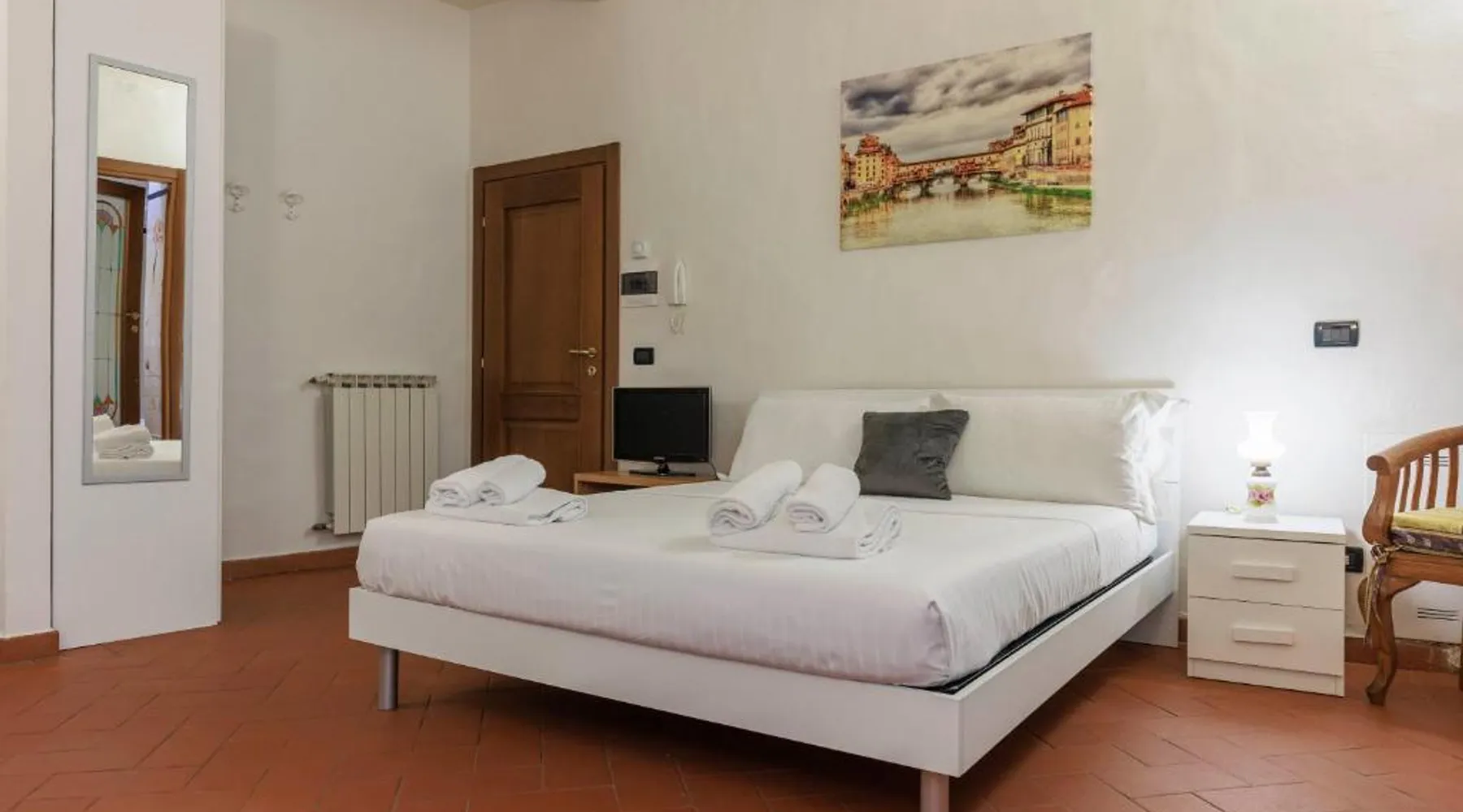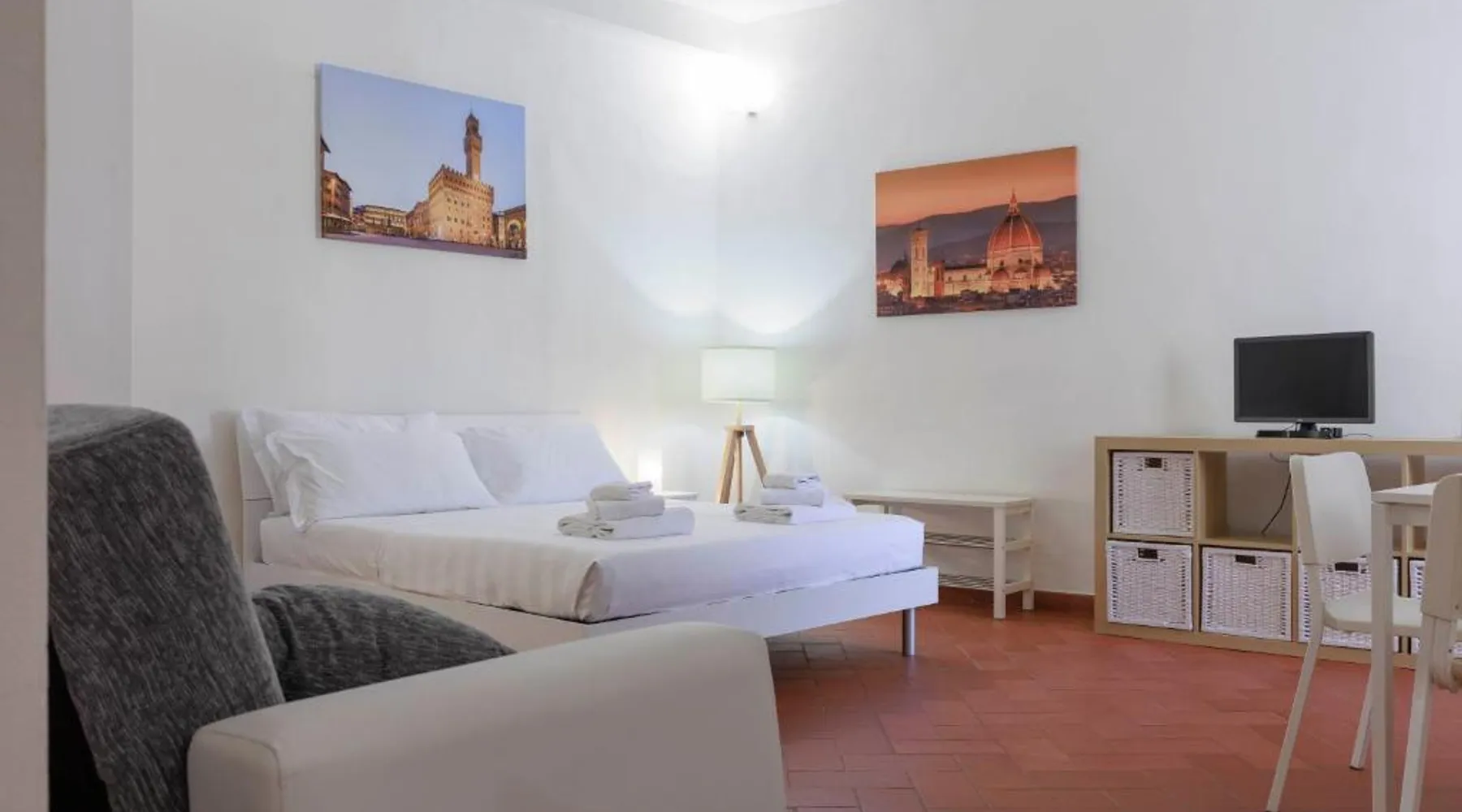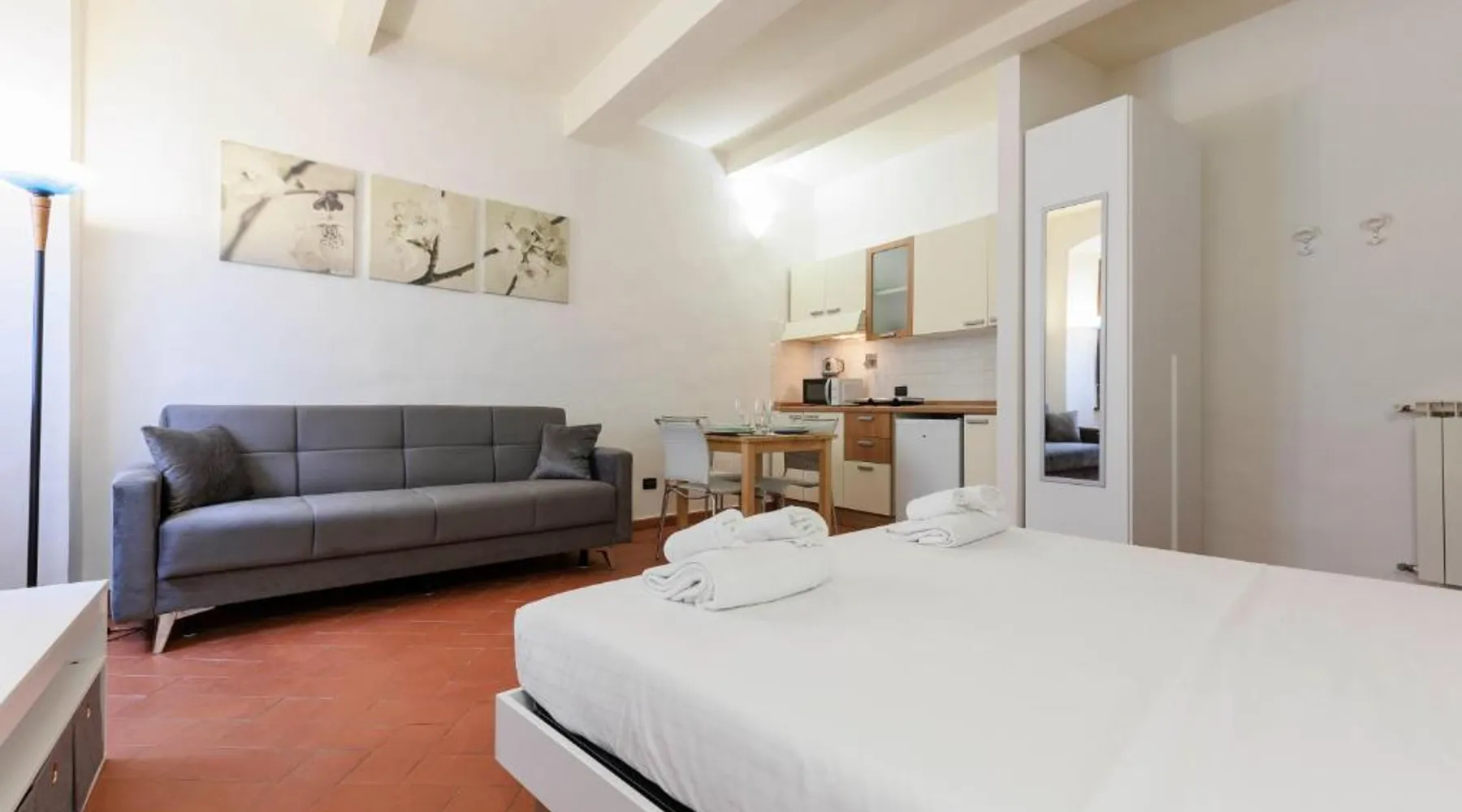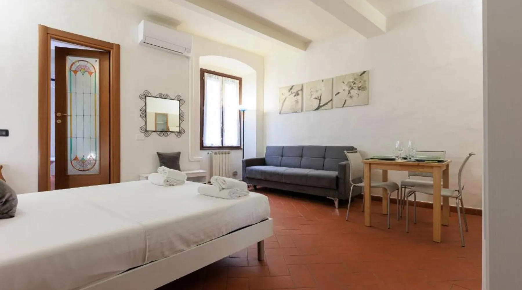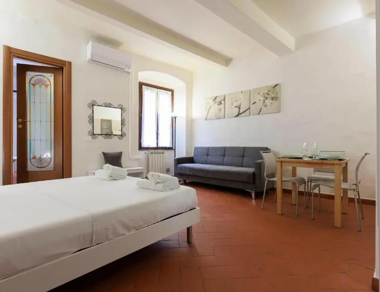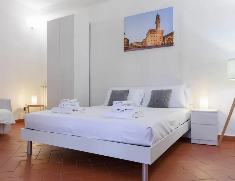 Prime City Center Location: Santa Croce Nest in Florence offers a central position with Piazza della Signoria just a 6-minute walk away. The Cathedral of Santa Maria del Fiore is 2625 feet nearby, while the Uffizi Gallery is an 8-minute stroll. Florence Airport lies 6.8 mi from the apartment. Comfortable Amenities: Guests enjoy free WiFi, air-conditioning, and a fully equipped kitchenette. Additional facilities include a washing machine, private bathroom with bidet, and a dining table. The apartment features a sofa bed, TV, and a wardrobe for added comfort. Convenient Services: Private check-in and check-out, concierge service, and paid parking are available. Reception staff speak English, Spanish, French, and Italian, ensuring smooth communication. Local Attractions: Nearby attractions include Piazza del Duomo di Firenze, Ponte Vecchio, and an ice-skating rink. Guests appreciate the convenient location and proximity to key landmarks. This apartment features 1 living room, 1 separate bedroom and 1 bathroom with a shower and free toiletries. The apartment's kitchenette, which has a refrigerator and kitchenware, is available for cooking and storing food. The air-conditioned apartment features a flat-screen TV, a washing machine, a tea and coffee maker and a wardrobe. The unit has 2 beds.