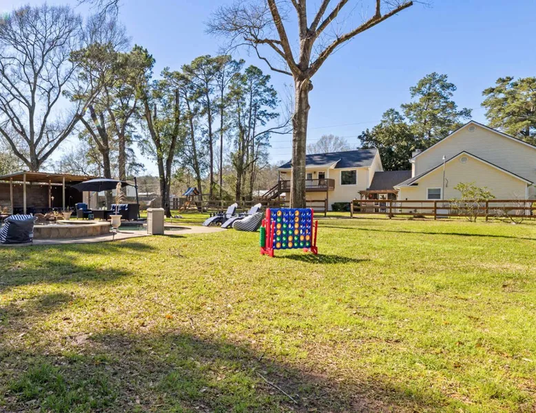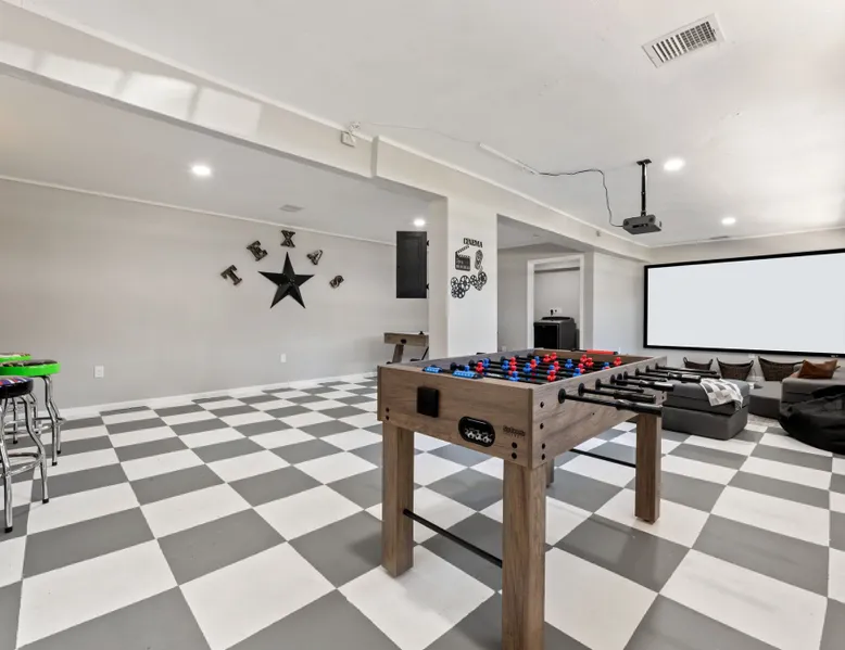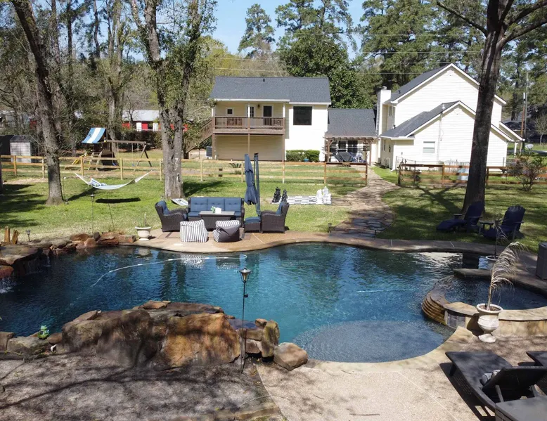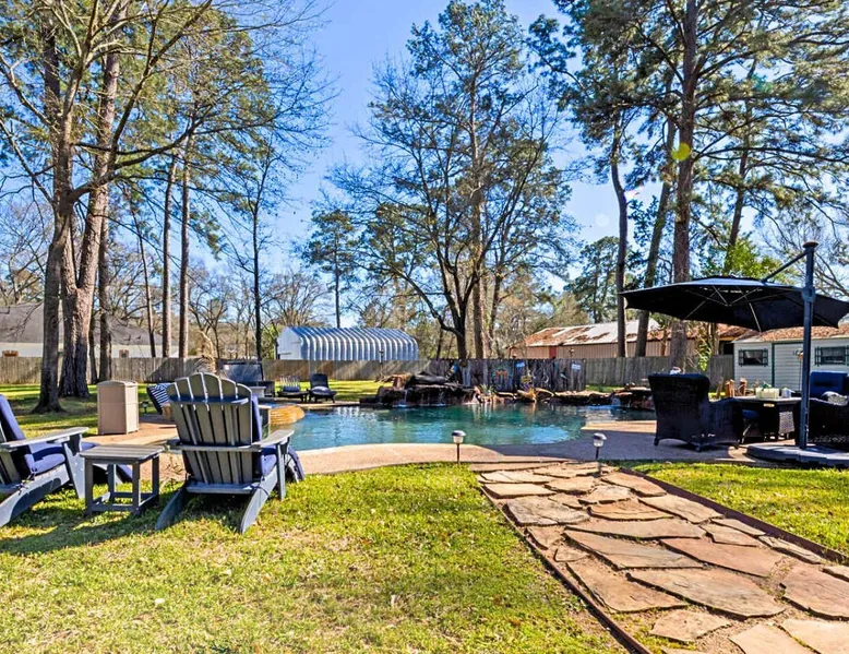 Summary: Unforgettable stays start here! This 7-bedroom, 6-bath retreat in Tomball, Texas is built for gathering, celebrating, and making memories. Whether it’s a milestone event, family reunion, or weekend escape, this home has it all. Enjoy spacious living areas, two master suites, and a private guest house for extra space. Movie nights in the cinema room, game battles in the lounge, and poolside afternoons set the perfect scene. Fire up the grill, relax in the backyard, and soak in the good times. The Space: Main house Bedroom 1 - full master suite with king bed (First floor) Bedroom2- full master suite with king bed (First floor) Bedroom 3 - queen (second floor) Bedroom 4 - queen (second floor) Bedroom 5- 2 twin bunk beds (second floor) Private Guest House Bedroom 6 - king bed (Guest house) Bedroom 7- 2 twin bunk beds (Guest house) Guest Access: Enjoy the comfort and convenience of a self-check-in. One day prior to your arrival you will receive a message with all the instructions. If you still have questions, we’re available for you! The Neighborhood: The neighborhood surrounding Kerr Dr offers the perfect mix of suburban comfort and easy access to everything you need. With grocery stores, parks, shopping, and great dining options just minutes away, this location makes daily life convenient while still providing a peaceful retreat. For groceries, you’ll find Kroger just 7 minutes away (3.5 miles) and H-E-B within 12 minutes (5.7 miles), making it easy to stock up on fresh produce and essentials. For dining, Tomball is home to a variety of restaurants offering everything from comfort food to gourmet flavors: • Adriatic Cafe Italian Grill (2 miles, 5 min drive) – A cozy spot known for fresh pasta and hand-tossed pizzas. • Bonfire Grill (3 miles, 7 min drive) – A local favorite serving wood-fired pizzas and craft cocktails. • Every-Bellies (2.5 miles, 6 min drive) – Famous for oversized stuffed baked potatoes and Southern-style dishes. • Hee Haw’s Tacos & Tequila (3 miles, 8 min drive) – A lively Mexican restaurant with bold flavors and great margaritas. • Pine Street Eats & Sweets (2 miles, 5 min drive) – A charming café offering homemade treats and artisan coffee. When it’s time to explore, you’ll find great outdoor spaces and attractions nearby: • Main Street Crossing (3 miles, 8 min drive) – A live music venue featuring local and national artists. • Tomball Railroad Depot Plaza (3 miles, 7 min drive) – A historic site hosting events and family-friendly activities. • Spring Creek Park (8 miles, 15 min drive) – A beautiful park with hiking trails, fishing spots, and picnic areas. • Tomball Farmers Market (3 miles, 8 min drive) – A weekend market filled with fresh produce, local vendors, and live entertainment. For city adventures, downtown Houston is just a 35-minute drive away, offering world-class museums, the Houston Zoo, and endless entertainment options. Getting Around: Kerr Dr is conveniently located with easy access to major roads, making it simple to explore the surrounding areas and beyond. • Highways & Major Roads: The home is just minutes from TX-249 (Tomball Parkway), providing a direct route to The Woodlands (20 min), Spring (25 min), and Downtown Houston (35 min). • Airports: For travelers, George Bush Intercontinental Airport (IAH) is about 35 minutes away (30 miles), offering both domestic and international flights. • Public Transportation: While Tomball is primarily a car-friendly area, METRO operates park-and-ride services in nearby locations for commuting to Houston. • Ride-Share & Car Rentals: Uber and Lyft are readily available, making it easy to get around without a car. Several car rental agencies are also located within a short drive. Other Things to Note: House Rules • Pet-Friendly: House-trained pets are welcome with a $150 fee per pet. Guests must register their pets and clean up after them, especially in the backyard. Failure to report pets will result in a $500 penalty. • Parties or Large Gatherings: Please contact us to verify the possibility of hosting an event. A fee may apply depending on the type of event. • Additional Fees: A $39 fee per guest per night applies for the 7th guest onwards. • Entertainment: Smart TVs with streaming apps are available. Guests need to log into their own accounts, and if they forget to sign out, we will take care of it after checkout. • No Indoor Smoking: A $500 fine applies for violations. Smoking is allowed outdoors only, and guests must dispose of cigarette butts properly. • Pool: The pool is serviced twice a week in summer and once a week in other months. //- Kiddie pool - // - NOT HEATED POOL - Please note that the pool is professionally serviced twice a week during the summer months and once a week during the rest of the year. As this is an outdoor pool, it’s normal for some leaves or debris to appear between cleanings. This does not indicate the pool is unclean—rest assured, all necessary chemicals are properly balanced, and the filtration systems are regularly maintained for your safety and comfort. The pool technician accesses the area through the backyard gate. • Landscaping: Lawn care is performed once a week. • Security Cameras: Two outdoor cameras are installed for security purposes. There are no cameras inside the home. • House Rule Violations: Can result in reservation cancellation, no refunds, and loss of deposit. • Pest Control: Pest control service is monthly. If guests encounter bugs, they should notify us immediately. The yard may have wildlife, and occasionally, outdoor insects may appear inside. These bugs are not harmful, and we will promptly remove them if reported. • Wi-Fi: High-speed Wi-Fi is available, but there is no cable TV. • No Drugs or Illegal Substances: The use, possession, or distribution of illegal drugs or substances is strictly prohibited on the property. Any violation will result in immediate cancell