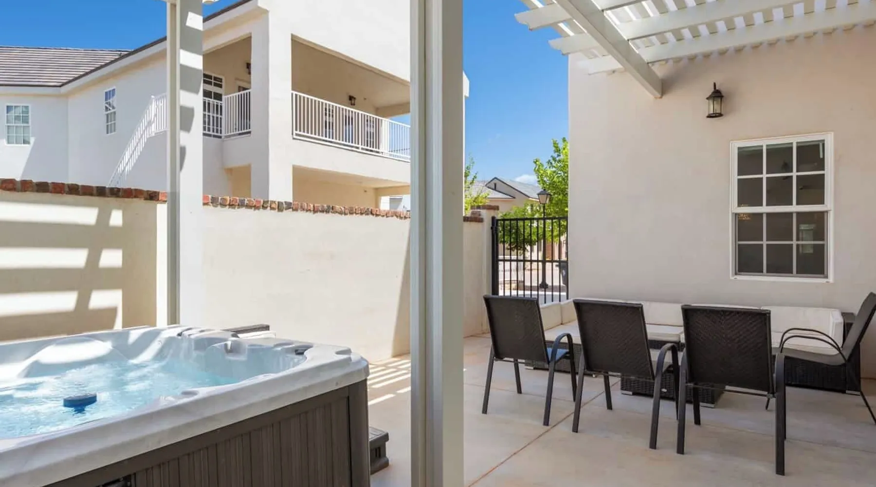 Twice Charmed invites you to experience the charm of Hurricane, Utah! Enjoy a stay in our two nearby units, just 5 minutes from Sand Hollow! 8 Bedrooms and 8 bathrooms, sleeps up to 43! 2 Private Hot Tubs. Key Features: -Sleeps 43, 8 Bedrooms, 8 Bathrooms -2 Private Hot Tubs -Community Pool and Hot Tub (Heated Year-Round) -Community Splash Pad -Community Pickleball Courts -Community Park -2 Fully Equipped Kitchens -2 Hot tubs -2 BBQ Grills + Fenced in Backyard -2 Patios + Outdoor Seating -2 Foosball Tables -Smart TVs + Hulu TV -Electric Car Charging Outlet -2 Double Car Garages -4 Designated Parking Spots plus plenty of ample parking in community Bedroom Breakdown: House #1 Bedroom 1 - King Bed / Attached Bath (Main Floor) Bedroom 2 - King Bed / Attached Bath Bedroom 3 - Queen Bed / Attached Bath Bedroom 4 - 2 Full/Full bunks, 2 Twin/Full Bunks, 1 Full Bed Pack N’ Play House 2: Bedroom 1 - King Bed (Main Floor) *Full Bathroom on Main Floor Bedroom 2 - King Bed/Attached Bath Bedroom 3 - King Bed/Attached Bath Bedroom 4 - 5 Twin over Full Bunks/Attached Bath Pack N’ Play Twice Charmed is fully equipped for the ultimate Southern Utah getaway. These two nearby units are perfect for reunions or large group gatherings! With 2 private garages, 2 hot tubs, 2 foosball tables for endless fun, and 4 living spaces, there’s plenty of room to relax and unwind. Enjoy a game station area and all the amenities you need to prepare and serve family meals, whether inside or grilling on the patio. There’s so much to explore at Twice Charmed – come and enjoy! Located just north of the stunning Sand Hollow Reservoir lies Elim Valley, a community designed to provide a unique Southern Utah vacation experience! This green oasis in the desert showcases tree-lined streets and luscious fields overlooked by contemporary vacation rentals. Featuring 2 pools, a large spa, a splash pad area, and pickleball courts, this luxurious resort is perfectly situated for a short drive to Zion’s National Park, the city center, or one of many outdoor adventure sites! There is no overnight street parking for any vehicles/trailers in this community. Any boats, trailers, buses, motor homes, campers, recreational vehicles, or other such vehicles must be parked in the garage or designated parking areas. There is trailer/RV/boat parking on the back side of Canterbury Road. Please reach out to the host prior to booking with any parking questions! As a valued Red Rock Vacation Rentals guest, you're in for a treat! Enjoy exclusive discounts at amazing local spots like BigShots Golf, Jellystone Park, Tuacahn Amphitheater, Pizza Factory, Cafe Sabor, ATV and bike rentals, and more! Looking to elevate your stay? Our concierge team is here to assist with booking golf tee times, arranging private chefs, or even scheduling a relaxing in-home massage. Keep an eye on your inbox—promo codes for all 16 local partners will be sent 48 hours after booking. Your adventure awaits! We would like to advise you that during this time, the Elim Valley Community is experiencing ongoing construction in close proximity to your vacation rental. While this will not impact your use of any of the provided amenities, we want to remind all guests to only use the designated and completed roads and pathways, and to steer clear of any active construction activity. This will ensure not only your safety but the safety of the construction workers. Thanks in advance for your consideration! -31 Miles to Zion National Park -24 Miles to Tuacahn Amphitheatre -16 Miles to STG Airport -21 Miles to BigShots Golf -3 Miles to Sand Hollow -14 Miles to Red Cliffs Mall -1 Miles to Jellystone Adventure Park NO PETS NO SMOKING Check In: 4:00 PM Check Out: 11:00 AM