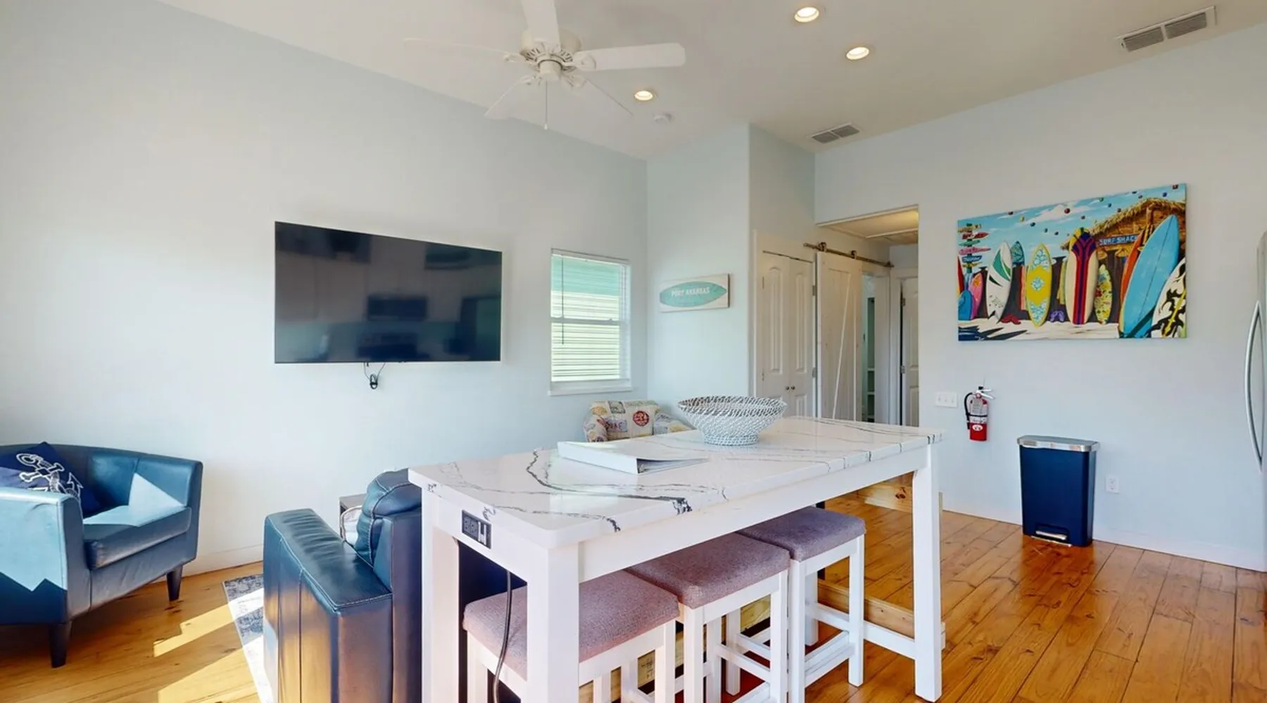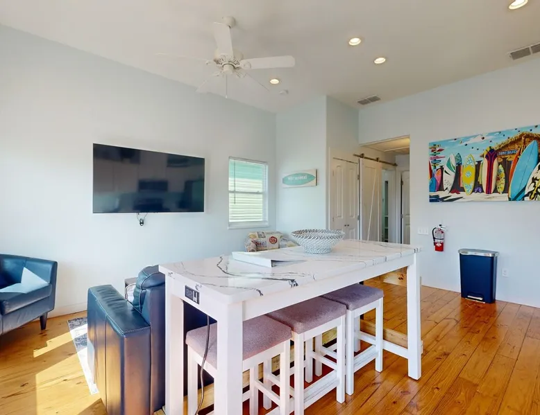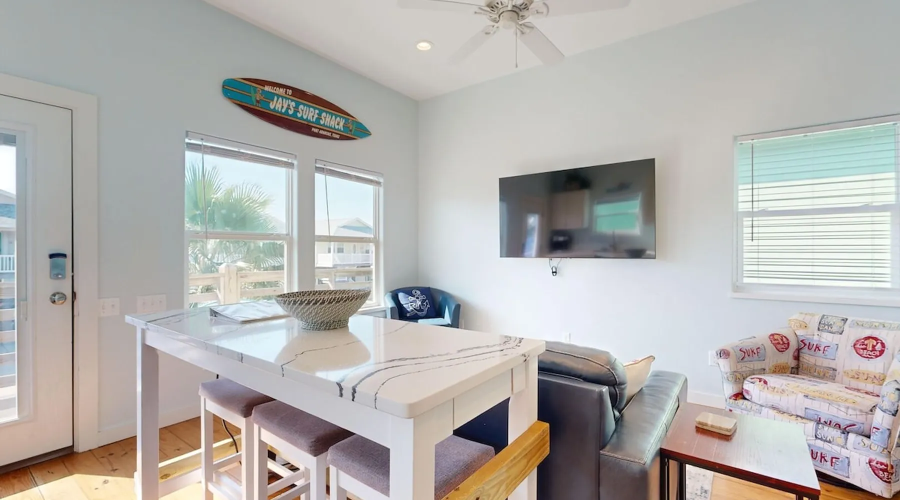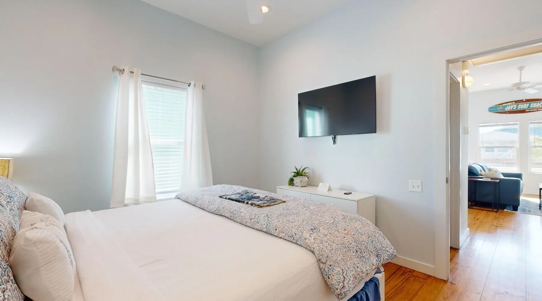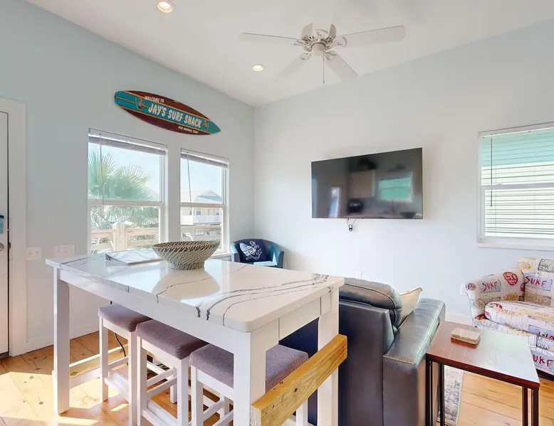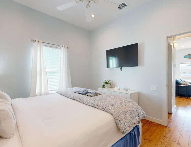 ESB04: Jay's Surf Shack 2BD, 1BA, Shared Pool, Charcoal Grill, Pet Friendly, Golf Cart Access Welcome to Jay's Surf Shack, your perfect beach retreat located just off 11th Street. This charming getaway is designed for families or groups looking to unwind and create lasting memories, comfortably accommodating up to 8 guests. The space ESB04: Jay's Surf Shack 2BD, 1BA, Shared Pool, Charcoal Grill, Pet Friendly, Golf Cart Access Welcome to Jay's Surf Shack, your perfect beach retreat located just off 11th Street. This charming getaway is designed for families or groups looking to unwind and create lasting memories, comfortably accommodating up to 8 guests. As you step inside, you'll be greeted by a cozy ambiance that invites relaxation. The spacious living area is perfect for unwinding after a day of sun and surf, complete with a television for your entertainment needs. The fully equipped kitchen features sleek stainless steel appliances and ample counter space, making meal preparation a breeze. Step outside to enjoy the outdoor space, which includes a grill and a comfortable seating area—ideal for evening barbecues or sipping your morning coffee while soaking in the neighborhood view. On hot days, take a refreshing dip in the shared pool, or take a short stroll to the nearby beach to indulge in sunbathing, swimming, and a variety of water sports. For those eager to explore, Jay's Surf Shack is conveniently located near local marinas, fishing spots, and shopping areas, providing endless opportunities for adventure. With 2 bedrooms and a well-appointed bathroom, this delightful retreat is the ultimate destination for your next beach vacation. Don't miss your chance to experience the coastal lifestyle at Jay's Surf Shack! Things to know: WIFI Shared Pool Charcoal grill (Please provide your own charcoal) Fully equipped Kitchen (Drip and Keurig coffee maker, please bring coffee, filters, and K-cups) Washer/Dryer (No laundry soap provided) Pet Friendly ($95 Pet Fee, per pet (Limit 2) Parking for 3 vehicles Must be 25 years old to book one of our units. Strictly enforced, ID verified upon check-in Life in Paradise rental agreement required upon booking We provide WIFI to enhance your stay and keep you connected. While Port A is typically reliable, you may experience occasional outages beyond our control. Thank you for your understanding Bedrooms and bathrooms: BR1 King, TV, Closet, Chest BR2 Bunk Bed, Full over Full, TV, Closet Hall Bath - Tub/Shower combo, Single vanity