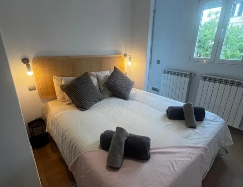 Comfortable Living: Apartamento 3A Atocha in Madrid offers a terrace and free WiFi. The apartment includes air-conditioning, a kitchenette, washing machine, and a dining area. Modern Amenities: Guests can enjoy a work desk, soundproofing, and tiled or parquet floors. Additional features include a sofa bed, TV, and outdoor furniture. Prime Location: Located 9.9 mi from Adolfo Suarez Madrid-Barajas Airport, the apartment is near Puerta de Atocha (19-minute walk), Reina Sofia Museum (1.1 mi), and El Retiro Park (2 mi). Nearby Attractions: Explore El Retiro Park, Royal Palace of Madrid, and Mercado San Miguel within 2.5 mi. Boasting a private entrance, this air-conditioned apartment features 1 living room, 1 separate bedroom and 1 bathroom with a bath and a shower. Meals can be prepared in the kitchen, which has a stovetop, a refrigerator, kitchenware and an oven. The apartment has a washing machine, soundproof walls, a tea and coffee maker as well as a terrace with city views. The unit has 2 beds.