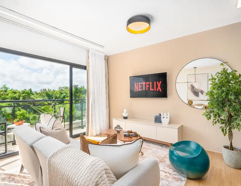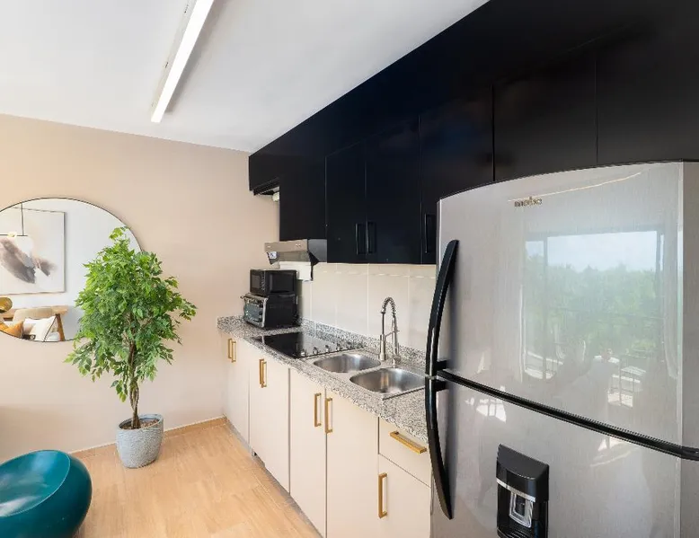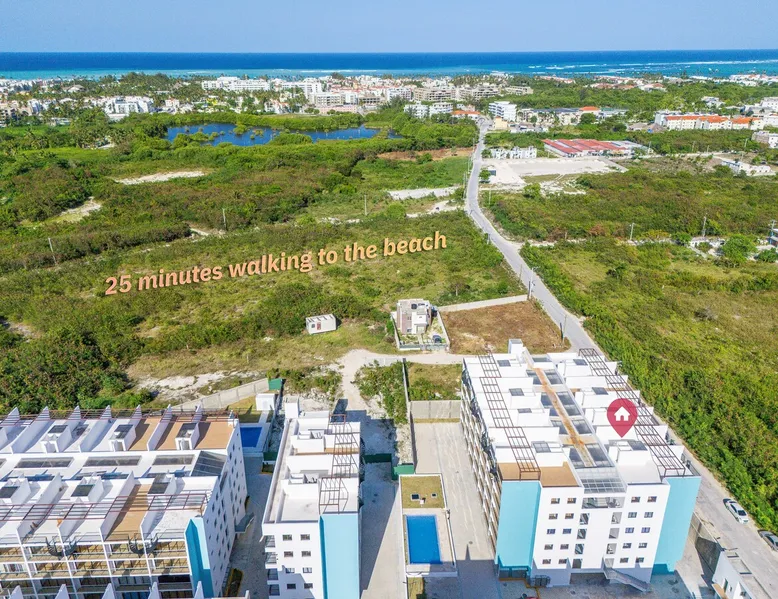 The ideal apartment whether you want to work and at the same time vacation enjoying the sunny atmosphere of Bavaro Punta Cana Just 6 Minutes in Carro Playa Bavaro, Close to Bars, Restaurants, Gym, and Minimarkets. Our building is located in a developing area, the surroundings can have areas in Construction, however, the apartment has been designed to offer you a quiet and comfortable environment, available for long and short term rent.