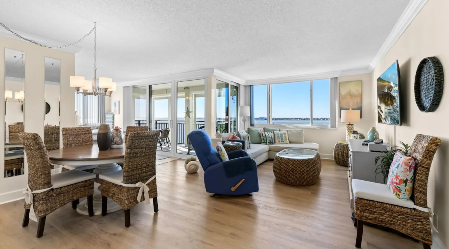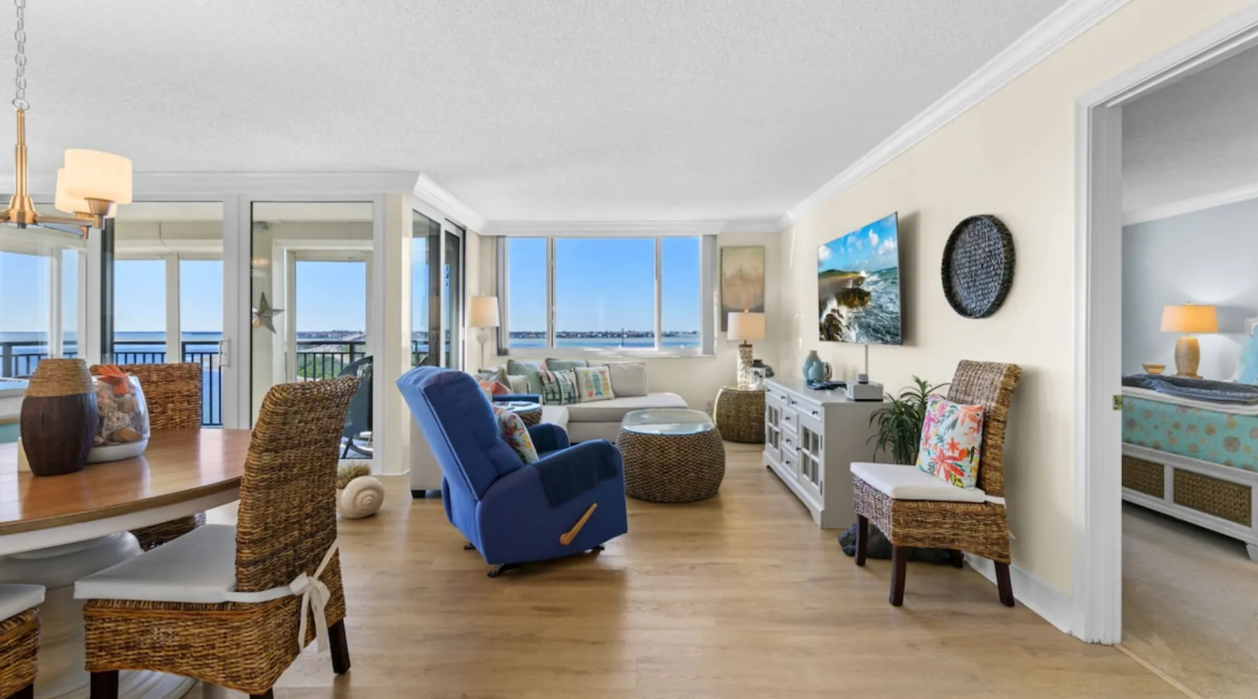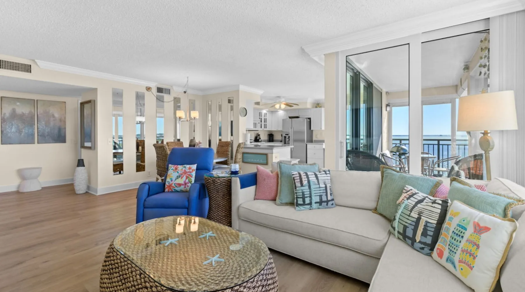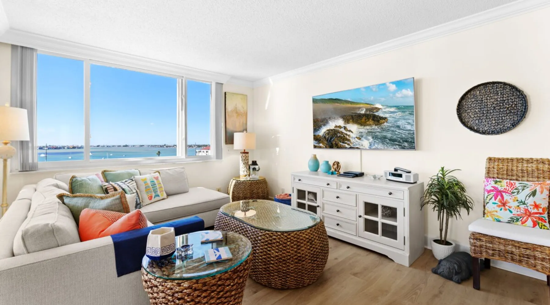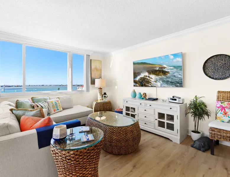Welcome to your dream getaway in beautiful Palma Del Mar! 🌴✨ Located on the 9th floor of this luxurious building, this spacious 2-bedroom, 2-bath condo offers breathtaking panoramic views of the sparkling waters of Tampa Bay. Wake up to mesmerizing sunrises from your private balcony or unwind in the evening with gentle ocean breezes. This fully furnished condo features an open-concept layout with natural light flooding through floor-to-ceiling windows. Other things to note Welcome to your dream getaway in beautiful Palma Del Mar! 🌴✨ ★ Stunning Waterfront Views ★ Located on the 9th floor of this luxurious building, this spacious two-bedroom, two-bath condo offers breathtaking panoramic views of the sparkling waters of Tampa Bay. Wake up to mesmerizing sunrises from your private balcony, or unwind in the evening with gentle ocean breezes. ★ Modern, Comfortable Living ★ This fully furnished condo features an open-concept layout with natural light flooding through floor-to-ceiling windows. Highlights include a bright and airy living room with plush seating and a large Smart TV, a fully equipped kitchen with stainless steel appliances, granite countertops, and everything you need to prepare a gourmet meal, and a cozy dining area perfect for entertaining family or friends. ★ Two Spacious Bedrooms ★ The primary suite includes a king-sized bed, ensuite bathroom, and direct balcony access with sweeping water views. The second bedroom has two comfortable beds, ideal for guests or children. Both bedrooms feature luxury linens, ample closet space, and serene décor for a restful night’s sleep. ★ Resort-Style Amenities ★ As a guest at Palma Del Mar, you'll enjoy access to various amenities: a sparkling waterfront pool with sun loungers, a hot tub, lush, manicured grounds, designated parking, and secure building entry for peace of mind. ★ Prime Location ★ Nestled in a serene neighborhood, yet just minutes from the best St. Petersburg offers: a 10-minute drive to St. Pete Beach for endless sun and surf, close to restaurants, shops, and vibrant downtown nightlife, and enjoy golf courses, walking trails, and nearby marinas. ⛰ The Perfect Stay for Couples, Families, or Professionals Whether you're here for a relaxing escape, remote work, or a family vacation, this waterfront haven has everything. Book now and experience the perfect mix of luxury, comfort, and natural beauty! ☀️ Don’t miss out on this one-of-a-kind escape. Reserve your dates today! We look forward to hosting you! ✨ Key Features at a Glance: 2 Bedrooms, 2 Bathrooms: waterfront views and private balcony, pool, hot tub, and outdoor amenities, fully equipped kitchen, fast Wi-Fi and Smart TV, close to beaches, restaurants, and attractions.