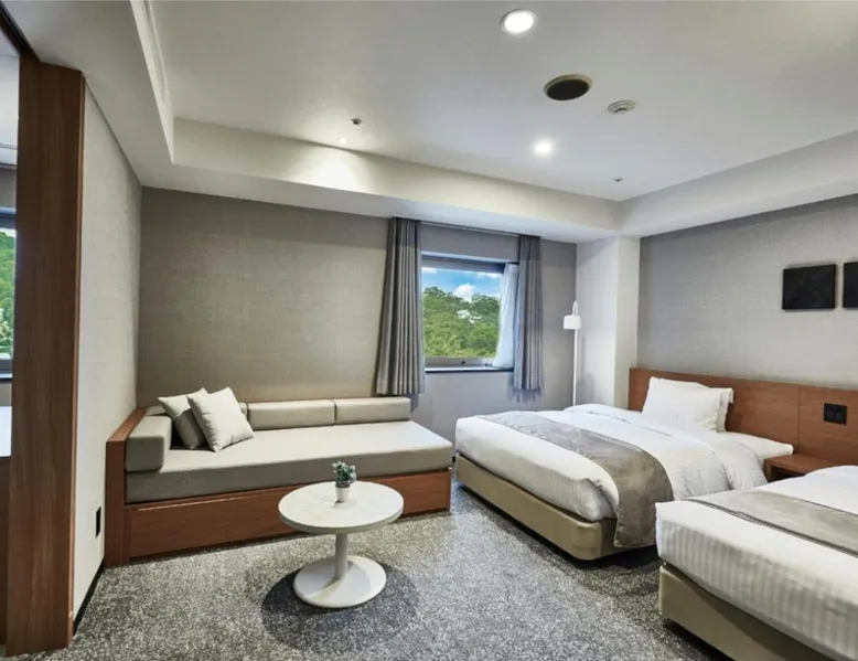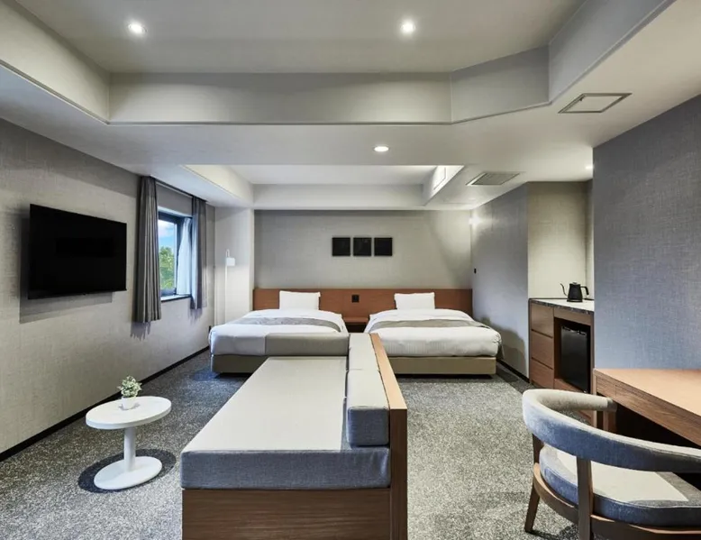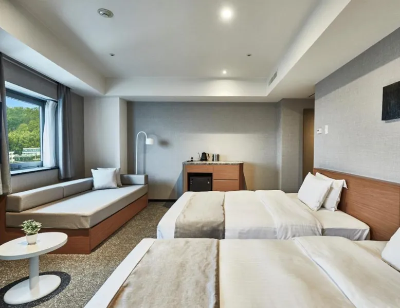 Comfortable Accommodations: One Station Hotel Kumamoto in Kumamoto offers family rooms with air-conditioning, private bathrooms, and city views. Each room includes a tea and coffee maker, free toiletries, and a work desk. Dining and Leisure: Guests can enjoy a terrace, restaurant, and bar. The family-friendly restaurant serves European and pizza cuisines, while the bar offers cocktails. Free WiFi is available throughout the property. Convenient Location: Located 11 mi from Kumamoto Airport and a 2-minute walk from Kumamoto Station, the hotel is near attractions such as Kumamoto Castle (1.9 mi) and Suizenji Park (3.7 mi). Public transport options enhance the convenient location. Guest Services: The hotel provides a elevator, 24-hour front desk, bike hire, and luggage storage. Additional amenities include a child-friendly buffet, family rooms, and full-day security. The air-conditioned suite features 1 bedroom and 1 bathroom with a bath and a shower. The suite provides a flat-screen TV with satellite channels, tatami, a tea and coffee maker, a safe deposit box as well as city views. The unit offers 3 beds.