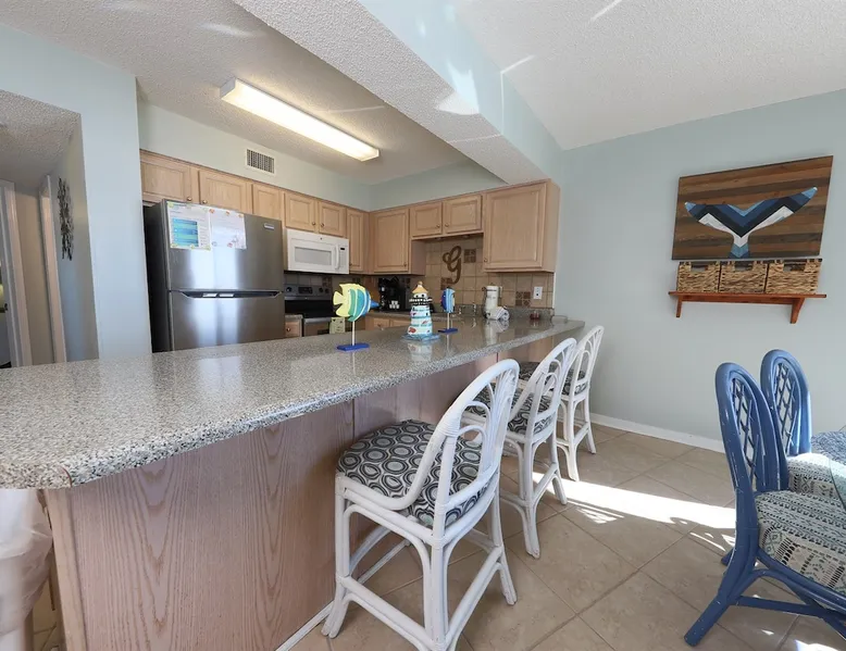 ***New Listing Alert!! See our 200+ 5 star reviews across other properties and book worry free. Discover the ultimate beachfront retreat in this spacious 3-bedroom, 2-bathroom corner unit, perfectly designed for comfort and relaxation. Located in the heart of Orange Beach, this condo offers stunning views of the Gulf of Mexico and direct beach access, making it the ideal destination for your next getaway. The space *Please note that a construction project will be taking place beginning July 28th 2025 and will continue through the end of November. During this time, there will be noise as they grind the concrete walkways and balconies to prepare for a new floor coating to be installed. The condo is blocked out during times that the walkway or balcony will be inaccessible, and renters are welcome during the other times, with the understanding that there will likely be some noise and possibly dust. Condo Highlights: Master Bedroom: Features a luxurious king-size bed, an ensuite bath with a beautifully tiled walk-in shower, and ample storage space. Guest Rooms: Both guest bedrooms are equipped with queen-size beds. One bedroom has private access to the second bathroom for added convenience. Living Room: Includes a comfortable sleeper sofa, bringing the sleeping capacity to 8. Relax and unwind while enjoying the breathtaking views from the large balcony. Kitchen & Dining: A fully equipped kitchen with all the essentials makes meal preparation a breeze. Adjacent is a cozy bar area complete with a drink cooler and ice maker, perfect for entertaining. Tile Flooring: Easy-to-clean tile floors extend throughout the unit, adding a touch of elegance and practicality. Outdoor Features: Private Balcony: Spacious and furnished with durable polywood Adirondack chairs, the balcony offers unparalleled views of the beach and Gulf. It's the perfect spot to enjoy morning coffee or evening sunsets. Resort Amenities: Outdoor pool and heated indoor pool Sauna and steam room Two tennis courts Direct access to the beach just steps away Whether you're looking to relax by the pool, enjoy a day on the beach, or explore the vibrant local attractions, Seaside Beach and Racquet Club Unit 5814 is the perfect home away from home. Book your stay today and start making unforgettable memories! At Coastal South Vacation Rentals, we believe that every detail counts when it comes to ensuring a memorable stay. That's why each reservation includes a thoughtful starter set of amenities to kickstart your vacation with ease. From paper towels to dish detergent, laundry essentials to toiletries, and even snacks and K-cups for that morning pick-me-up, we've got you covered. But it doesn't stop there. Our commitment to excellence extends beyond just amenities. We take pride in providing top-notch cleaning services, clear communication, and ensuring guest satisfaction at every turn. Whether you have questions about the property, need recommendations for local attractions, or require assistance during your stay, our dedicated team is here to help. Your comfort and satisfaction are our top priorities. So sit back, relax, and let us take care of the rest. Your dream beach getaway awaits! -Primary guest must be 25 or older and present for the duration of the stay. -Signed rental agreement and picture of ID required after booking. -Parking passes must be purchased from security upon arrival. No more than 2 vehicles per unit are allowed. Parking passes are $50 each. Guest access Guests will have full access to the entire condo and all amenities on site, with the exception of one small locked owners closet in the condo.