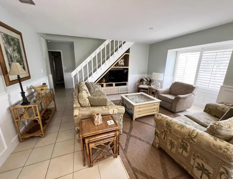 Find your island escape at this beautifully remodeled 2-bedroom + loft, 2.5-bath condo in Tamarind Gulf & Bay on Manasota Key. Nestled on the Gulf side of the complex, this third-floor retreat features tropical views, stylish upgrades, and a spacious layout perfect for soaking up sunsets and coastal breezes. The space Why You’ll Love It This spacious unit combines elegant design with unbeatable beachside access. From the cozy loft with a private rooftop deck to the peek-a-boo Gulf views and plantation shutters, this home is full of charm and comfort. Whether you're relaxing indoors or enjoying a cocktail at sunset, this is coastal living at its best. Sleeping Arrangements • Primary Bedroom: King bed, ensuite bath with walk-in glass shower • Guest Bedroom: Queen bed • Loft: Additional sleeping area + half bath • Bathrooms: 2 full baths + 1 half bath Outdoor Highlights • Private rooftop deck with Gulf views • Screened balcony with peek-a-boo Gulf view • Gulf-side building steps from the sand • Tropical landscaping and cobblestone paths Interior Comforts • Remodeled with coastal-style decor and fresh paint • Elegant wainscoting and plantation shutters • Ceiling fans and TVs in living room, bedrooms, and loft • In-unit stackable washer and dryer Kitchen & Dining • Granite countertops and classic wood cabinetry • Two refrigerators for added storage • Stainless appliances and ample prep space • Open dining area with comfortable seating Included Home Essentials • Free WiFi and cable • Bed and bath linens • Central air conditioning • Elevator access from main level (only a few stairs) Tamarind Gulf & Bay Tamarind Gulf & Bay is a tropical island community nestled between the Gulf of Mexico and Lemon Bay on Manasota Key. Meander through cobblestone paths surrounded by lush landscaping as you make your way to the private beach or bayside boat docks. This well-maintained complex offers an ideal mix of relaxation, recreation, and scenic Florida charm. • Heated outdoor pool with poolside loungers • Private beach access with rinse-off shower • Charcoal grilling areas by the beach, bay, and pool • First-come, first-served boat slips on Lemon Bay • Community kayak launch • Bike rack and car wash station • Clubhouse for guest and owner use Access & Parking Guests register easily with the association and are assigned a covered parking space for convenience. Each building offers quick access with just a few steps or elevator service for floors above two stories. Entry codes or physical keys are provided by management prior to arrival. From rooftop sunsets to beach walks and boating days — book your stay at Tamarind Gulf & Bay now with Gulf Coast Vacations!