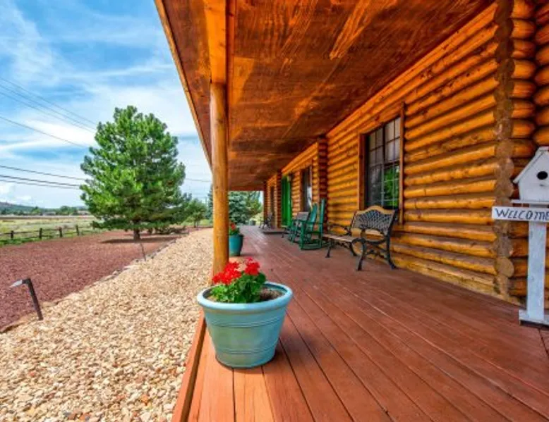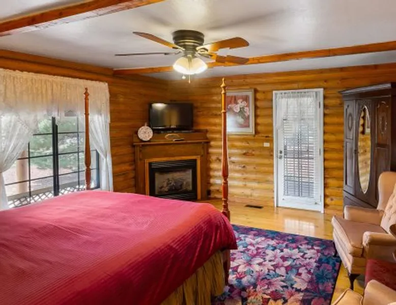 Welcome to the ROSE ROOM at Quarter Horse Inn by PORTER. This cozy, log cabin-style room in a historic private inn combines vintage charm of bygone era with modern comfort. It features a King bed, a Victorian claw-foot tub, a fireplace in both the room and lobby, and private access to a wrap-around deck with stunning views of Bill Williams Mountain. Located in a peaceful setting, it's just a 5-minute walk from the Grand Canyon Railway and downtown Williams. Learn more below… 👇 The space Welcome to the ROSE ROOM at Quarter Horse Inn by PORTER. This cozy, log cabin-style room in a historic private inn combines vintage charm of bygone era with modern comfort. It features a King bed, a Victorian claw-foot tub, a fireplace in both the room and lobby, and private access to a wrap-around deck with stunning views of Bill Williams Mountain. Located in a peaceful setting, it's just a 5-minute walk from the Grand Canyon Railway and downtown Williams. Learn more below… 👇 ★☆ HIGHLIGHTS ☆★ ✔ Elegant Rose Room Design: Alder wood floors, a King-sized four-poster bed, and two wing-back chairs. Amenities include a fireplace, armoire, flat-screen TV, and overhead fan. The private bath features a hand-painted Victorian clawfoot tub/shower, pedestal sink, and private access. ✔ Relax in Comfort: Sleep soundly on a luxurious king bed, then refresh in the private bath with a Victorian claw-foot tub/shower and a classic pedestal sink, combining comfort and style. ✔ Stunning Wrap-Around Deck: Savor panoramic mountain views and the nostalgic sight of a historic steam engine as it rolls by, all from the comfort of your private access to wrap-around deck. ✔ Perfect Location: Ideally situated just minutes from the Grand Canyon Railway, downtown Williams, and iconic Arizona landmarks like the Painted Desert and Route 66. ✔ Thoughtful Amenities: Includes complimentary Wi-Fi, cable TV, a coffee maker, and a curated selection of local teas to make your stay even more enjoyable. ✔ Inviting Lobby Space: Step through the main front door into a beautiful, open lobby designed for comfort and connection. Enjoy two cozy seating areas, complimentary snacks and beverages, and plush chairs perfect for relaxing in front of the warm stone fireplaces. ✔ Self-Contained Inn: Boasting 4 uniquely designed rooms, each with its own charming character, this inn offers a warm and personalized retreat for every guest immersing you back in time. ★☆ ABOUT QUARTER HOUSE INN ☆★ The Quarter House Inn is a peaceful retreat nestled in the charming town of Williams, the Gateway to the Grand Canyon. Surrounded by the serene beauty of Bill Williams Mountain at an elevation of 6,770 feet, our Inn offers 4 beautifully furnished rooms, each uniquely designed to provide a one-of-a-kind experience. Perfect for groups, we accommodate up to 8 guests, making it an ideal choice for shared getaways in a picturesque setting of fresh air, sunshine, and timeless Western charm. Step inside our spacious, open lobby, thoughtfully crafted for comfort and relaxation. Unwind in one of the cozy seating areas, enjoy complimentary snacks and beverages, or settle into a plush chair by the grand stone fireplace. Whether you're exploring nearby trails or soaking in the simplicity of mountain life, the Quarter House Inn invites you to relax and reconnect. ★☆ ROSE ROOM ☆★ ✔ King Bed: Features a four-poster bed with shimmering rose and gold accent covers and decorative pillows. ✔ Seating Area: Includes two large wing-back chairs for a luxurious touch. ✔ Entertainment: Flat-screen TV with DirecTV for all your favorite shows. ✔ Elegant Bathroom: Private bath with a hand-painted two-person Victorian claw-foot tub/shower and a pedestal sink. ✔ Classic Ambiance: Beautiful alder wood floors, a large window, an overhead fan, an armoire, and a cozy fireplace. ✔ Private Access: Enjoy the convenience of a private entry through the wrap-around deck. ★☆ STEP BACK IN TIME ☆★ ✔ Wrap-Around Deck: Access the outdoors through a private screened door leading to your wrap-around deck. With mountain views and steam engines passing by, it’s a perfect spot for morning coffee or evening relaxation. ✔ Perfect Location: Enjoy the peaceful charm of Williams with its timeless atmosphere, just minutes from Downtown Williams along serene trail right off the Inn. ★☆ LOCATION & COMMUNITY ☆★ ✔ Minutes to Downtown Williams: Experience the charm of Williams, where the old west meets modern adventure. Just minutes walking from our Inn, explore local breweries, eateries, and unique shops. Cowboys, horses, vintage cars, and motorcycles add to the town's charm, along with blue skies, fresh mountain air, and sunshine. ✔ Grand Canyon Adventures: Only 5 minutes walk from the Grand Canyon Railway, start your journey to Grand Canyon National Park. The two-hour train ride offers stunning views and unforgettable memories. ✔ Explore Arizona's Hidden Gems: From our Inn, drive to Northern Arizona’s top destinations like the Painted Desert, Monument Valley, and Petrified Forest. Visit nearby Indian ruins and reservations to explore the region's rich history and culture. ✔ Bill Williams Mountain Serenity: At 6,770 feet, our Inn offers a peaceful escape surrounded by the beauty of Bill Williams Mountain. Relax mountain views in our comfortable rooms and spacious, quiet atmosphere. ✔ Four-Season Climate: Enjoy Williams year-round. Fields of wildflowers in spring, sunflowers in summer, golden aspens in fall, and snowy landscapes in winter. With cool summer highs in the 80s and lows in the 60s, it’s the perfect retreat in any season. ★☆ BOOK TODAY & START YOUR ARIZONA ESCAPE WITH PORTER! ☆★ Guest access Easy, fast, hassle free self check-in! Following a simple electronic signature, you will receive check-in information 1 week prior to your stay, and will gain access to this space. Other things to note ★☆ OTHER THINGS TO KNOW 
