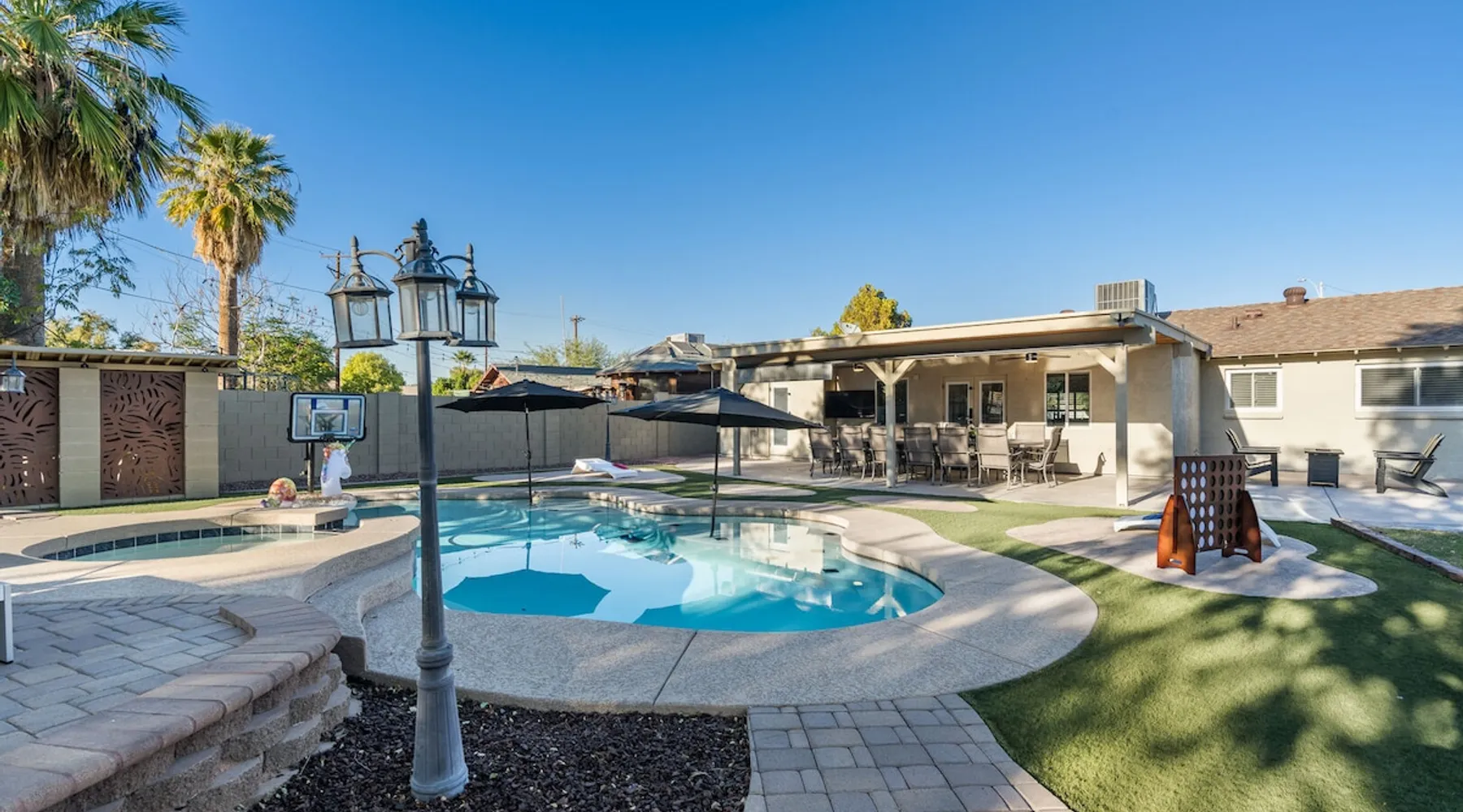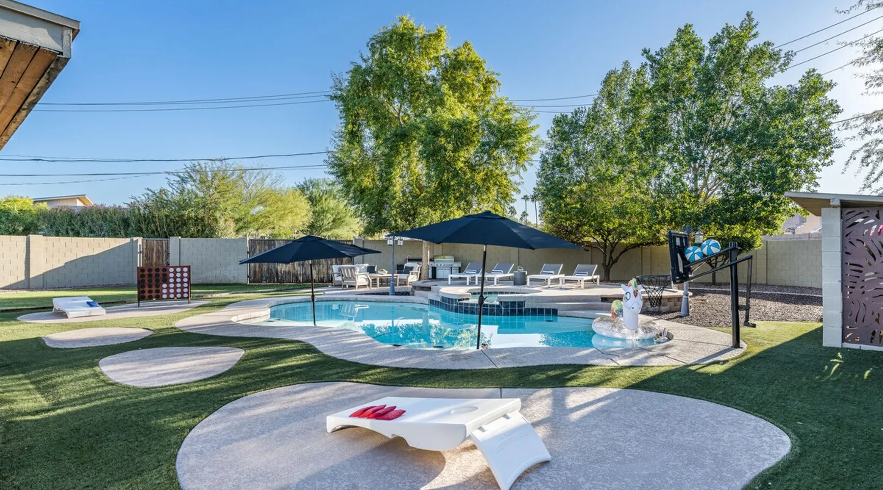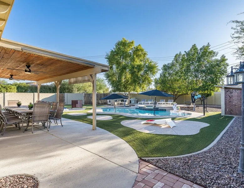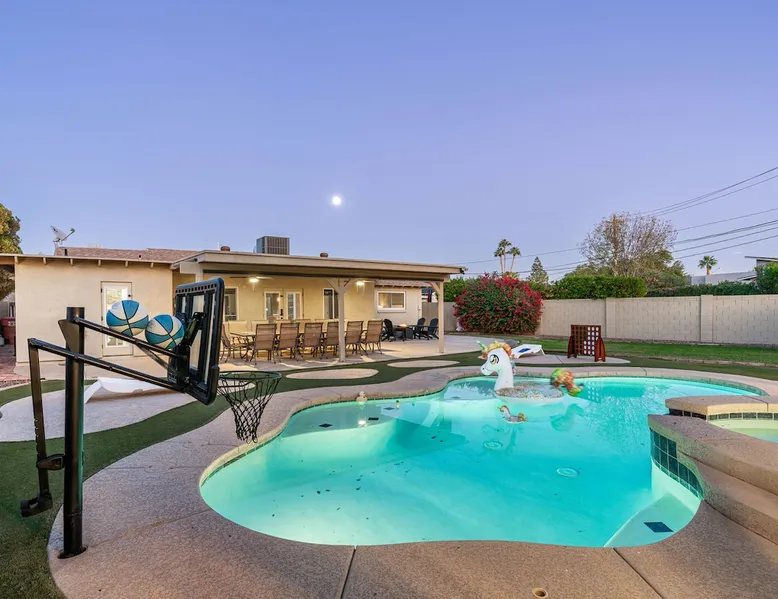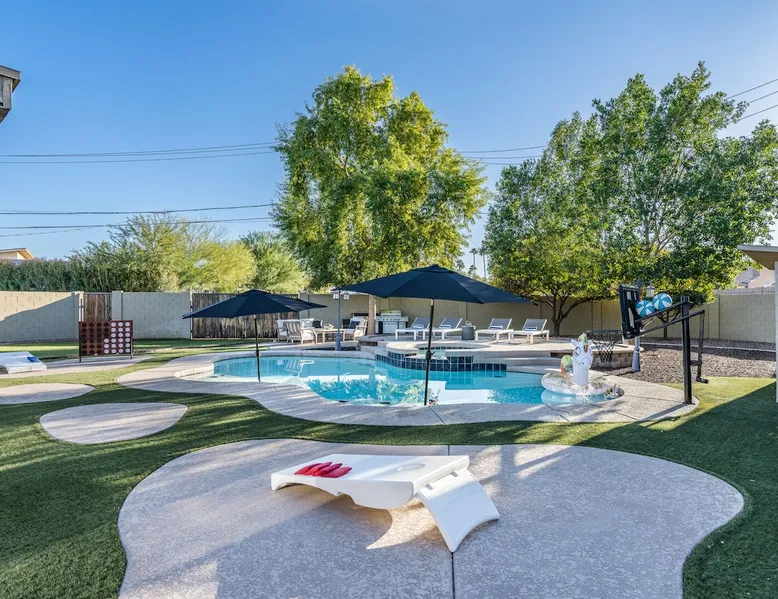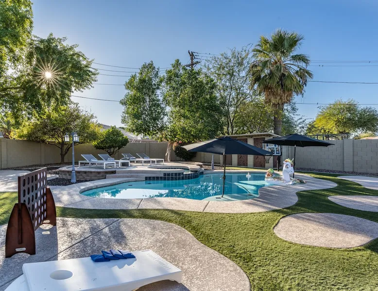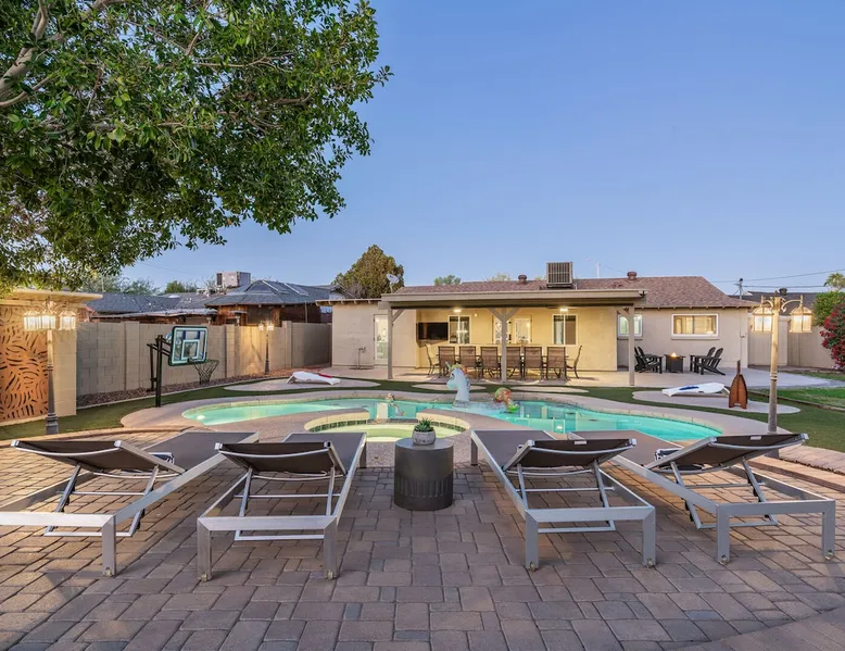 TPT #21587194 STR #2036603 Discover your perfect desert retreat! This beautifully maintained home offers a cozy and modern interior, a fully equipped kitchen, and a private backyard oasis with a sparkling pool and BBQ area. Conveniently located just minutes from Old Town Scottsdale, top-rated golf courses, hiking trails, and vibrant dining and shopping options, it’s the ideal base for your Arizona adventure. The space Property Highlights Spacious Living: Open-concept design with inviting living areas and modern decor. Chef s Kitchen: Fully stocked with premium appliances and everything you need for home-cooked meals. Private Backyard Oasis: Lounge by the sparkling pool, fire up the grill, and soak up the Arizona sun. Cozy Bedrooms: Restful spaces with comfortable beds and fresh linens for a great night s sleep. Entertainment Ready: High-speed Wi-Fi and Smart TVs. Google Nest Video doorbell by the front door. Prime Location Located just minutes from Old Town Scottsdale, world-class golf courses, hiking trails, and premier shopping and dining options. It s the perfect spot to enjoy everything Scottsdale has to offer while retreating to a peaceful, quiet neighborhood. TPT #21587194 STR #2036603 Guest access Easy, fast, hassle free self check-in! Following a simple electronic signature, you will receive check-in information 1 week prior to your stay, and will gain access to this space. Other things to note Have fun, reach out anytime and enjoy your stay with PORTER *Important Note: We want you to enjoy your stay to the fullest, Please be aware amenities may break or not work during your stay and we’ll do our best to accommodate you. May an amenity not work or fail during your stay we will do our best to make it right, and we can refund up to 10% of the affected nights to make it right. You have to let us know at the time of notice so we can do our best to remedy the situation.