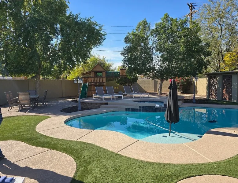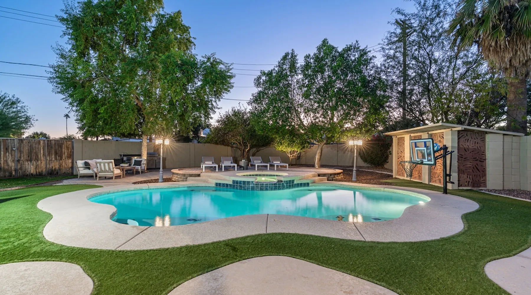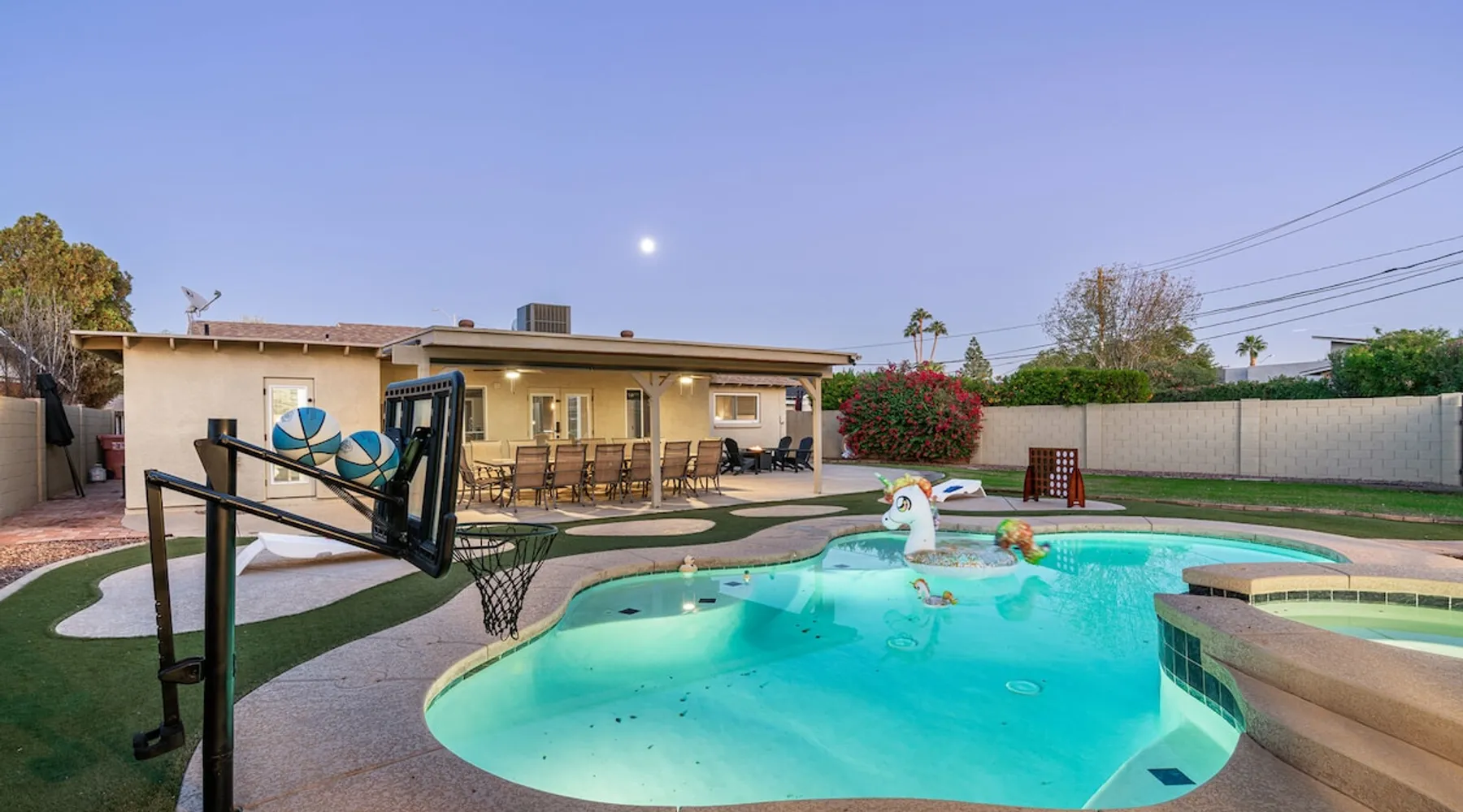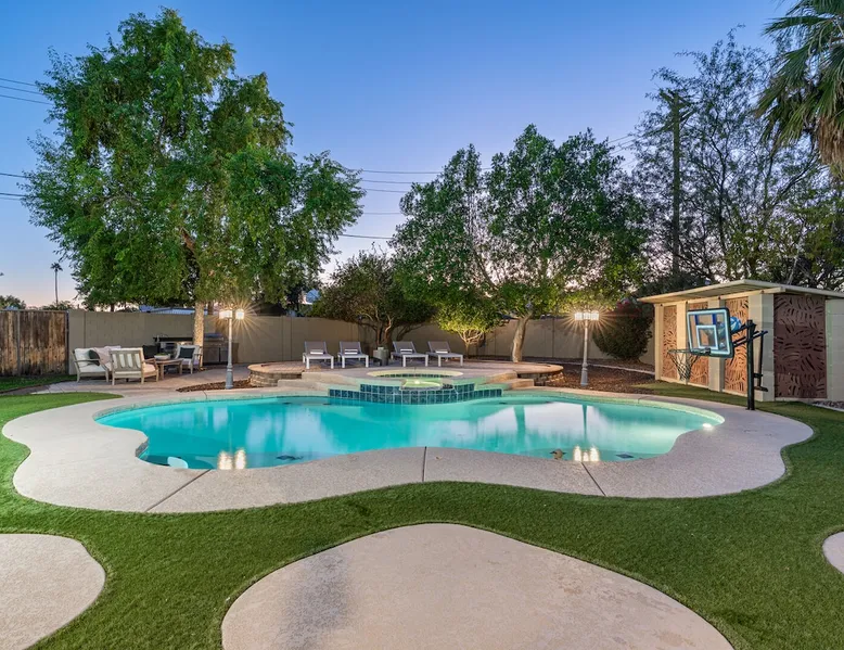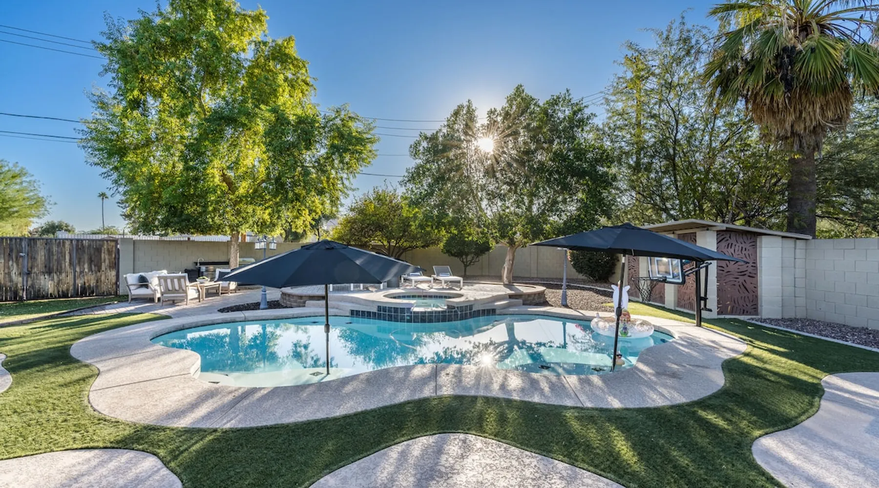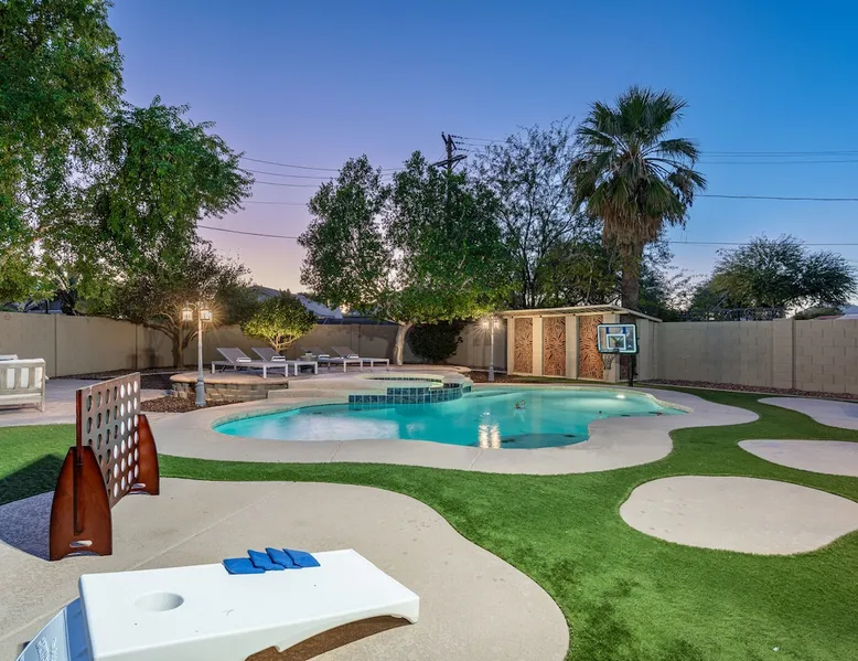 TPT #21587194 STR #2036603 Discover your perfect desert retreat! This beautifully maintained home offers a cozy and modern interior, a fully equipped kitchen, and a private backyard oasis with a sparkling pool and BBQ area. Conveniently located just minutes from Old Town Scottsdale, top-rated golf courses, hiking trails, and vibrant dining and shopping options, it’s the ideal base for your Arizona adventure. The space Property Highlights Spacious Living: Open-concept design with inviting living areas and modern decor. Chef s Kitchen: Fully stocked with premium appliances and everything you need for home-cooked meals. Private Backyard Oasis: Lounge by the sparkling pool, fire up the grill, and soak up the Arizona sun. Cozy Bedrooms: Restful spaces with comfortable beds and fresh linens for a great night s sleep. Entertainment Ready: High-speed Wi-Fi and Smart TVs. Google Nest Video doorbell by the front door. Prime Location Located just minutes from Old Town Scottsdale, world-class golf courses, hiking trails, and premier shopping and dining options. It s the perfect spot to enjoy everything Scottsdale has to offer while retreating to a peaceful, quiet neighborhood. TPT #21587194 STR #2036603 Guest access Easy, fast, hassle free self check-in! Following a simple electronic signature, you will receive check-in information 1 week prior to your stay, and will gain access to this space. Other things to note Have fun, reach out anytime and enjoy your stay with PORTER *Important Note: We want you to enjoy your stay to the fullest, Please be aware amenities may break or not work during your stay and we’ll do our best to accommodate you. May an amenity not work or fail during your stay we will do our best to make it right, and we can refund up to 10% of the affected nights to make it right. You have to let us know at the time of notice so we can do our best to remedy the situation.