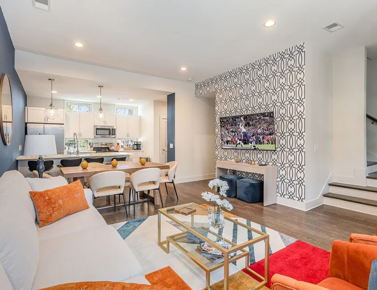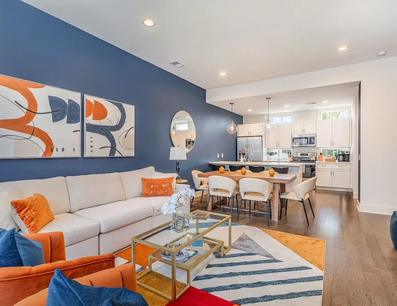 Welcome to Beech Cove, your lively East Nashville retreat—perfect for easy mornings, cozy nights, and unforgettable adventures! Enjoy coffee or cocktails on the private balcony, unwind in the comfortable living area, and let your inner chef shine in the fully equipped kitchen. Just minutes from 12 South’s quirky shops, Broadway’s neon-lit honky-tonks, and the iconic sounds of Music Row, Beech Cove offers the perfect mix of comfort, style, and Nashville energy. The space IF YOU ARE INTERESTED IN THIS PROPERTY, PLEASE READ THE LISTING ENTIRELY. By booking, the guest agrees they have read all the details about the property and agree to our terms and conditions. ⭐ Amenities: - Just 3 minutes from 12 South—explore quirky shops, buzzing cafes, and all the local flavor that makes Nashville so lively! - Only 6 minutes to Broadway, where neon lights, honky-tonks, and live music keep the nights electric and unforgettable. - Sip your morning coffee or toast the evening with cocktails on your private balcony while soaking in the neighborhood vibes. - Lounge, laugh, and relax in the open living area with cozy furnishings and a smart TV—perfect for binge-watching, unwinding, or just hanging out. - Whip up your favorite dishes in the fully equipped kitchen, then dig in and savor every bite in the dining area. - Keep your wardrobe fresh and ready for adventure with the in-unit washer and dryer—because every day in Nashville is a new story! 🛋️ Living Area (2nd Floor): - A bright, open-floor living area that’s perfect for hanging out, laughing, or just kicking back with friends and family. - Plush, cozy furnishings that invite you to curl up with a cocktail, stream your favorite shows, or simply lounge in style. - Smart TV ready for movie nights, binge-worthy series, or streaming your favorite playlists. - Slide effortlessly from the open living area onto your private balcony, where morning coffee, evening cocktails, and fresh air are always within reach. - Coffee table set for snacks, drinks, and all those little moments that make staying in just as fun as going out. 🍽️ Kitchen & Dining (2nd Floor): - Enjoy the fully equipped kitchen, perfect for whipping up everything from midnight snacks to mouthwatering feasts. - Shiny stainless steel appliances that make cooking feel effortless and a little glamorous. - Fridge, dishwasher, oven, 5-burner stove, microwave & toaster—everything you need to whip up anything from quick snacks to feast-worthy meals. - Kitchen island with bar seating for 4—perfect for coffee chats, cocktail clinks, or cooking with friends. - Enjoy the dining area for 6, perfect for sharing stories, savoring tasty bites, and making every meal memorable. - Drip coffee maker with coffee—your trusty sidekick for energizing mornings or late-night fuel. 🛌 Bedrooms: - Primary Bedroom (3rd Floor): King bed with a smart TV, closet, and en-suite bathroom - 2nd Bedroom (3rd Floor): 2 Queen bed with a smart TV, walk-in closet, and en-suite bathroom - 3rd Bedroom (1st Floor): Full-over-Full bunk bed with a smart TV, walk-in closet, and en-suite bathroom 🛁 Bathrooms: - Primary Bathroom (3rd Floor): Single vanity with a shower/tub combo - 2nd Bathroom (3rd Floor): Dual vanity with a stand-in shower - 3rd Bathroom (1st Floor): Single vanity with a shower/tub combo - 4th Bathroom (2nd Floor): Single vanity with a shower/tub combo 🚗 Parking: - 1 dedicated parking spot right outside the garage - Additional street parking is available 🗺️ Explore the Area: - Walking Distance - 3 min walk: 8th & Roast 3 min walk: Zanies Comedy Night Club 4 min walk: Love Peace & Pho 6 min walk: The Smiling Elephant 6 min walk: The Urban Juicer 9 min walk: Hattie B's Hot Chicken 12 min walk: Baked on 8th 15 min walk: The Cookery - Driving Distance - Estimated drive times do not account for traffic: 3 mins: Jeni's Splendid Ice Creams 3 mins: 12 South 4 mins: Frothy Monkey 4 mins: Geodis Park 4 mins: The Filling Station 5 mins: Vanderbilt University Medical Center 5 mins: RCA Studio 5 mins: Music Row 5 mins: The Blue Room at Third Man Records 5 mins: Monroe Carell Jr. Children's Hospital at Vanderbilt 5 mins: SOBRO 5 mins: Edley's Bar-B-Que 5 mins: Bongo Java 5 mins: Belmont Mansion 5 mins: Belmont-Hillsboro 5 mins: Burger Up 6 mins: Broadway 6 mins: The Gulch 6 mins: Music City Center 6 mins: Sevier Park 7 mins: Bridgestone Arena - Nashville Predators 7 mins: Country Music Hall of Fame and Museum 8 mins: Vanderbilt University 8 mins: Centennial Park 8 mins: The Parthenon 9 mins: Midtown 11 mins: McCabe Golf Course 11 mins: Nissan Stadium - Tennessee Titans 13 mins: Nashville Zoo 19 mins: Grand Ole Opry Add Ons: - Air Mattresses ($50 - 1 per reservation) - GoodNight Stay is partnered with the best baby equipment rental service for additional equipment! Please inquire if you'd like to take advantage of this amenity using our special link. Please note: This is an add-on and not included in your reservation. Additional House Rules: - Booking guests must be at least 21 years old. - Same-day move-ins shall not be honored after 10 am Arizona Time. - GoodNight Stay LLC does not allow local residents to book homes. A local resident is defined as any guest whose primary residence is located within two (2) hours of the rented property. - All guests with a confirmed criminal record shall be declined and asked to cancel the booking at their own expense. - The guest agrees to provide identity authentication via a third-party platform operating for GoodNight Stay. They will authenticate the name, address, phone number, and photo ID verification. If this is not provided within 48 hours of booking, GoodNight Stay has the right to cancel the booking without penalty. - Maximum of 1 pet under 35lbs each, $100 fee per pet required. - All listed amenities are to be used at the guest’s risk. The homeowner and GoodNight Stay are not liable in any way for the risk, danger, injury, or damages caused to the ot