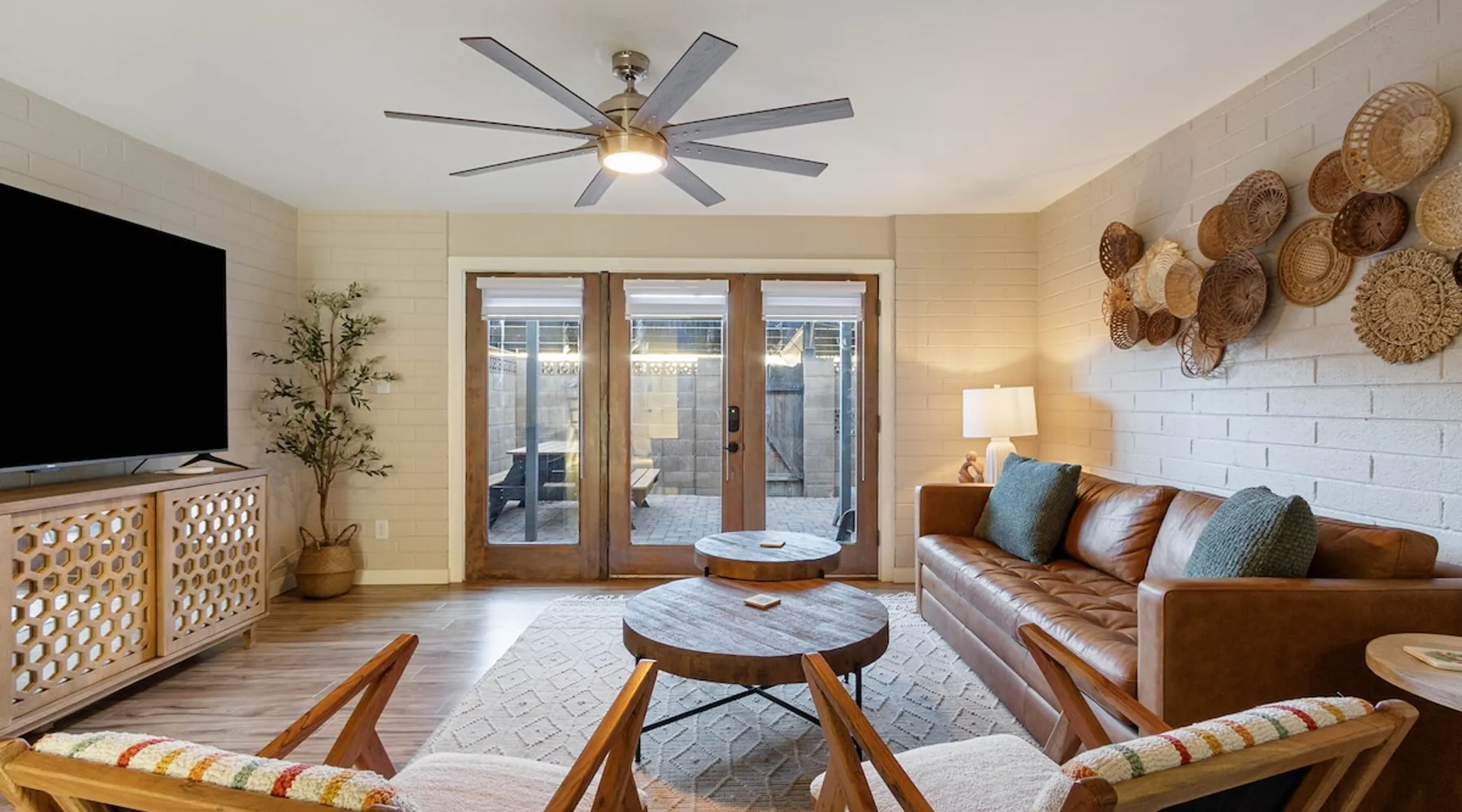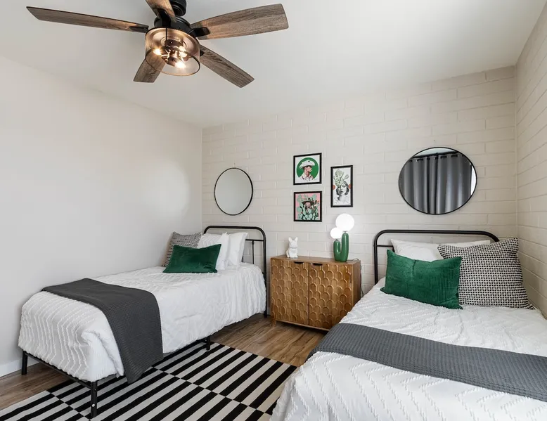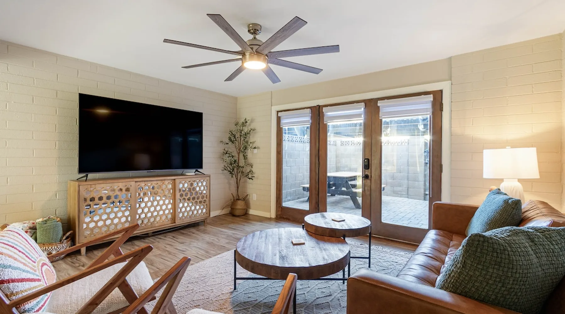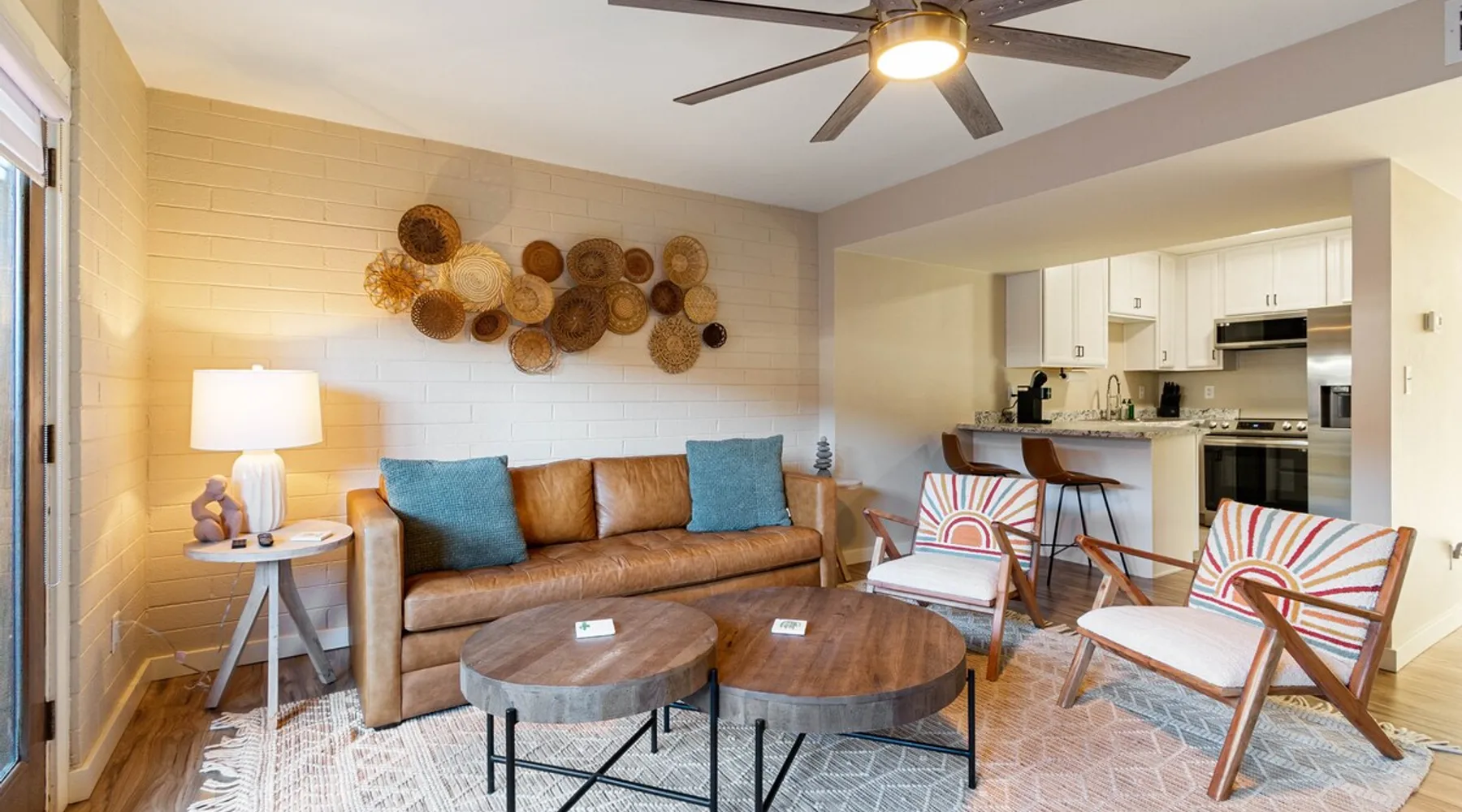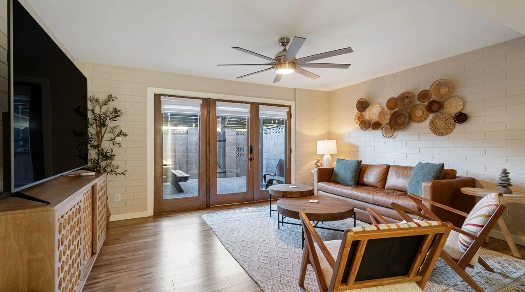 Old Town Charm- Walk to Old Town, Pool + Pet Friendly! Arizona TPT #21601354 The space Scottsdale Old Town Charm is a wonderful fully- remodeled townhome with lots of features and amenities making it the perfect choice for your Scottsdale getaway. You’ll be situated in the popular Old Town Scottsdale area, putting you within walking distance to many popular attractions and exciting activities. This two-story townhome features 1,200 square feet with two bedrooms and one and a half bathrooms to sleep up to six guests. You’ll enter through the front door and down the hallway, stepping into the living room and kitchen spaces. Living Room: This room offers a comfortable queen sleeper sofa, a Smart TV and access to the spacious back patio. Kitchen: Fully equipped, the kitchen features stainless steel appliances including a glass top stove and a spacious breakfast bar with seating for two. Bedrooms/Bathrooms: Bedroom 1 (upper level) — King-size bed, 50” Smart TV and a private patio. Bedroom 2 (upper level) — Two twin beds Bathroom 1 (upper level) — Full shared bathroom with tub/shower combo Half bath on the main level Outdoor spaces: Enjoy spending time outside on the patio featuring plenty of seating and a picnic table to enjoy meals outdoors. Community amenities: Take advantage of the community pool. Internet Access: High-speed Wi-Fi Internet Laundry: Stackable washer and dryer Parking: One assigned covered parking spot with additional street parking. Air conditioning: Yes, central Pets: Yes, one pet allowed with a $100 non-refundable pet fee Security cameras: No Distances: Old Town Scottsdale –1.1 miles OdySea Aquarium — 6.2 miles Scottsdale Waterfront & Fashion Square Mall – 1.6 miles Scottsdale Museum of Contemporary Art — 1.2 miles Talking Stick Golf Club – 35.8 miles Scottsdale Airport — 13.5 miles Please note: Pursuant to ARS § 32-2121 Property Manager does not solicit, arrange or accept reservations or monies, for occupancies of greater than 31 days. Arizona TPT #21601354 City of Scottsdale Permit #2037757 Guest access Guest has full access to the property and its amenities including one covered parking space and street parking, laundry room with washer/dryer, outdoor patio seating area, and central air conditioning. There is also a community pool for guest use.