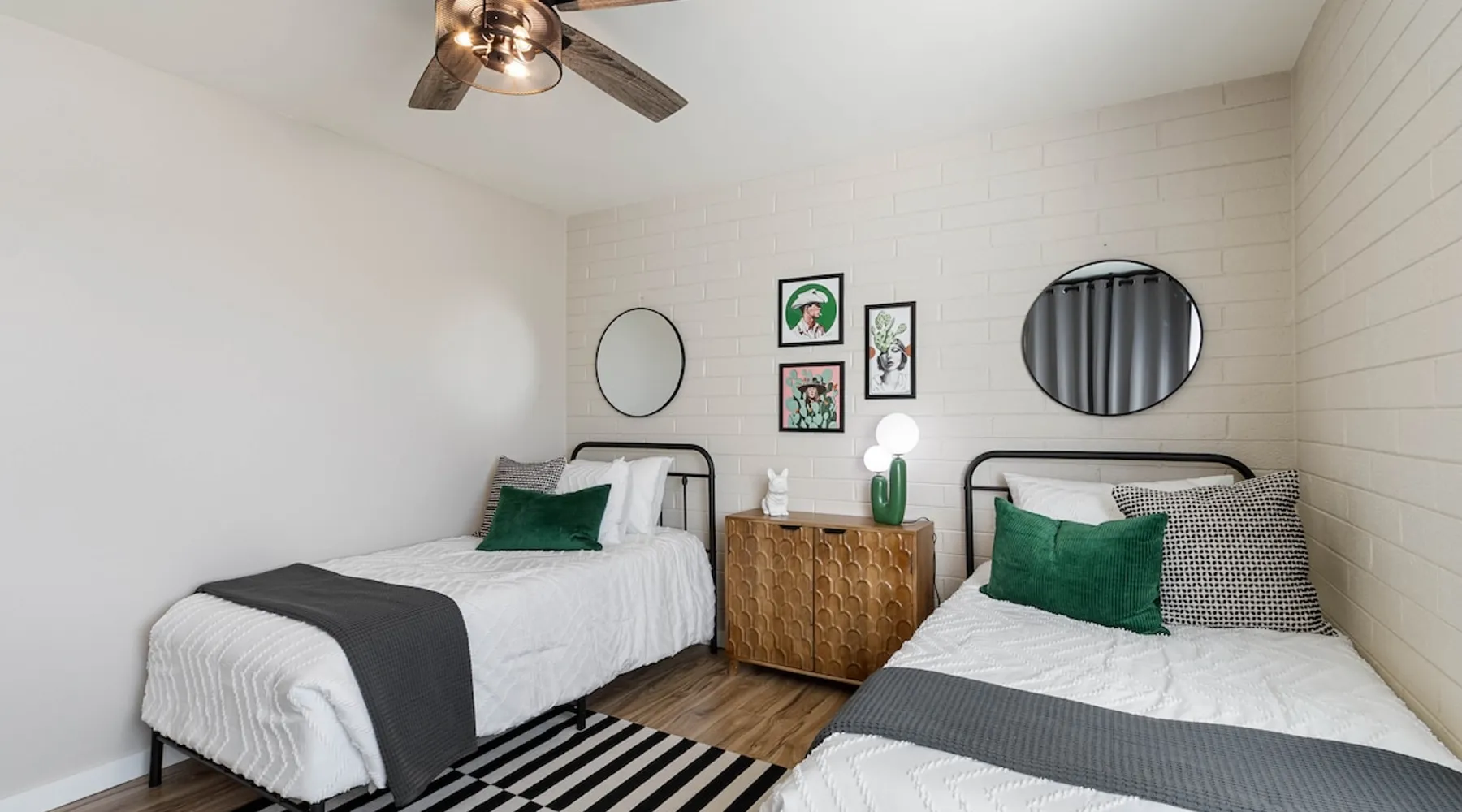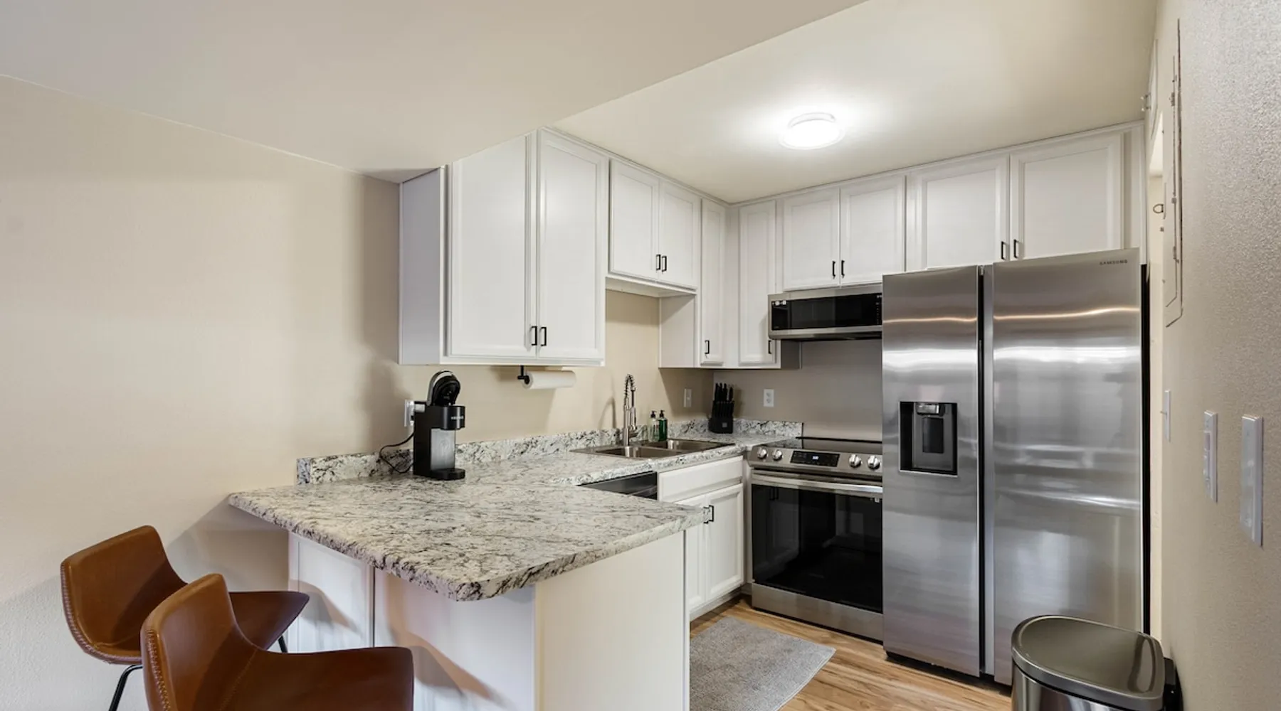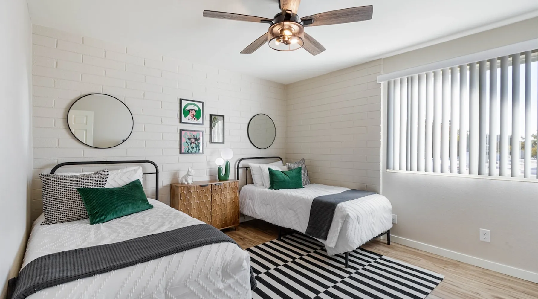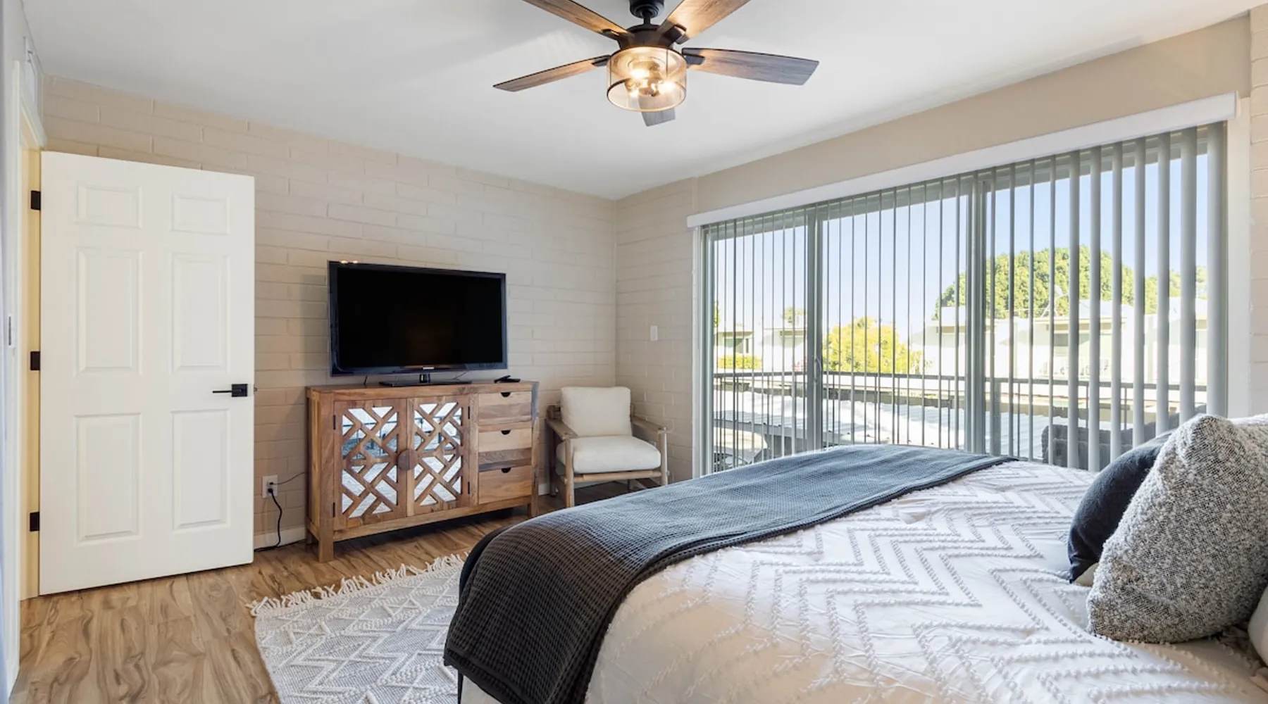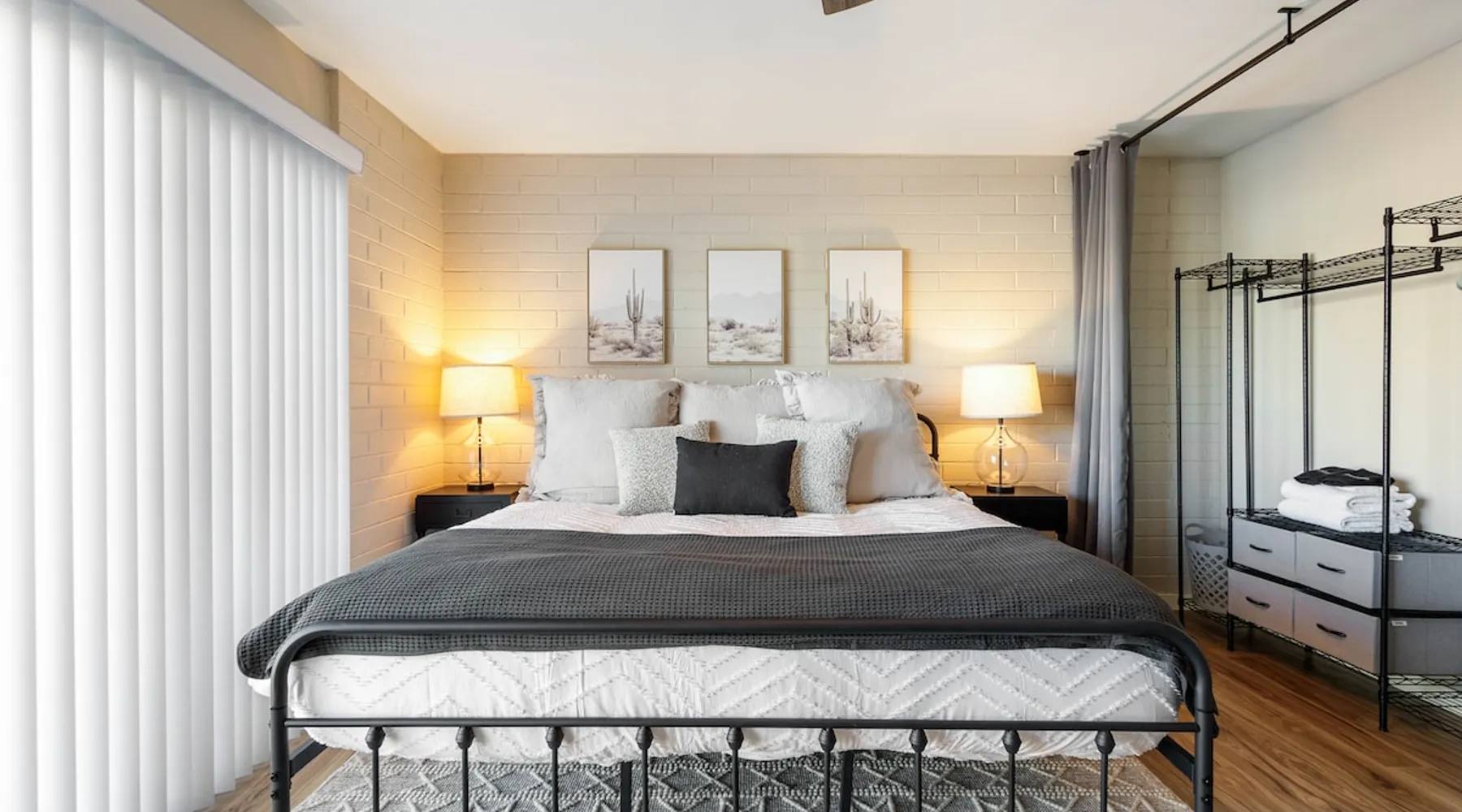 Old Town Charm- Walk to Old Town, Pool + Pet Friendly! Arizona TPT #21601354 The space Scottsdale Old Town Charm is a wonderful fully- remodeled townhome with lots of features and amenities making it the perfect choice for your Scottsdale getaway. You’ll be situated in the popular Old Town Scottsdale area, putting you within walking distance to many popular attractions and exciting activities. This two-story townhome features 1,200 square feet with two bedrooms and one and a half bathrooms to sleep up to six guests. You’ll enter through the front door and down the hallway, stepping into the living room and kitchen spaces. Living Room: This room offers a comfortable queen sleeper sofa, a Smart TV and access to the spacious back patio. Kitchen: Fully equipped, the kitchen features stainless steel appliances including a glass top stove and a spacious breakfast bar with seating for two. Bedrooms/Bathrooms: Bedroom 1 (upper level) — King-size bed, 50” Smart TV and a private patio. Bedroom 2 (upper level) — Two twin beds Bathroom 1 (upper level) — Full shared bathroom with tub/shower combo Half bath on the main level Outdoor spaces: Enjoy spending time outside on the patio featuring plenty of seating and a picnic table to enjoy meals outdoors. Community amenities: Take advantage of the community pool. Internet Access: High-speed Wi-Fi Internet Laundry: Stackable washer and dryer Parking: One assigned covered parking spot with additional street parking. Air conditioning: Yes, central Pets: Yes, one pet allowed with a $100 non-refundable pet fee Security cameras: No Distances: Old Town Scottsdale –1.1 miles OdySea Aquarium — 6.2 miles Scottsdale Waterfront & Fashion Square Mall – 1.6 miles Scottsdale Museum of Contemporary Art — 1.2 miles Talking Stick Golf Club – 35.8 miles Scottsdale Airport — 13.5 miles Please note: Pursuant to ARS § 32-2121 Property Manager does not solicit, arrange or accept reservations or monies, for occupancies of greater than 31 days. Arizona TPT #21601354 City of Scottsdale Permit #2037757 Guest access Guest has full access to the property and its amenities including one covered parking space and street parking, laundry room with washer/dryer, outdoor patio seating area, and central air conditioning. There is also a community pool for guest use.