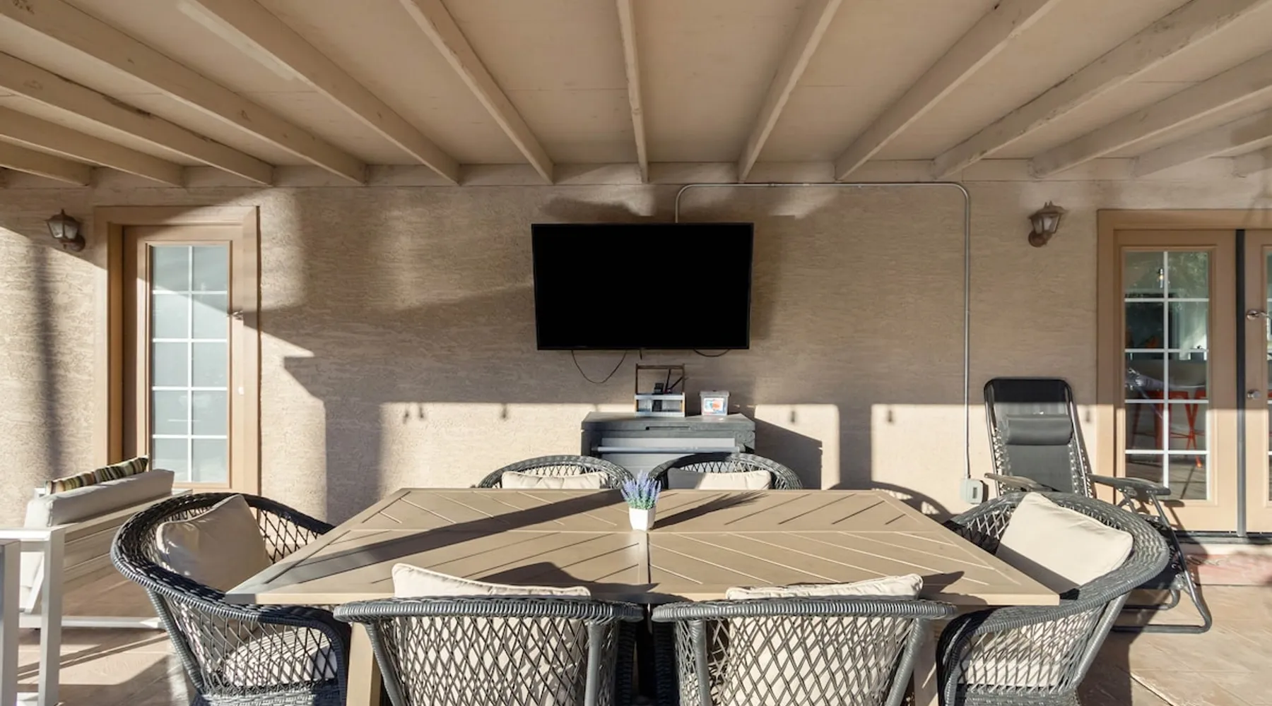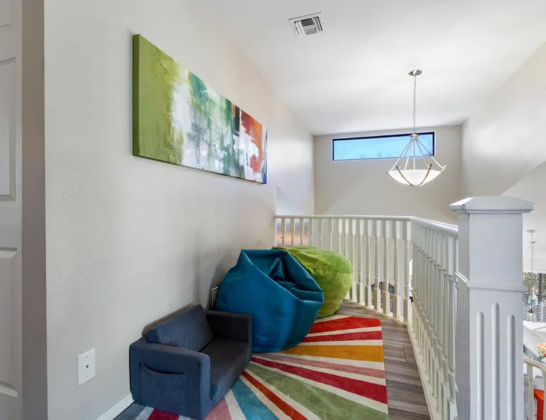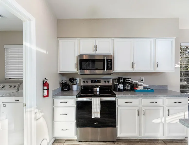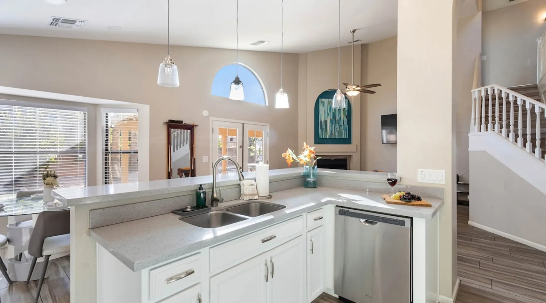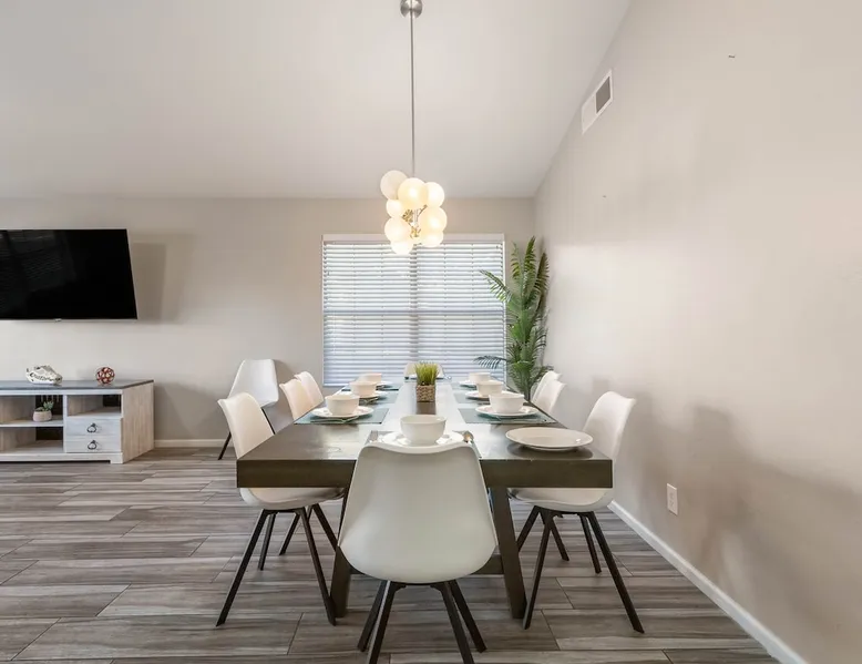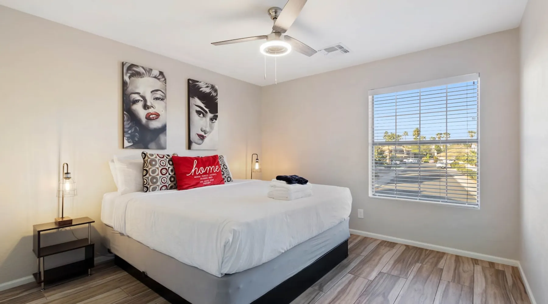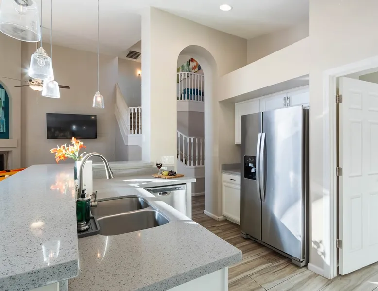 Luxury Paradise Palms Home | Pool, Hot Tub, Putting Green & More! The space This stunning and vibrant Paradise Palms property in Scottsdale is the ideal choice for your next visit! Located in a peaceful neighborhood at the heart of North Scottsdale, you'll be conveniently close to popular attractions and activities such as Kierland Commons and Scottsdale Quarter. This two-story home offers a spacious 2,639 square feet of living space, with five bedrooms and two and a half bathrooms to easily accommodate up to 16 guests — a terrific property for those with larger groups. After stepping through the front door, you will find yourself in the spacious front living room and dining room. After a few more steps you will then be in the main great room, which offers the pool table room and kitchen area. Living Room: This room offers contemporary furnishings including a spacious sectional and colorful accent chairs and a Smart TV. Dining Room: Next to the living room, the dining area offers seating for eight guests. Kitchen: Around the corner you will find the kitchen. The kitchen is fully equipped with stainless steel appliances and stocked with everything needed to prepare delicious meals for your group! The spacious bar top offers bar stools for six, making it a perfect place to gather! Game Room: Enjoy some entertainment on the Smart TV while playing a game on the pool table- making this spot an ideal hang out! Bedrooms/Bathrooms: Master Suite (main level)— King bed, Smart TV, desk area and private access to the backyard. The en suite bathroom offers two sinks and a spacious shower Bedroom 2/Bunk Room (upper level) — Two Twin over Full bunk beds and One Twin over Twin bunk bed. Bedroom 3 (upper level) – King size bed and access to shared bathroom Bedroom 4 (upper level) – King size bed and access to shared bathroom Bedroom 5 (upper level) – King size bed, Smart TV and access to shared bathroom Bathroom 2 (upper level) – Full shared bathroom with dual sink and tub/shoer combo Half bathroom on main level Outdoor spaces: The backyard space is spacious and offers endless fun! Plenty of outdoor seating under the covered patio where you can enjoy an outside meal or enjoy some entertainment on the Smart TV. Take a dip in the pool (not heated) or relax in the above ground hot tub. Enjoy a book on the hammock or sit next to the firepot with friends. Plenty of outdoor games are available including a putting green, bocce ball court and corn hole. There’s also a propane BBQ grill for grilling up your favorites. Internet Access: High-speed Wi-Fi Internet Entertainment: Smart TVs with cable provided by owner Laundry: Full size washer and dryer in the laundry room Pool: Yes, not heated. 8 feet diving pool. Hot Tub: Yes, private above ground Parking: Two car garage, with additional driveway parking for up to two vehicles. Air conditioning: Yes, central Pets: Yes, Two dogs allowed with a $100 non-refundable fee per dog Security cameras: No Cameras Neighborhood quiet hours are from 10 p.m. to 7 a.m. and are enforced by Scottsdale city ordinances. Thank you for respecting the neighbors. Pursuant to ARS § 32-2121 Property Manager does not solicit, arrange or accept reservations or monies, for occupancies of greater than thirty-one days. Distances: Old Town Scottsdale – 12 miles OdySea Aquarium — 11 miles Scottsdale Waterfront & Fashion Square Mall – 11.8 miles McCormick-Stillman Railroad Park – 9.3miles Kireland Commons- 3.1 miles Scottsdale Airport — 3.8 miles CDC cleanings are performed using checklists following all CDC cleaning guidelines. Arizona TPT License # 21343217 City of Phoenix Permit #STR-2025-002298 Guest access Guest has full access to the property and its amenities including 2 car garage and driveway parking, laundry room with washer/dryer, a private yard with an in-ground pool, hot tub, putting green, BBQ grill, outdoor patio seating area and central air conditioning.