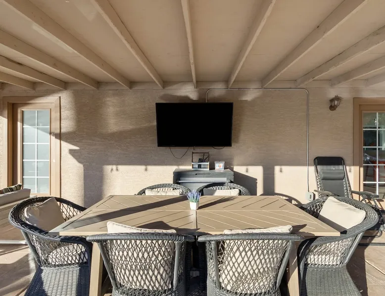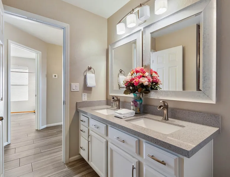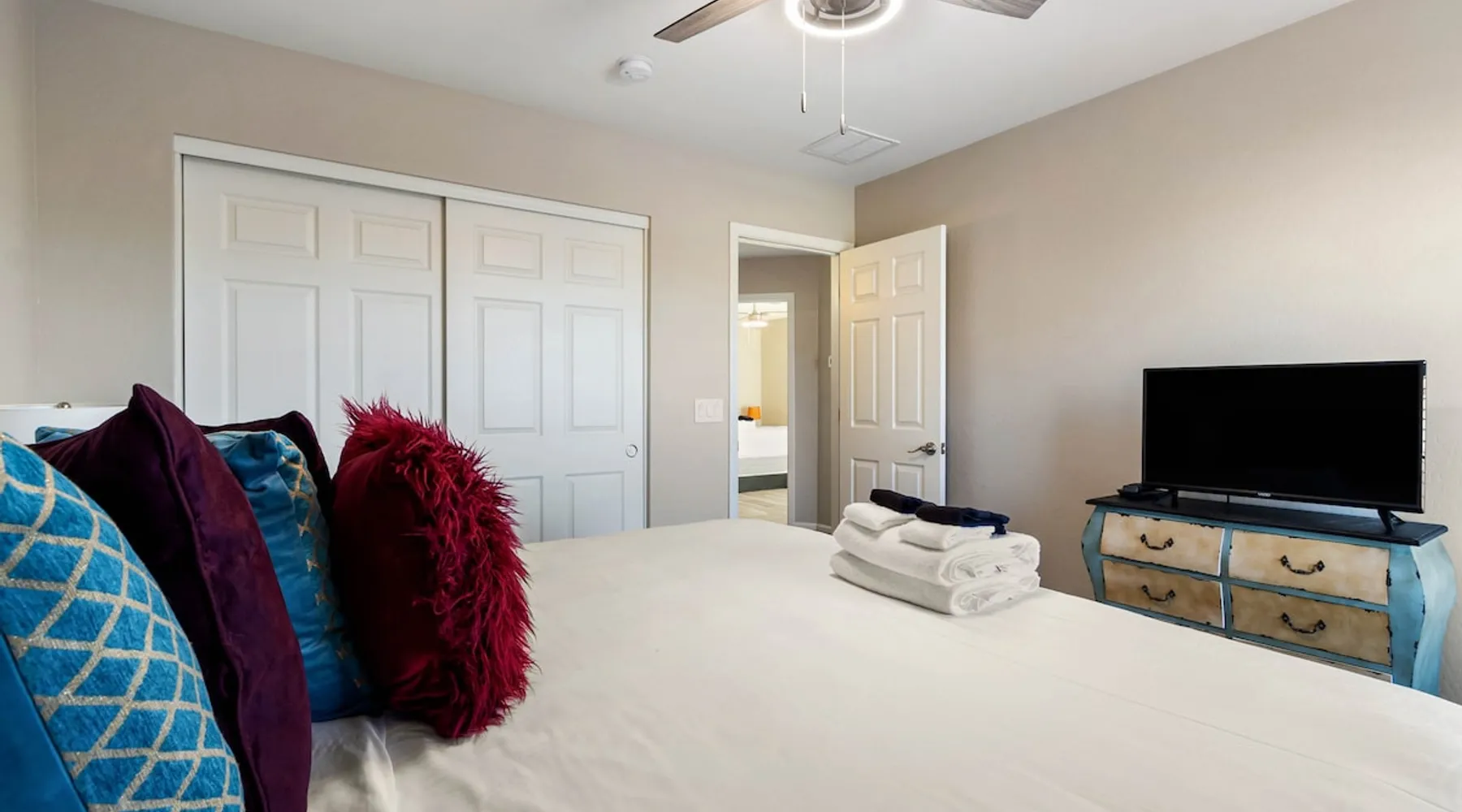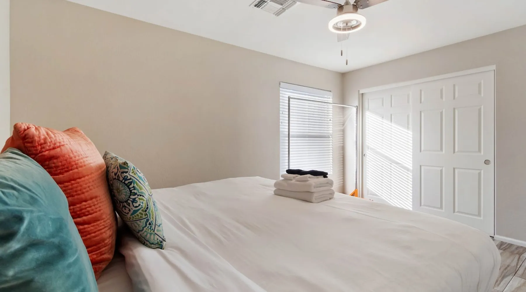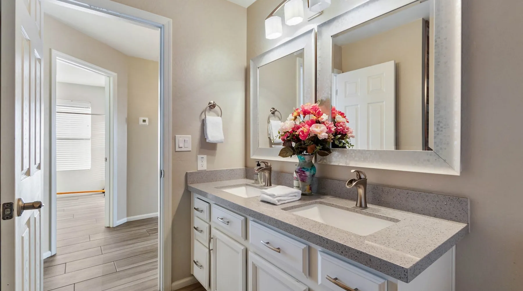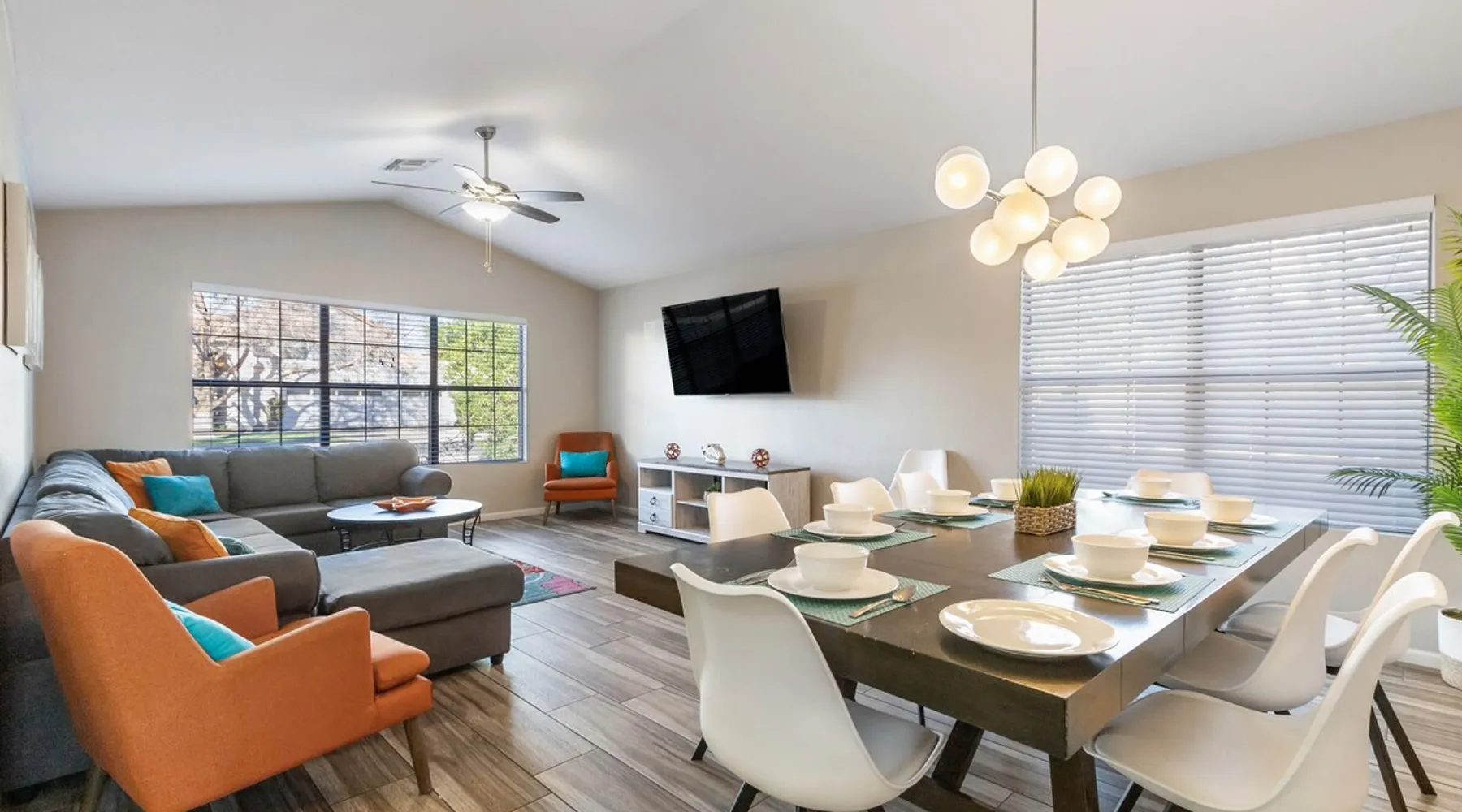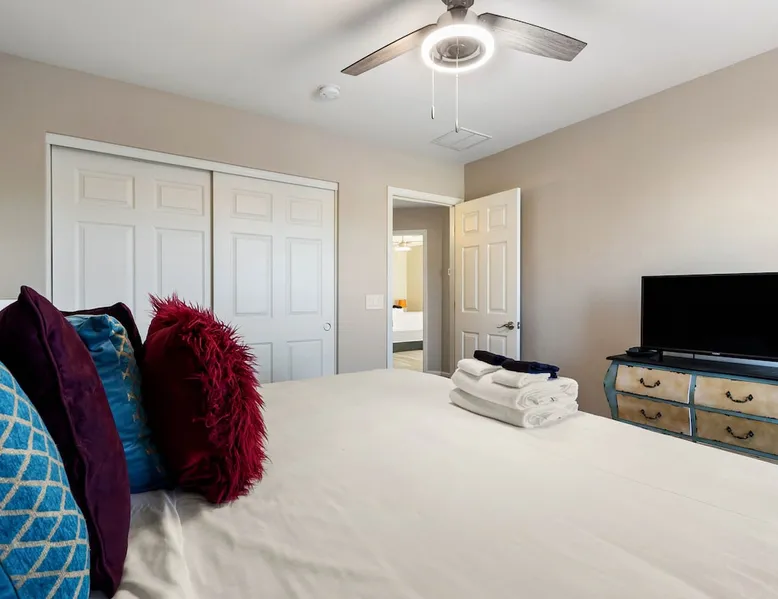 Luxury Paradise Palms Home | Pool, Hot Tub, Putting Green & More! The space This stunning and vibrant Paradise Palms property in Scottsdale is the ideal choice for your next visit! Located in a peaceful neighborhood at the heart of North Scottsdale, you'll be conveniently close to popular attractions and activities such as Kierland Commons and Scottsdale Quarter. This two-story home offers a spacious 2,639 square feet of living space, with five bedrooms and two and a half bathrooms to easily accommodate up to 16 guests — a terrific property for those with larger groups. After stepping through the front door, you will find yourself in the spacious front living room and dining room. After a few more steps you will then be in the main great room, which offers the pool table room and kitchen area. Living Room: This room offers contemporary furnishings including a spacious sectional and colorful accent chairs and a Smart TV. Dining Room: Next to the living room, the dining area offers seating for eight guests. Kitchen: Around the corner you will find the kitchen. The kitchen is fully equipped with stainless steel appliances and stocked with everything needed to prepare delicious meals for your group! The spacious bar top offers bar stools for six, making it a perfect place to gather! Game Room: Enjoy some entertainment on the Smart TV while playing a game on the pool table- making this spot an ideal hang out! Bedrooms/Bathrooms: Master Suite (main level)— King bed, Smart TV, desk area and private access to the backyard. The en suite bathroom offers two sinks and a spacious shower Bedroom 2/Bunk Room (upper level) — Two Twin over Full bunk beds and One Twin over Twin bunk bed. Bedroom 3 (upper level) – King size bed and access to shared bathroom Bedroom 4 (upper level) – King size bed and access to shared bathroom Bedroom 5 (upper level) – King size bed, Smart TV and access to shared bathroom Bathroom 2 (upper level) – Full shared bathroom with dual sink and tub/shoer combo Half bathroom on main level Outdoor spaces: The backyard space is spacious and offers endless fun! Plenty of outdoor seating under the covered patio where you can enjoy an outside meal or enjoy some entertainment on the Smart TV. Take a dip in the pool (not heated) or relax in the above ground hot tub. Enjoy a book on the hammock or sit next to the firepot with friends. Plenty of outdoor games are available including a putting green, bocce ball court and corn hole. There’s also a propane BBQ grill for grilling up your favorites. Internet Access: High-speed Wi-Fi Internet Entertainment: Smart TVs with cable provided by owner Laundry: Full size washer and dryer in the laundry room Pool: Yes, not heated. 8 feet diving pool. Hot Tub: Yes, private above ground Parking: Two car garage, with additional driveway parking for up to two vehicles. Air conditioning: Yes, central Pets: Yes, Two dogs allowed with a $100 non-refundable fee per dog Security cameras: No Cameras Neighborhood quiet hours are from 10 p.m. to 7 a.m. and are enforced by Scottsdale city ordinances. Thank you for respecting the neighbors. Pursuant to ARS § 32-2121 Property Manager does not solicit, arrange or accept reservations or monies, for occupancies of greater than thirty-one days. Distances: Old Town Scottsdale – 12 miles OdySea Aquarium — 11 miles Scottsdale Waterfront & Fashion Square Mall – 11.8 miles McCormick-Stillman Railroad Park – 9.3miles Kireland Commons- 3.1 miles Scottsdale Airport — 3.8 miles CDC cleanings are performed using checklists following all CDC cleaning guidelines. Arizona TPT License # 21343217 City of Phoenix Permit #STR-2025-002298 Guest access Guest has full access to the property and its amenities including 2 car garage and driveway parking, laundry room with washer/dryer, a private yard with an in-ground pool, hot tub, putting green, BBQ grill, outdoor patio seating area and central air conditioning.