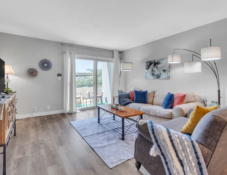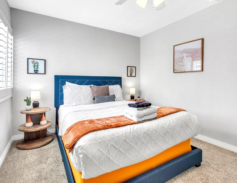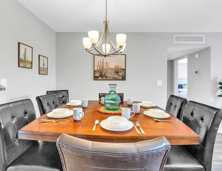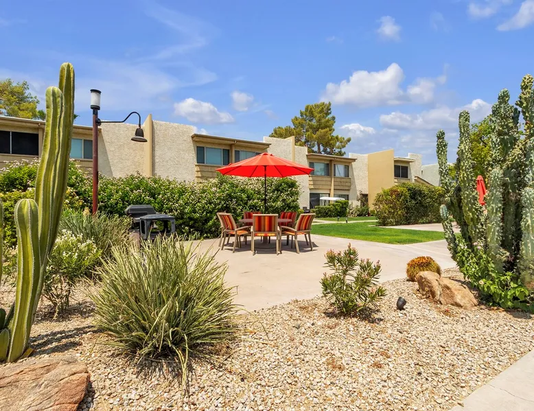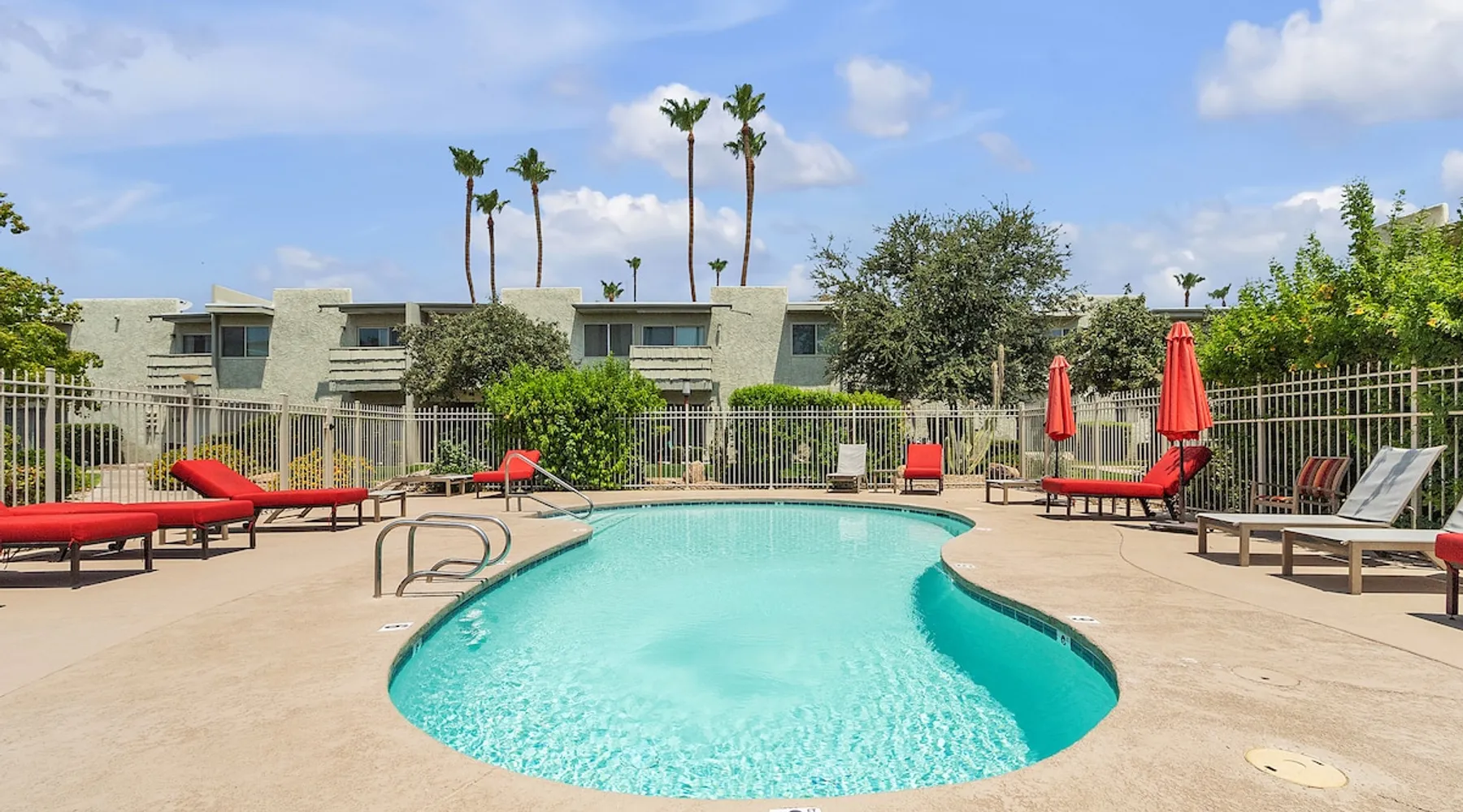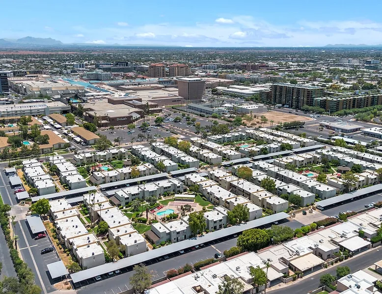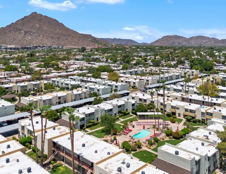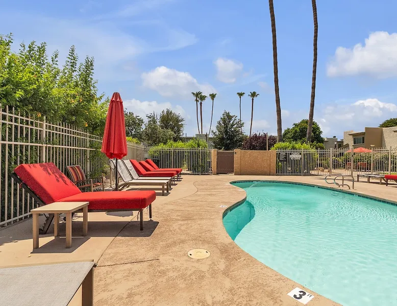 Camelback 469- 2B, Community Pool + By Old Town! The space Scottsdale Camelback 469 places you in the heart of Old Town Scottsdale, just across from the famous Scottsdale Fashion Square Mall. You'll also be conveniently near many other Scottsdale amenities and activities. This ground-floor condominium spans 1,023 square feet, featuring two bedrooms and two bathrooms, accommodating up to four guests. Upon entering the condo through the front door, you'll find yourself in the main living area, which includes the living room, kitchen, and dining area—all accented with wood floors. Living Room: Furnished in a contemporary style, it includes a comfortable couch, a Smart TV, and access to the back patio. Kitchen: Fully equipped with stainless steel appliances and all the essentials to prepare a delicious meal. Dining Room: The dining room has seating for six guests. Bedrooms/Bathrooms: Master Bedroom— Features a king-size bed and an ensuite bathroom with a spacious vanity and a walk-in shower. Bedrooms 2 — Includes a queen-size bed and a 43” Smart TV, with access to the shared full bathroom that has a tub/shower combo. Outdoor patio spaces: Enjoy the charming patio, which offers outdoor seating. Community Amenities: Enjoy the 4 heated community pools (opened year-round), shuffleboard courts, propane BBQ grills and lots of green grass areas. Internet Access: Wireless Internet Entertainment: Smart TVs in living room and second bedroom. Laundry: Community laundry, there is a fee to use the machines. Parking: One covered assigned parking space, with additional spaces available on a first-come/first served basis. Air conditioning: Yes, central Pets: Yes, 1 Dog allowed with $100 non-refundable pet fee Security cameras: No Distances: Scottsdale Fashion Square — Across the street Scottsdale Waterfront – 0.6 miles Papago Golf Club — 5.8 miles Papago Park — 5.1 mile Desert Botanical Gardens/Phoenix Zoo – 4.2 miles OdySea Aquarium — 6.5 miles Echo Canyon Trailhead – 4.2 miles McCormick-Stillman Railroad Park – 3.9 miles Please note: Pursuant to ARS § 32-2121 Property Manager does not solicit, arrange or accept reservations or monies, for occupancies of greater than 31 days. Arizona TPT License #: 21400089 City of Scottsdale Permit #: 2026087 Guest access Guest has full access to the property and its amenities including carport parking for one car and unassigned outdoor parking for an additional car, community laundry room, community heated pool, and central air conditioning.
