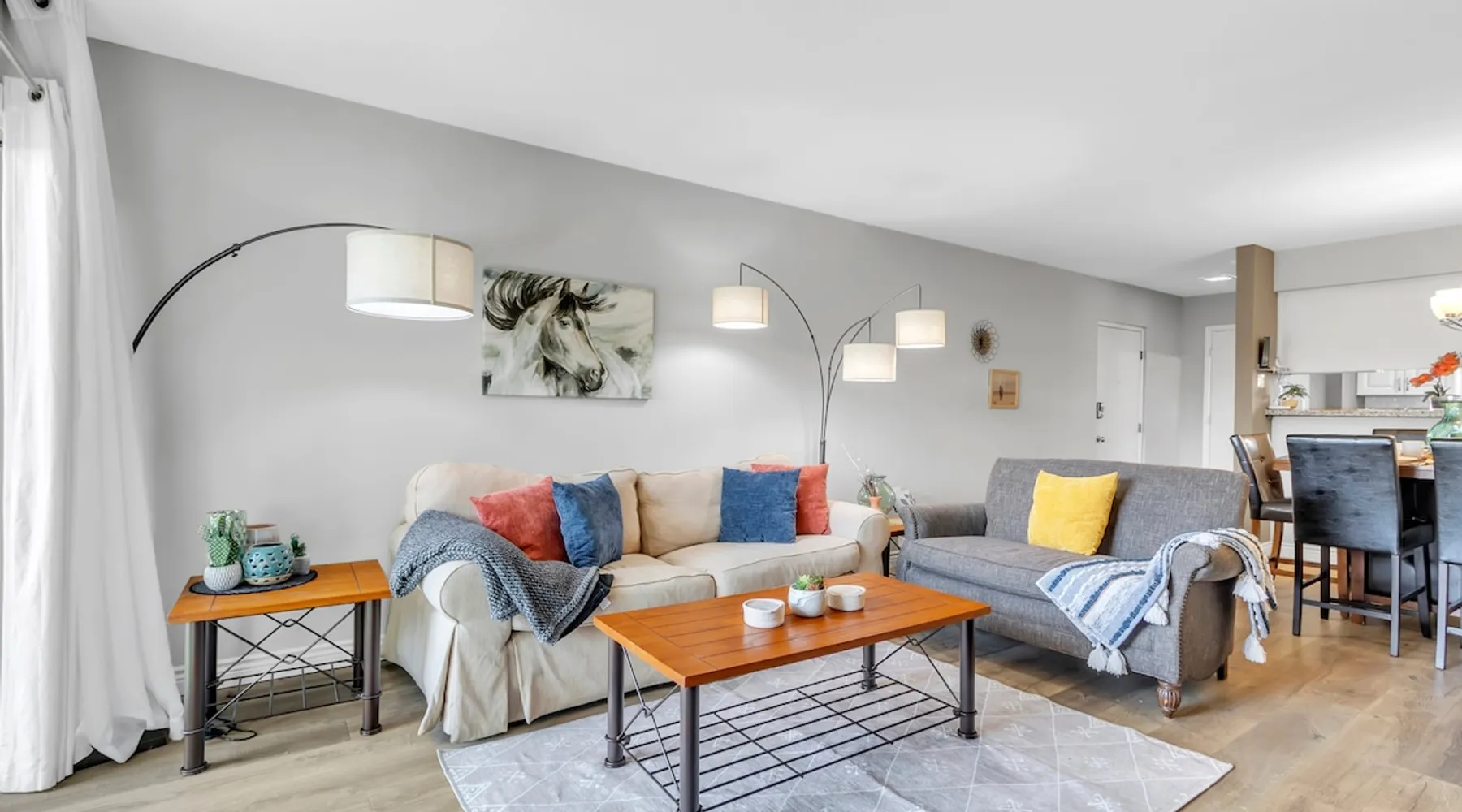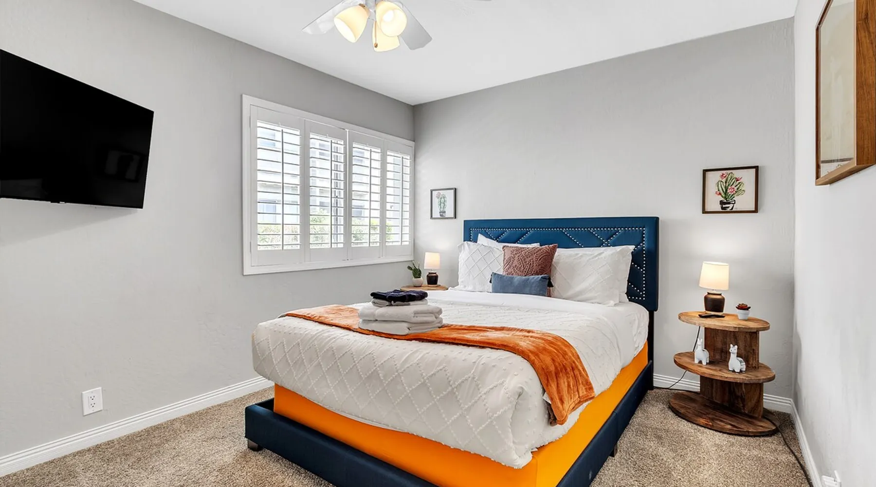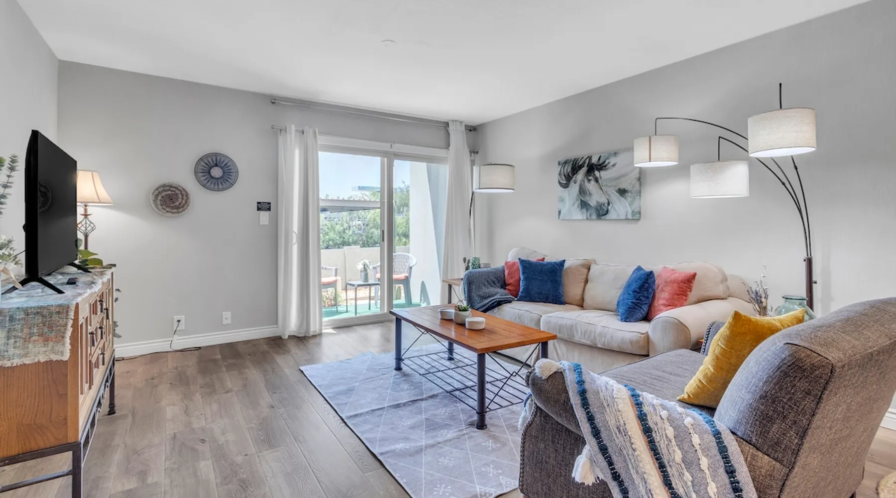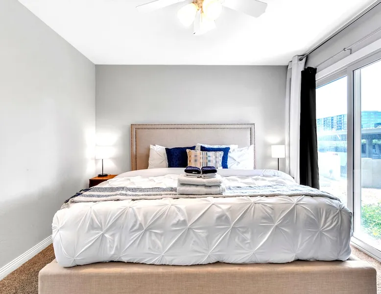 Camelback 469- 2B, Community Pool + By Old Town! The space Scottsdale Camelback 469 places you in the heart of Old Town Scottsdale, just across from the famous Scottsdale Fashion Square Mall. You'll also be conveniently near many other Scottsdale amenities and activities. This ground-floor condominium spans 1,023 square feet, featuring two bedrooms and two bathrooms, accommodating up to four guests. Upon entering the condo through the front door, you'll find yourself in the main living area, which includes the living room, kitchen, and dining area—all accented with wood floors. Living Room: Furnished in a contemporary style, it includes a comfortable couch, a Smart TV, and access to the back patio. Kitchen: Fully equipped with stainless steel appliances and all the essentials to prepare a delicious meal. Dining Room: The dining room has seating for six guests. Bedrooms/Bathrooms: Master Bedroom— Features a king-size bed and an ensuite bathroom with a spacious vanity and a walk-in shower. Bedrooms 2 — Includes a queen-size bed and a 43” Smart TV, with access to the shared full bathroom that has a tub/shower combo. Outdoor patio spaces: Enjoy the charming patio, which offers outdoor seating. Community Amenities: Enjoy the 4 heated community pools (opened year-round), shuffleboard courts, propane BBQ grills and lots of green grass areas. Internet Access: Wireless Internet Entertainment: Smart TVs in living room and second bedroom. Laundry: Community laundry, there is a fee to use the machines. Parking: One covered assigned parking space, with additional spaces available on a first-come/first served basis. Air conditioning: Yes, central Pets: Yes, 1 Dog allowed with $100 non-refundable pet fee Security cameras: No Distances: Scottsdale Fashion Square — Across the street Scottsdale Waterfront – 0.6 miles Papago Golf Club — 5.8 miles Papago Park — 5.1 mile Desert Botanical Gardens/Phoenix Zoo – 4.2 miles OdySea Aquarium — 6.5 miles Echo Canyon Trailhead – 4.2 miles McCormick-Stillman Railroad Park – 3.9 miles Please note: Pursuant to ARS § 32-2121 Property Manager does not solicit, arrange or accept reservations or monies, for occupancies of greater than 31 days. Arizona TPT License #: 21400089 City of Scottsdale Permit #: 2026087 Guest access Guest has full access to the property and its amenities including carport parking for one car and unassigned outdoor parking for an additional car, community laundry room, community heated pool, and central air conditioning.