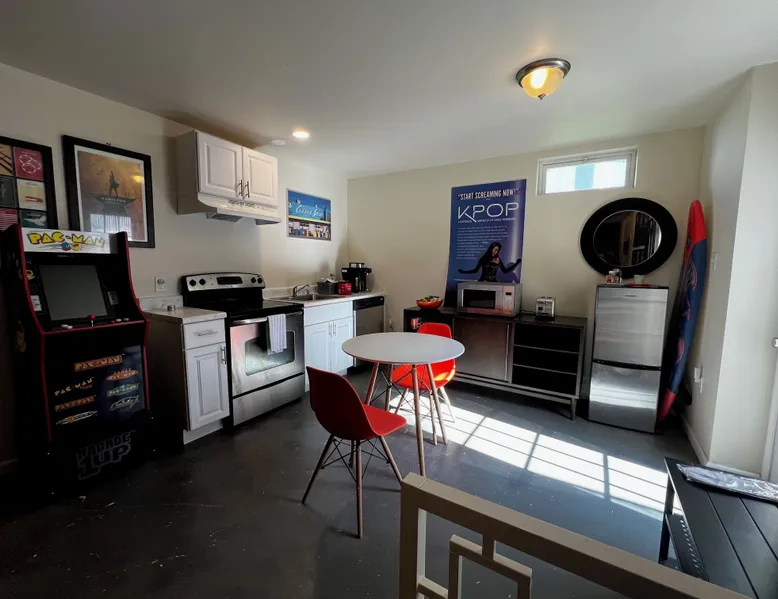 This space has everything you need. It has a private entrance to your 1 BR, 1 BA, WD and kitchen. Centrally located in Maryland. 20-30 minutes to Baltimore, DC and Annapolis. MARC Odenton train to Union Station or Penn Station (Baltimore) is just 10 minutes away. BWI is just one stop. A stone's throw to Fort Meade, USNA and NSA. Plenty of entertainment w/ WIFI, TVs, and arcade games. A fire pit is available if you prefer to hang out in the backyard. Looking forward to hosting you soon.