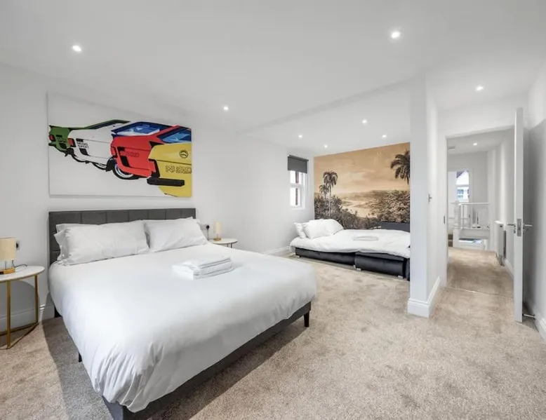 Modern Comforts: Brand New Cricklewood Zone 2 Modern Home in London offers free WiFi, a washing machine, and a fully equipped kitchen with a refrigerator, microwave, oven, and stovetop. The property includes two bathrooms and a comfortable living room. Convenient Location: Located 16 mi from London Heathrow Airport, the holiday home is near attractions such as Lord's Cricket Ground (3.1 mi), Portobello Road Market and London Zoo (3.7 mi each), and Wembley Stadium and London Designer Outlet (4.3 mi each). Additional Amenities: Guests can enjoy a private entrance, TV, hairdryer, and paid private parking. Reception staff speak English and French. The well-equipped kitchen has a stovetop, a refrigerator, an oven and a microwave. The holiday home has a flat-screen TV, a washing machine, a private entrance, as well as heating. The unit has 3 beds.