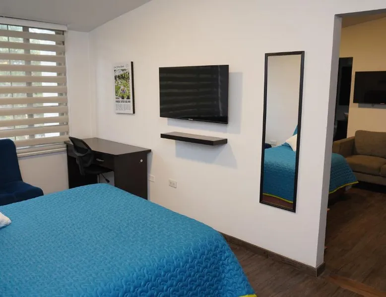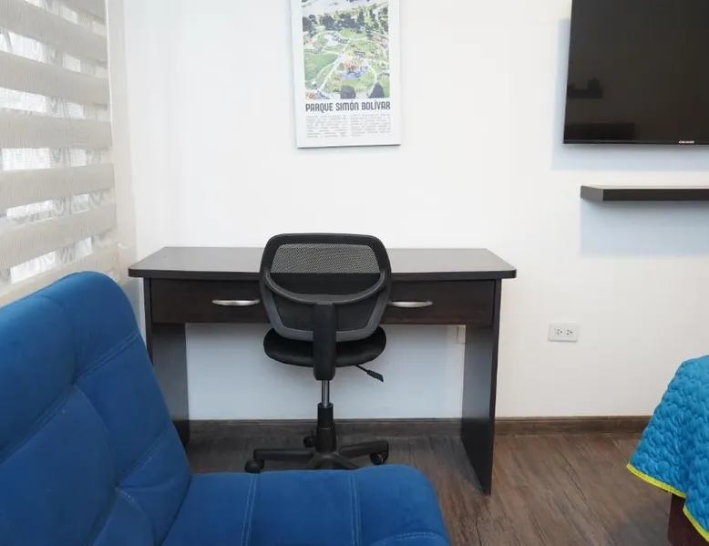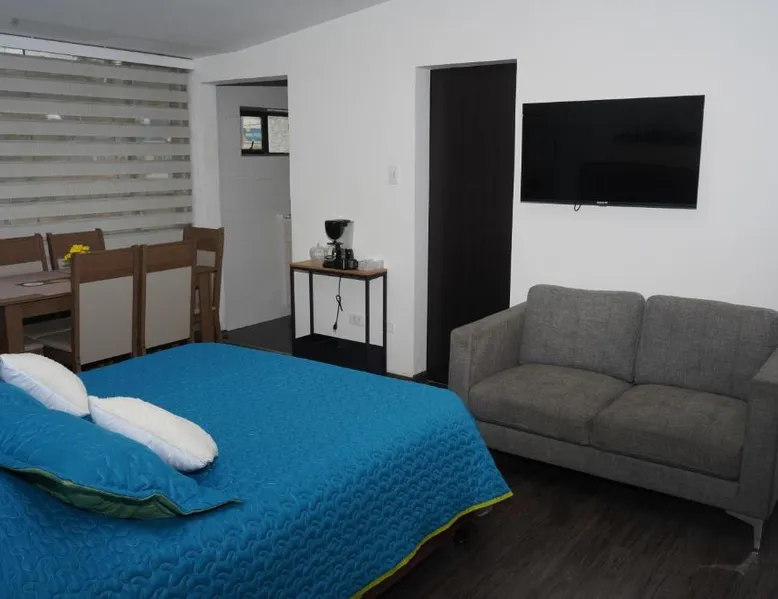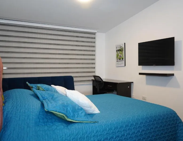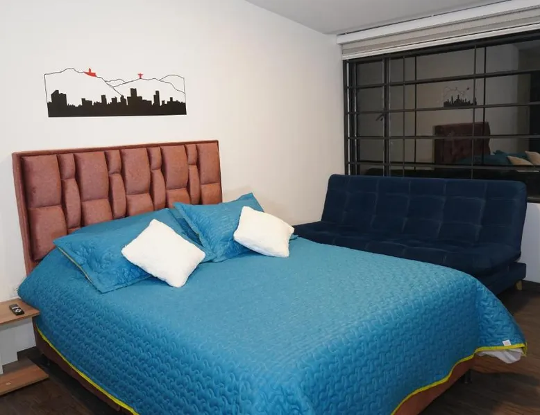 Modern Comforts: Apartamento Azucena - Casa Tartaruga Bogotá offers a recently renovated apartment in Bogotá. Guests enjoy a garden and free WiFi, ensuring a pleasant stay. Comfortable Living: The apartment features two bedrooms, a living room, and a bathroom. Amenities include a kitchen, dining table, sofa bed, free toiletries, bath or shower, TV, and wardrobe. Convenient Location: Located 3.7 mi from El Dorado International Airport, the property is near Virgilio Barco Library (1.2 mi) and El Campin Stadium (2.6 mi). An ice-skating rink is also in the surroundings. Highly Rated: Guests appreciate the excellent facilities, including a lounge, outdoor seating area, family rooms, and full-day security. The apartment's kitchen is available for cooking and storing food. This apartment features a dining area, a wardrobe and a flat-screen TV. The unit offers 3 beds.