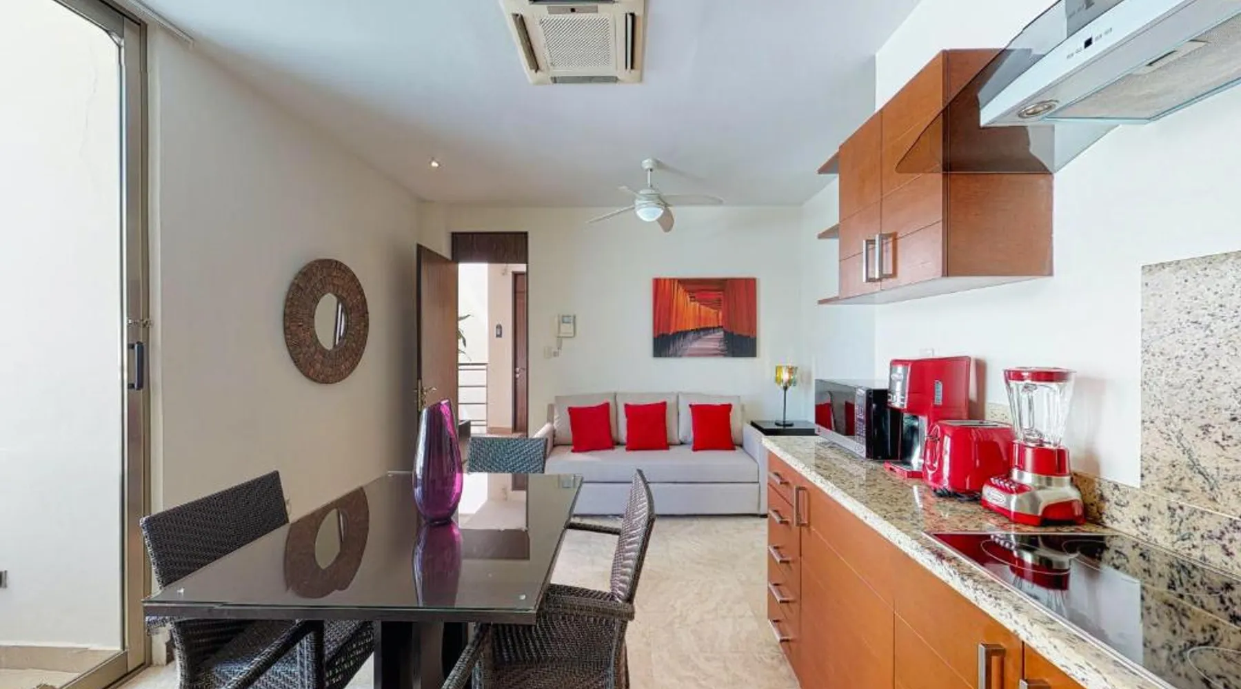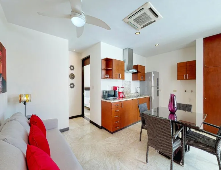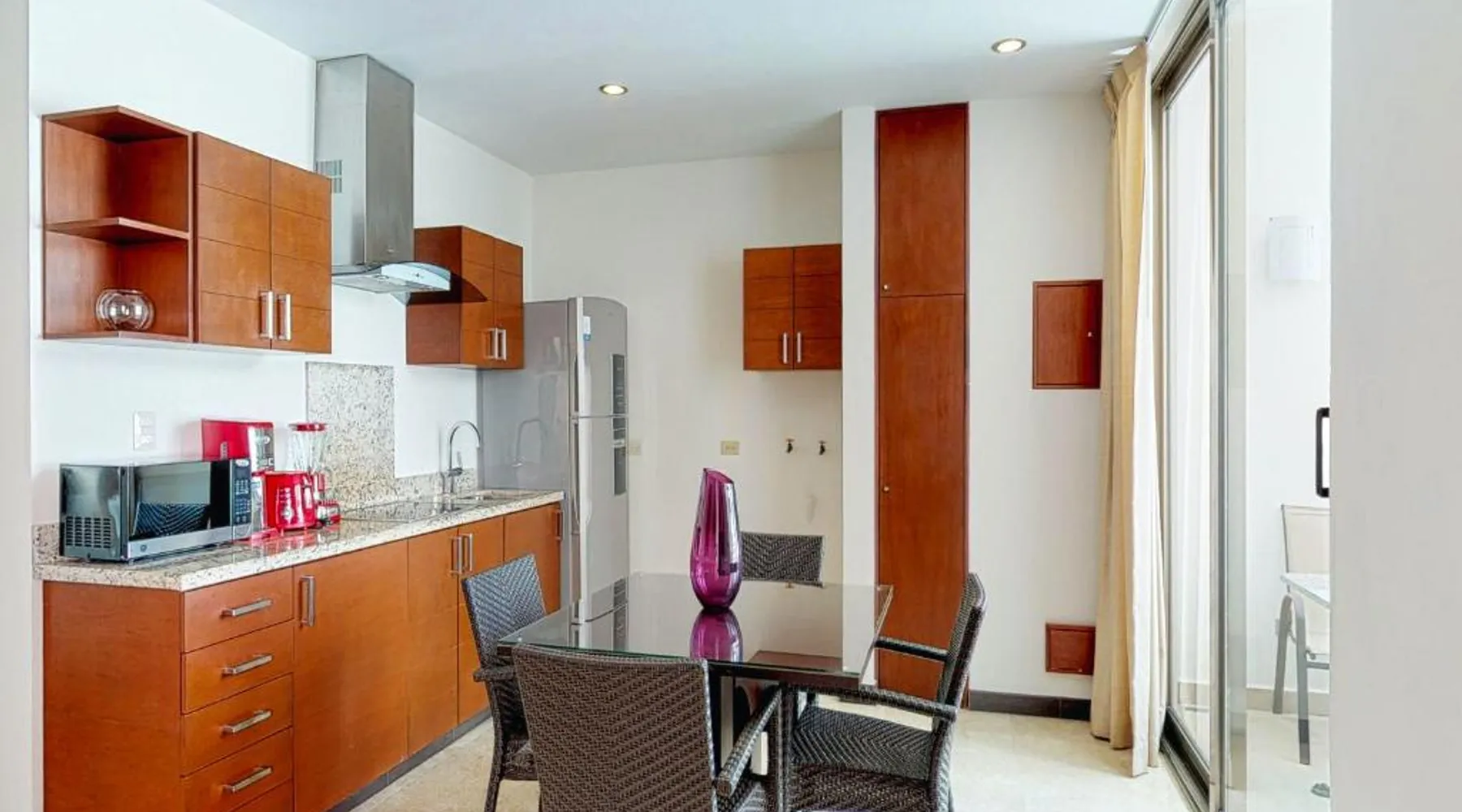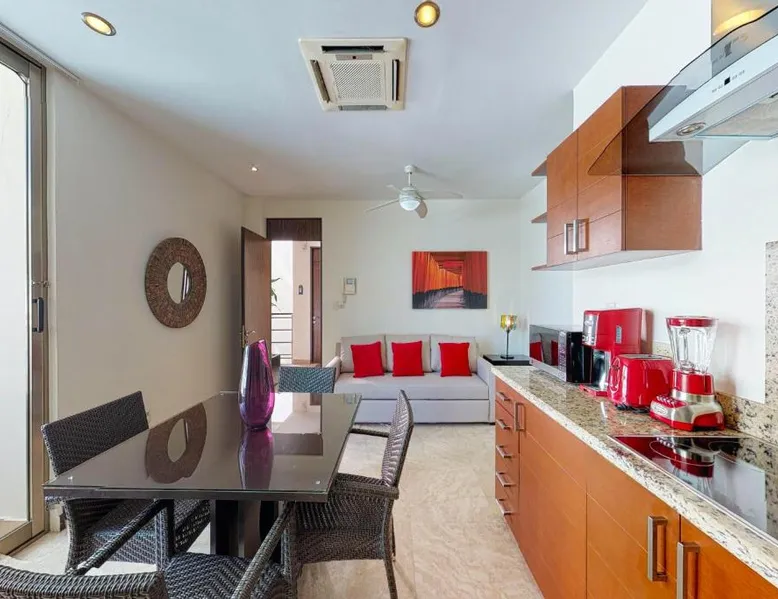 Prime Location: Klem Residence in Playa del Carmen offers a central position with Playa del Carmen Beach just a 3-minute walk away. Nearby attractions include the Church of Guadalupe, 18 minutes on foot, and the ADO International Bus Station, 1.2 mi from the property. Exceptional Facilities: Guests enjoy a rooftop swimming pool, outdoor seating area, and a kids' pool. Additional amenities include a terrace, balcony, and private bathroom. The apartment features air-conditioning, a kitchenette, and a dining area. Comfort and Convenience: The residence provides concierge service, streaming services, and a work desk. Free toiletries, a microwave, and a TV enhance the stay. Cozumel International Airport is 22 mi from the property. The rooftop pool is the standout feature of this apartment. This spacious apartment comes with 1 living room, 1 separate bedroom and 1 bathroom with a hairdryer and free toiletries. In the well-equipped kitchen, guests will find a stovetop, a refrigerator, kitchenware and a microwave. This air-conditioned apartment is consisted of of a dining area, a flat-screen TV with cable channels a private entrance and a terrace. The unit has 2 beds.