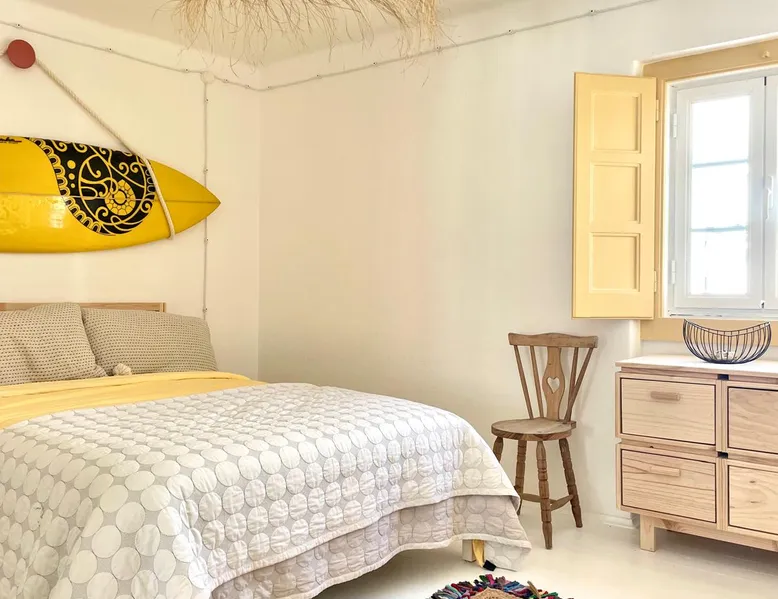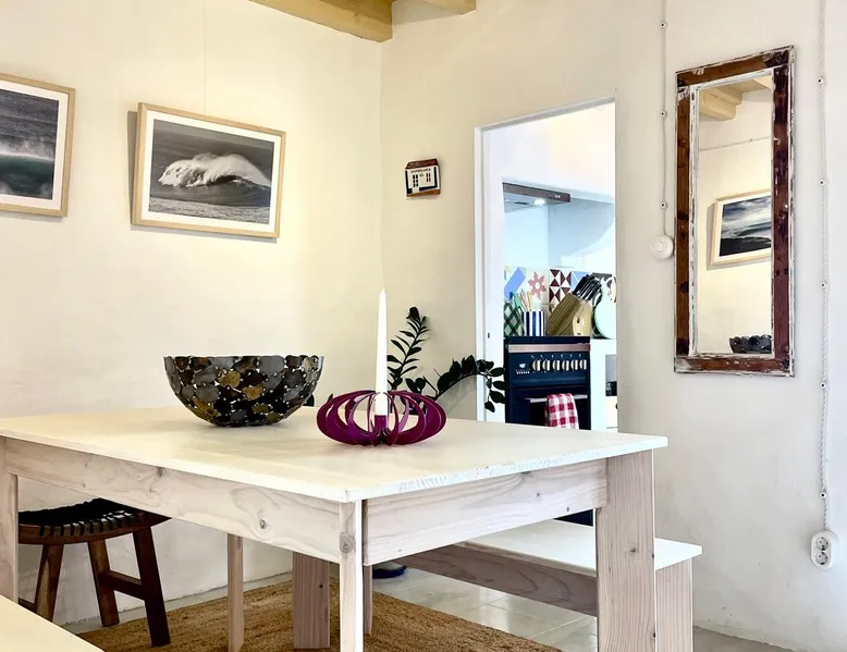 Welcome to our unique boutique surf house wit a pool in the heart of Ericeira/Ribamar. Recently renovated with handcrafted furniture and artisanal tiles, our stylish and colorful home offers pool, two outdoor areas for dining and BBQs. Breakfast can be provided. Located in a charming village, you’re steps away from seafood restaurants, winebars and surf shops. Explore many world-class surf beaches 5-min walk from the house. Perfect for a relaxed, vibrant stay where comfort meets coastal charm. The space Luxury Boutique Surf House in the Charming Village of Ribamar with a shared pool Nestled in the heart of the picturesque village of Ribamar, 5 min drive from Ericeira and 35 min drive from Lisbon, this boutique house offers a luxurious coastal retreat just minutes from severall world famouse surf beaches. You can stroll to Coxos, Ribeira d'Ilhias or São Lourenço beach in a couple of minutes and enjoy a day with swimming, surfing and beach restaurantes. Experience a blend of history and modern luxury in our 300-year-old house, that got a complete renovation 2024. BREAKFAST can be provided every morning, 15€ pp, served upon request. The stylish home features two beautifully designed bedrooms, a spacious dining area, a living room and a fully equipped kitchen with handcrafted Portuguese tiles and artisan porcelain. You will find a shared pool with a shower outside, where you’ll find two inviting areas perfect for relaxation, dining, and BBQs. Located in charming Ribamar, you’re just steps from seafood restaurants, surf shops, and wine bars. For added luxury and convenience, we offer a variety of premium services to enhance your stay: Airport transfer service, from 50€ depending of size of the group Delicious gourmet breakfast, 15€ pp, served upon request and is NOT included in the price (fresh pastries, fruits, juice, youghurt etc) Surf lessons with local experts, from 45€ Surf board rentals incl board and wetsuit, from 40€ pp Private yoga sessions, 15€ pp Guided biking tours, from 40 € pp Private chef's dinners, from 250€ Wine tasting experiences, from 30€ pp Horseback riding adventures, from 40€ pp Ceramic classes with local artisans, ask for price. Whether you're enjoying a chef-prepared dinner, relaxing by the pool, or exploring the coastline, this boutique house blends comfort, style, and exceptional services for an unforgettable experience in Portugal’s surf paradise. Perfect for surfers, families and all that loves the ocean, beaches, good food and a vibrant vibe in Ericeira/Ribamar - the world surf reserve. IN SHORT: Stylish, 120 kvm design villa with designer interiors Proximity to world-famous surf spots and beaches Two bedrooms, office space, shared heated pool and outdoor lounge areas Modern bathroom with shower. Modern kitchen with all essential amenities Have also 2 extra outdoors showers, perfect for surfers. 2 WC in total. Located in a charming village with nearby restaurants and shops. Guest access You will have full private access to the entire house and exterior, except the swimming pool that is placed in the house next to yours and shared with the host. Other things to note PARTIES are not allowed. Stays over night by people outside the reservation are not allowed without prior notice and authorization. CHECK IN, I will need information about all guests in the house: ▪ Name ▪ Date of birth ▪ Country of residence ▪ Address incl City (residence) ▪ Nationality ▪ Identity document (passport) ▪ Document number ▪ Issuing country CHECK IN: In Ericeira you need to pay the tourist tax in cash on arrival. Between May 1 and October 31, the rate is €2.20 per night. From November 1 to April 30, the tax decreases to €1.10 per night. This tax applies to guests aged 13 and over, with a cap of seven nights per stay. This revenue supports local infrastructure and tourism-related services in response to increased visitor numbers, which impact local facilities and resources. POOL Do not bring sand into the pool. There is an outside shower. Glass cups are not allowed in the pool area, we have plastic cups. FURNITURE It is not allowed to move or change the position of furniture. Damage in the house (walls/floor/...) and furniture will result in repair costs. It is not permitted to remove furniture outside the local accommodation. CANDLES It is not allowed to have candles in the house. ANIMALS are not allowed. Registration Details Exempt