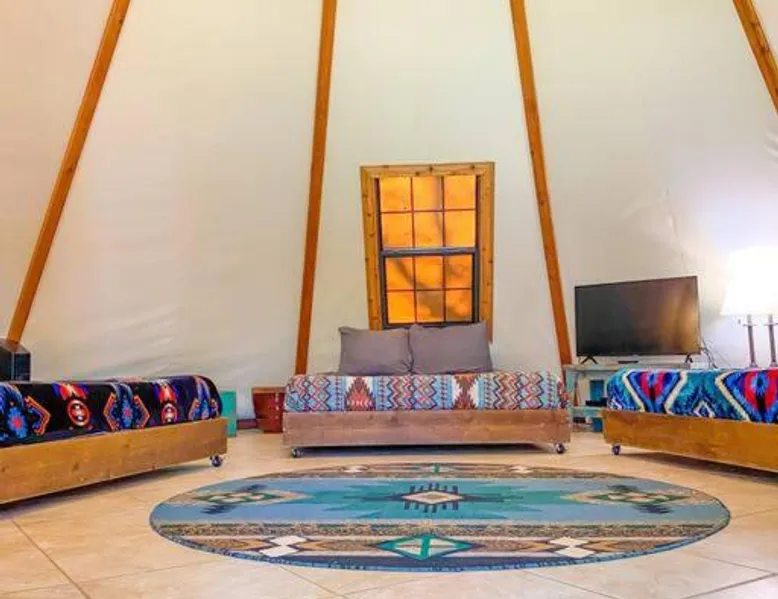 Comfortable Living: Waterfront Teepee 2 Red Fox in Seguin offers a cozy holiday home with one bedroom and one bathroom. Guests enjoy free WiFi, air-conditioning, and a fully equipped kitchenette. Relaxing Amenities: The property features a hot tub, patio, barbecue, and a tea and coffee maker. Additional amenities include a refrigerator, microwave, kitchenware, and a TV, ensuring a pleasant stay. Convenient Location: Located 37 mi from San Antonio International Airport, the holiday home is close to attractions such as Comal Park (14 mi), Schlitterbahn Waterpark Resort (14 mi), and Comal River (15 mi). Free on-site parking is available. Guests will have a special experience as this holiday home offers a hot tub. The air-conditioned holiday home has 1 bedroom, 1 bathroom and a kitchenette. A kitchenette fitted with a refrigerator, kitchenware and a microwave is available for cooking and storing food. This holiday home features a tea and coffee maker, a barbecue, a TV with cable channels and a patio. The unit has 3 beds.