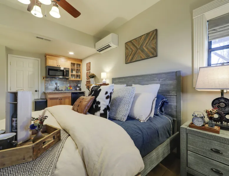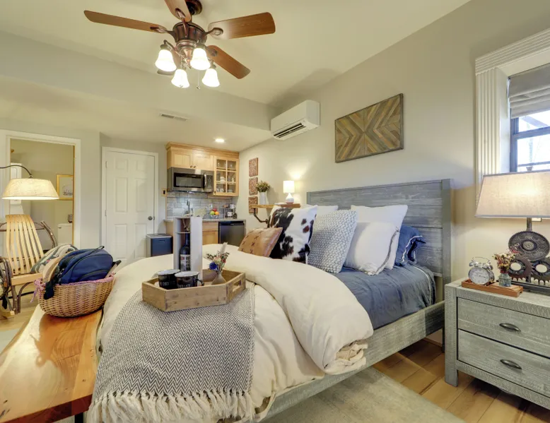 Day Trip to Asheville | Near Outdoor Recreation | Game Nights at Home Escape to the beauty of North Carolina and unwind at 'Firefly Cabin,' a charming 1-bedroom, 1-bath vacation rental in Mars Hill. Nestled amid nature with picturesque views, this cozy abode offers an idyllic blend of comfort and tranquility, perfect for a relaxing getaway. Ready to adventure? Practice your swing at Reems Creek Golf Club, then head into town for a delicious dinner. The mountains are calling — answer today! -- THE PROPERTY -- SLEEPING ARRANGEMENTS - Bedroom: 1 queen bed INDOOR LIVING - Smart TV, books/board games - Dining island - Fireplace - Laptop-friendly workspace OUTDOOR LIVING - Furnished patio - Gas fire pit - Mountain views KITCHEN - Mini refrigerator, microwave, hot plate - Cooking basics, dishware/flatware GENERAL - Free WiFi - Central A/C & heating, ceiling fans - Washer/dryer - Towels & linens, trash bags & paper towels - Hair dryer, hangers, iron/board FAQ - 3 exterior security cameras (outward facing) - 4WD recommended - Homeowner on-site (upstairs) w/ shared driveway & yard ACCESSIBILITY - Single-story cabin w/ step-free entry PARKING - Garage (1 vehicle) - Shared driveway (1 vehicle) -- THE LOCATION -- - 2 miles to Downtown Mars Hill - 3 miles to Mars Hill Recreation Park - 11 miles to Smoky Mountain Trail Rides & 17 miles to Sandy Bottom Trail Rides - 14 miles to Hatley Pointe Mountain Resort - 15 miles to Reems Creek Golf Club - 21 miles to Asheville - 33 miles to Asheville Regional Airport & 96 miles to Greenville-Spartanburg International Airport -- REST EASY WITH US -- Evolve makes it easy to find and book properties you’ll never want to leave. You can relax knowing that our properties will always be ready for you and that we’ll answer the phone 24/7. Even better, if anything is off about your stay, we’ll make it right. You can count on our homes and our people to make you feel welcome — because we know what vacation means to you. -- POLICIES -- - No smoking - No pets allowed - No events, parties, or large gatherings - Additional fees and taxes may apply - Photo ID may be required upon check-in ADDITIONAL INFORMATION - Your safety matters. This property features 3 exterior security cameras. The cameras are all located on the front of the house and face the driveway, the top of the steps, and the front entryway. The cameras are outward facing and do not look into any interior spaces. They record video and audio when motion is detected - Four-wheel drive or all-wheel drive is recommended to access the property - The homeowner lives on-site, in a separate unit with a separate entrance, and shares the driveway and front yard - This single-story cabin offers step-free entry