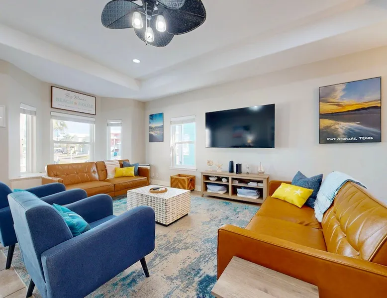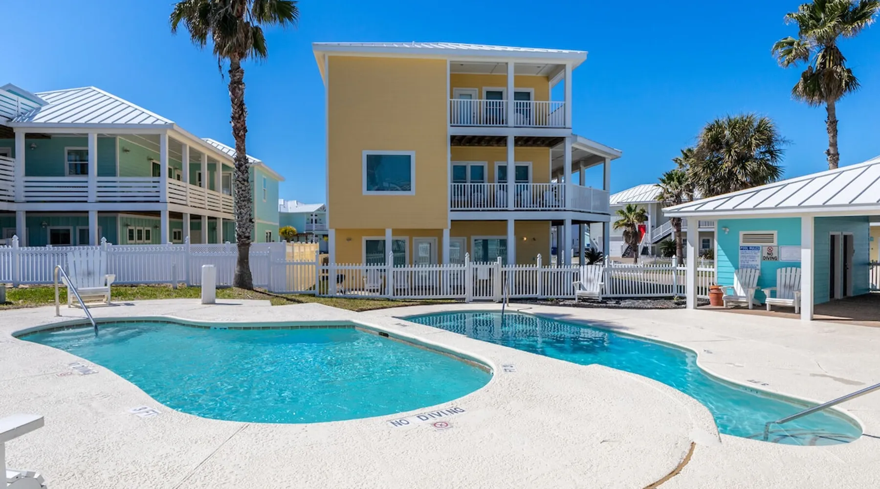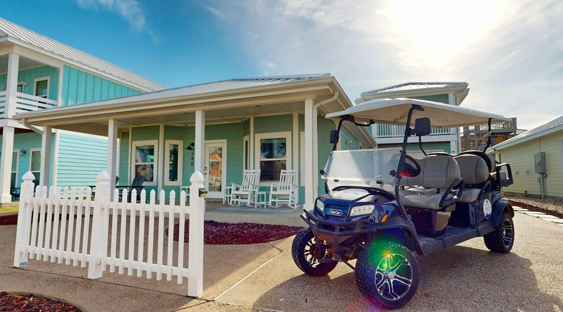 RS146: Big Mama's Beach House 4BD, 3BA, Multiple Shared Pools and Hot Tub, Golf Cart Included, Boardwalk to the Beach, Dog Friendly Welcome to Big Mama's Beach House, a delightful retreat nestled in the idyllic Royal Sands subdivision. This charming beach house offers the perfect blend of comfort and convenience, making it an ideal getaway for families or groups of friends. The space Step inside to discover a beautifully designed living space characterized by an open-concept floor plan that promotes a warm and inviting atmosphere. The fully equipped kitchen features sleek stainless steel appliances and a breakfast bar, perfect for casual meals and morning coffee. Gather around the dining area for family meals or unwind in the spacious living room, where there's plenty of room for movie nights and memorable gatherings. This lovely home boasts three well-appointed bedrooms and two bathrooms on the main level, providing ample space for relaxation. The fourth bedroom, along with another full bathroom, is conveniently located above the garage, accessible via an outside staircase—perfect for extra privacy or accommodating guests. Big Mama's Beach House is designed for enjoyment and relaxation, featuring a range of amenities to enhance your stay. Cool off in the shared pool on hot summer days or take advantage of the included golf cart, which offers easy access to the nearby beach via the scenic boardwalk. Additionally, the property is pet-friendly with a designated turf area in the fenced back yard, so you can bring your furry companions along for the adventure. An outdoor shower adds to the convenience, allowing you to rinse off after a fun day at the beach. Don't miss your chance to create lasting memories at Big Mama's Beach House—your perfect coastal getaway awaits! Things to know: WIFI Golf Cart Included (6-Seater Golf Cart Included - Subject to a $10 Fuel Charge – Short Term Stay Only) Multiple Shared Pools and Hot Tub Charcoal grill (Please provide your own charcoal) Fully equipped Kitchen (Keurig Coffee Maker. Starter set of K-Cups and Filters Provided!) Pack and Play Margarita Machine Mini fridge in up-stairs bunk room Fenced Yard with designated turf pet area Workstation with monitor in main house Washer/Dryer (Starter set of Laundry Pods Provided!) Pet Friendly ($95 Pet Fee per pet, Limit 2) - Dogs only, No Cats Parking for 4 vehicles, Parking is not allowed on the street *Boat parking permitted ONLY in driveway, NO ATVs or RVs allowed as per the HOA Must be 25 years old to book one of our units. Strictly enforced, ID verified upon check-in. We provide WIFI to enhance your stay and keep you connected. While Port A is typically reliable, you may experience occasional outages beyond our control. Thank you for your understanding. Construction is a constant in Port Aransas. While we strive to ensure your visit is peaceful, you may encounter sights and sounds of building projects or community improvements during your stay. We appreciate your understanding as we work towards making our community better for everyone. Bedrooms and bathrooms: BR1 King, TV, Closet, Ensuite bath w/ walk-in shower, single vanity BR2 King, TV, Chest, Closet BD3 Full, TV, Chest, Closet Hall Bath w/ Tub/shower combo, single vanity Above Garage BD4 Twin over Full, Twin w/Twin Trundle, Queen Sleeper Sofa, TV, Closet, Ensuite bath w/ tub/shower combo, single vanity STR #