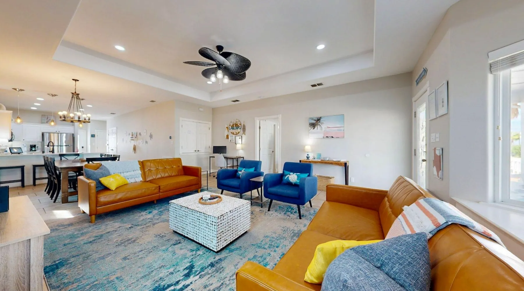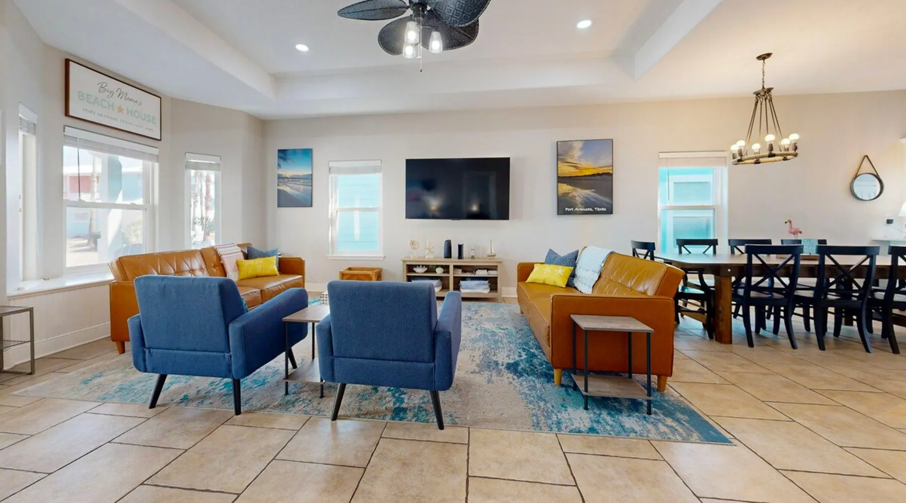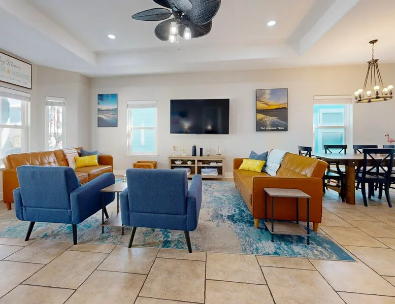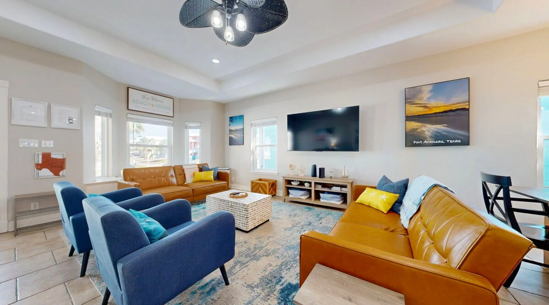 RS146: Big Mama's Beach House 4BD, 3BA, Multiple Shared Pools and Hot Tub, Golf Cart Included, Boardwalk to the Beach, Dog Friendly Welcome to Big Mama's Beach House, a delightful retreat nestled in the idyllic Royal Sands subdivision. This charming beach house offers the perfect blend of comfort and convenience, making it an ideal getaway for families or groups of friends. The space Step inside to discover a beautifully designed living space characterized by an open-concept floor plan that promotes a warm and inviting atmosphere. The fully equipped kitchen features sleek stainless steel appliances and a breakfast bar, perfect for casual meals and morning coffee. Gather around the dining area for family meals or unwind in the spacious living room, where there's plenty of room for movie nights and memorable gatherings. This lovely home boasts three well-appointed bedrooms and two bathrooms on the main level, providing ample space for relaxation. The fourth bedroom, along with another full bathroom, is conveniently located above the garage, accessible via an outside staircase—perfect for extra privacy or accommodating guests. Big Mama's Beach House is designed for enjoyment and relaxation, featuring a range of amenities to enhance your stay. Cool off in the shared pool on hot summer days or take advantage of the included golf cart, which offers easy access to the nearby beach via the scenic boardwalk. Additionally, the property is pet-friendly with a designated turf area in the fenced back yard, so you can bring your furry companions along for the adventure. An outdoor shower adds to the convenience, allowing you to rinse off after a fun day at the beach. Don't miss your chance to create lasting memories at Big Mama's Beach House—your perfect coastal getaway awaits! Things to know: WIFI Golf Cart Included (6-Seater Golf Cart Included - Subject to a $10 Fuel Charge – Short Term Stay Only) Multiple Shared Pools and Hot Tub Charcoal grill (Please provide your own charcoal) Fully equipped Kitchen (Keurig Coffee Maker. Starter set of K-Cups and Filters Provided!) Pack and Play Margarita Machine Mini fridge in up-stairs bunk room Fenced Yard with designated turf pet area Workstation with monitor in main house Washer/Dryer (Starter set of Laundry Pods Provided!) Pet Friendly ($95 Pet Fee per pet, Limit 2) - Dogs only, No Cats Parking for 4 vehicles, Parking is not allowed on the street *Boat parking permitted ONLY in driveway, NO ATVs or RVs allowed as per the HOA Must be 25 years old to book one of our units. Strictly enforced, ID verified upon check-in. We provide WIFI to enhance your stay and keep you connected. While Port A is typically reliable, you may experience occasional outages beyond our control. Thank you for your understanding. Construction is a constant in Port Aransas. While we strive to ensure your visit is peaceful, you may encounter sights and sounds of building projects or community improvements during your stay. We appreciate your understanding as we work towards making our community better for everyone. Bedrooms and bathrooms: BR1 King, TV, Closet, Ensuite bath w/ walk-in shower, single vanity BR2 King, TV, Chest, Closet BD3 Full, TV, Chest, Closet Hall Bath w/ Tub/shower combo, single vanity Above Garage BD4 Twin over Full, Twin w/Twin Trundle, Queen Sleeper Sofa, TV, Closet, Ensuite bath w/ tub/shower combo, single vanity STR #