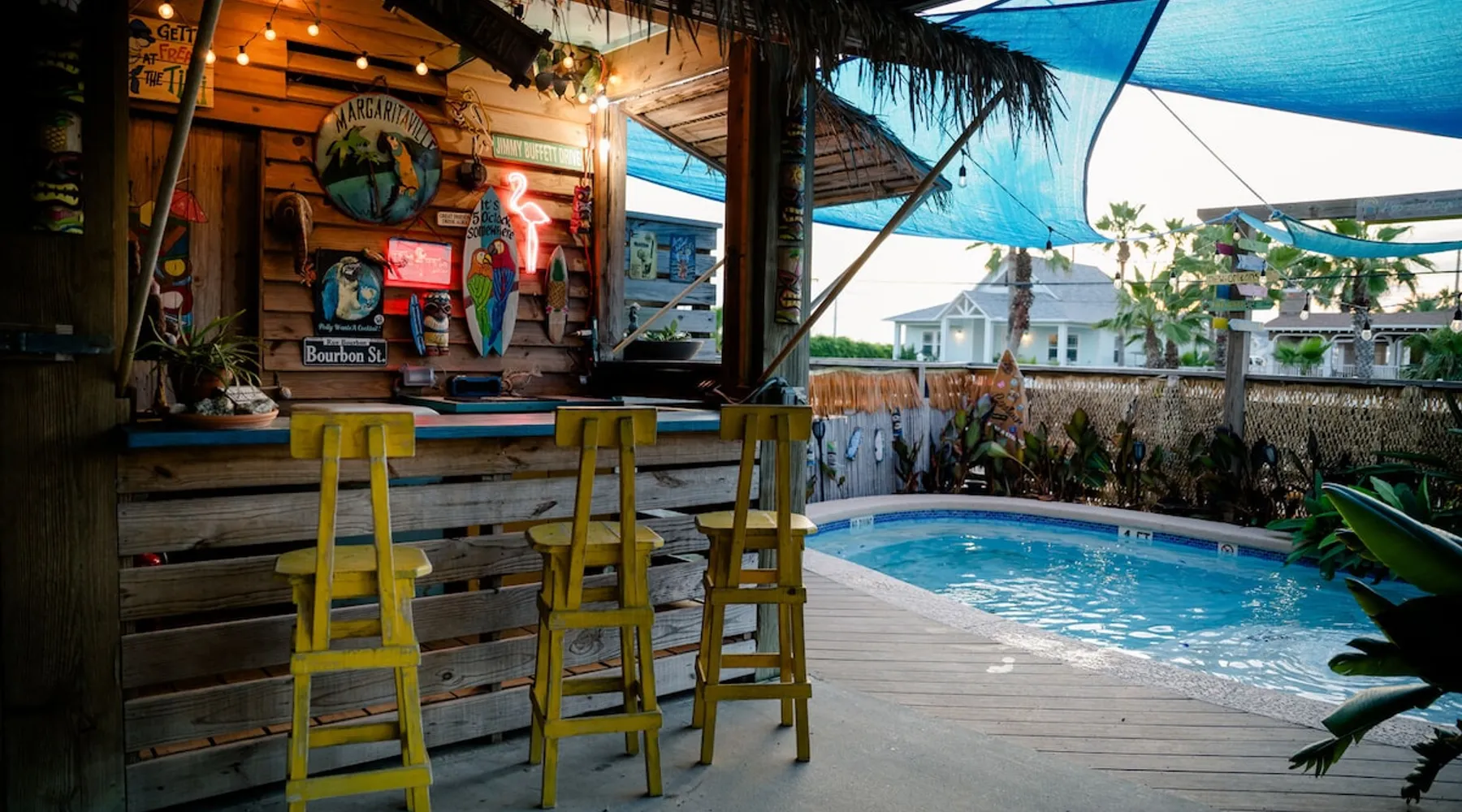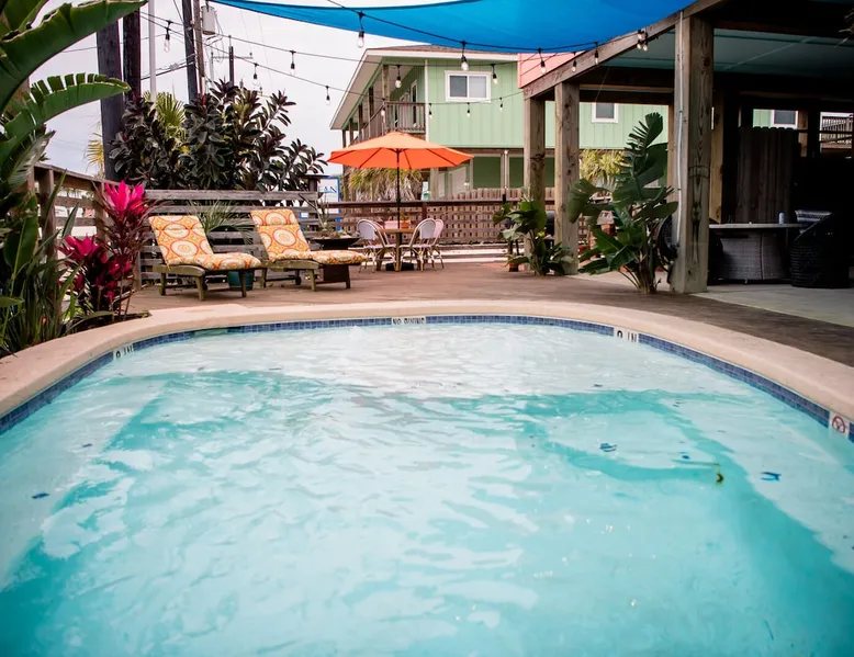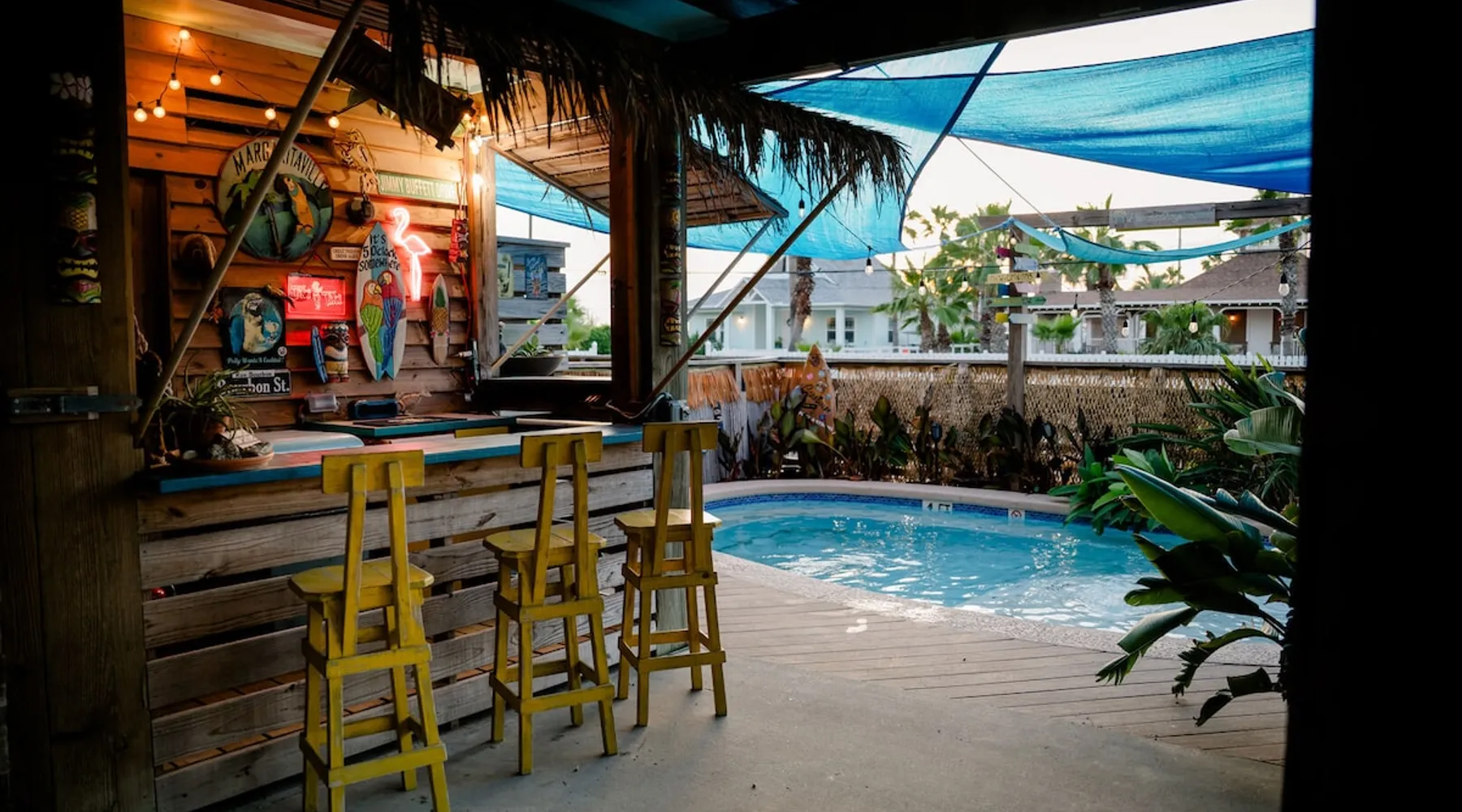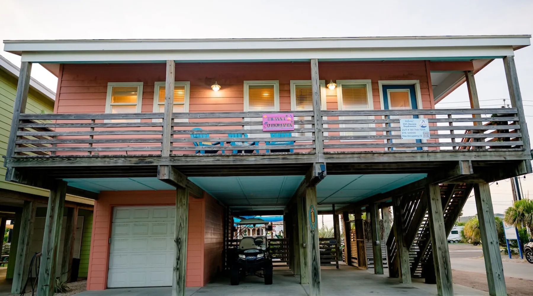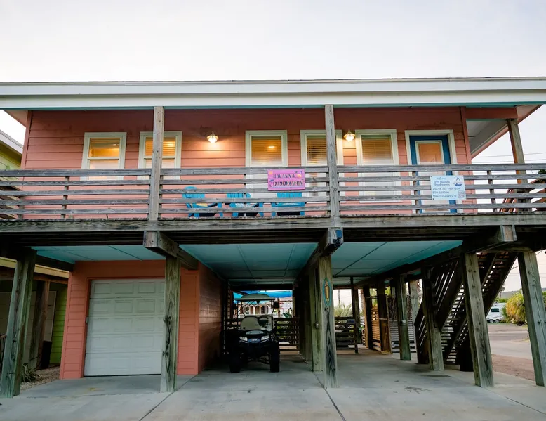 OV1: Havana Daydreamin' 4BD, 3.5BA, Private Heated Pool, Golf Cart Included, Shared Pool, Shuffleboard Table, Parking for 3 Welcome to Havana Daydreamin', your perfect coastal getaway just minutes from the beach and the vibrant downtown of Port Aransas! This charming stilted home, nestled in the desirable Ocean Village community, offers an idyllic blend of relaxation and entertainment. The space Step inside to discover an open-concept layout that seamlessly combines style and functionality. The spacious, well-equipped kitchen is a chef's dream, featuring a breakfast bar, farmhouse sink, and high-end appliances, including a 5-burner gas stove and Big Chill refrigerator. With essential cooking tools at your fingertips, including a microwave, toaster oven, blender, Instapot, and waffle maker, you’ll have everything you need to prepare delicious meals for family and friends. Gather around the custom-built formal dining table that comfortably seats 10 for unforgettable dinners. After a delightful meal, unleash your inner mixologist at the wet bar, complete with a margarita machine and barware for your favorite frozen cocktails! The home's inviting ambiance is enhanced by white-washed wood floors and walls, along with abundant windows that fill the spacious living room with natural light—perfect for cozy gatherings or quiet evenings. When it’s time to unwind, choose from multiple outdoor spaces. Sip your morning coffee while soaking in the sunrise on the expansive 35-foot front deck or head to your private heated pool for a refreshing dip. Enjoy the Tiki bar complete with an ice maker, there's also a fire-pit, a smoker/grill and an outdoor table to enjoy dining outside. With a shuffleboard for fun-filled afternoons and a 6-passenger golf cart included for easy beach access, you'll never run out of ways to enjoy your time here. With 4 beautifully appointed bedrooms and 3.5 bathrooms, there’s ample space for everyone to relax and recharge. Havana Daydreamin' is not just a home; it's the ultimate vacation retreat. Don’t miss your chance to own this slice of paradise! Things to know: WIFI Golf Cart Included (6-Seater Golf Cart Included - Subject to a $10 Fuel Charge – Short Term Stay Only) Private Heated Pool ($50 charge per day for pool heat, and must remain on for the duration of stay) Pools are serviced weekly, upwards of twice per week during the summertime. Services may be performed while occupied. Shared Pool Charcoal grill (Please provide your own charcoal) Fully equipped Kitchen (Drip coffee maker, Keurig and Nespresso. Coffee, Pods etc. are not provided.) Margarita Machine Ninja Instant Pot High Chair Washer/Dryer (No laundry soap provided) Property comes with a starter pack of toiletries, any supplies beyond this are up to the guest to replenish. No Pets Allowed Parking for 3 vehicles Must be 25 years old to book one of our units. Strictly enforced, ID verified upon check-in. We provide WIFI to enhance your stay and keep you connected. While Port A is typically reliable, you may experience occasional outages beyond our control. Thank you for your understanding. Construction is a constant in Port Aransas. While we strive to ensure your visit is peaceful, you may encounter sights and sounds of building, projects or community improvements during your stay. We appreciate your understanding as we work towards making our community better for everyone. Bedrooms and bathrooms: BR1 King, TV, Ensuite Bath w/ walk-in shower, single vanity BR2 King, TV, Ensuite Bath w/ walk-in shower, single vanity BD3 BR2 King, TV BD4 Queen, 2 Twins in Bunk Form Hall Bath w/ tub/shower combo, single vanity Living Room Queen Sleeper Sofa Half Bath