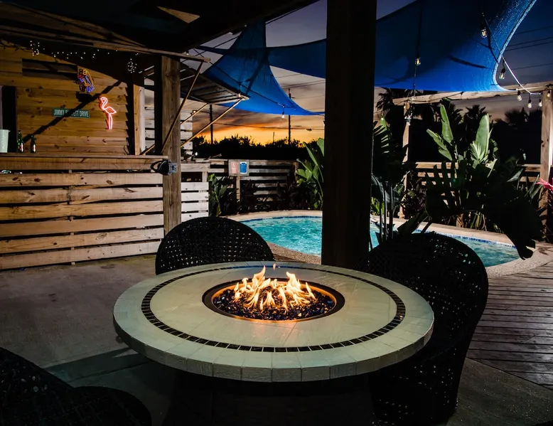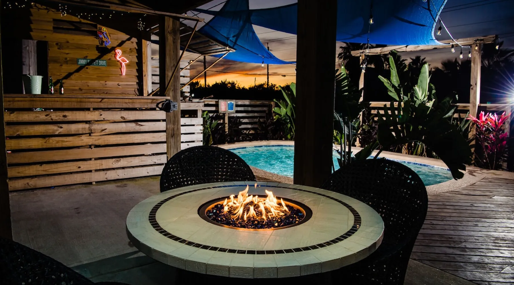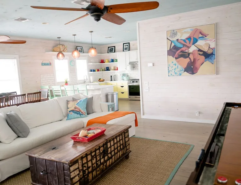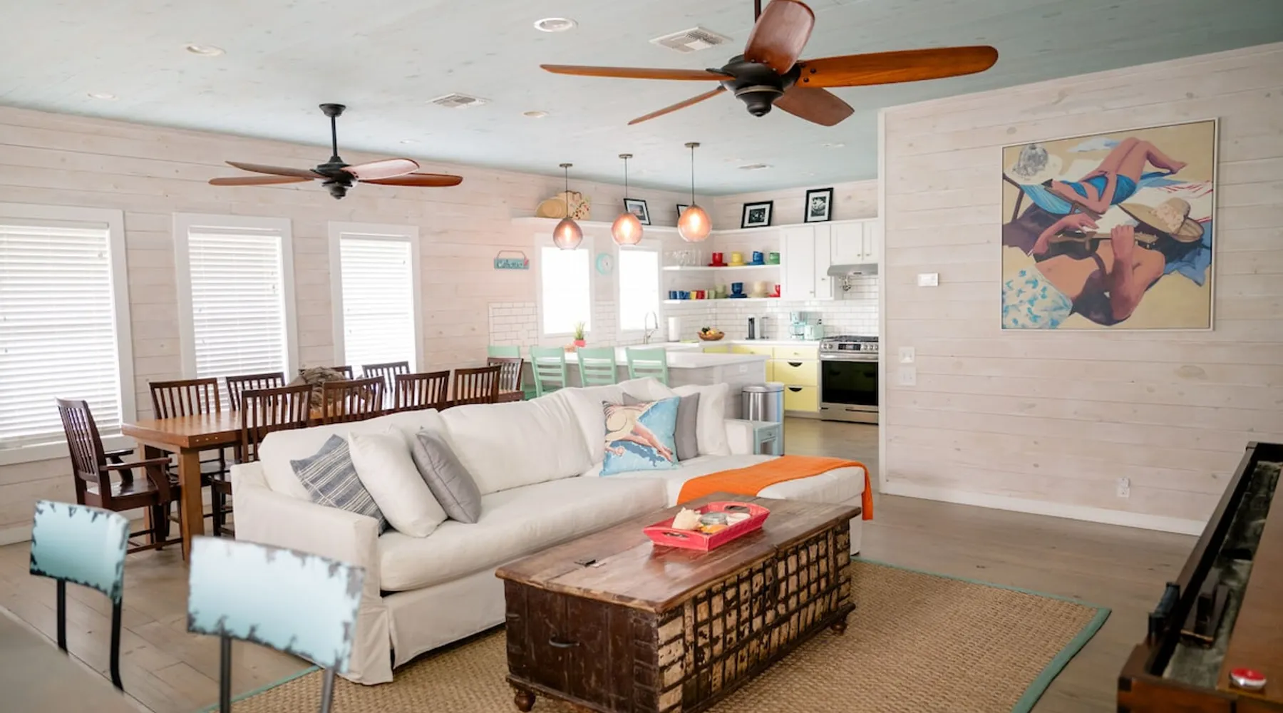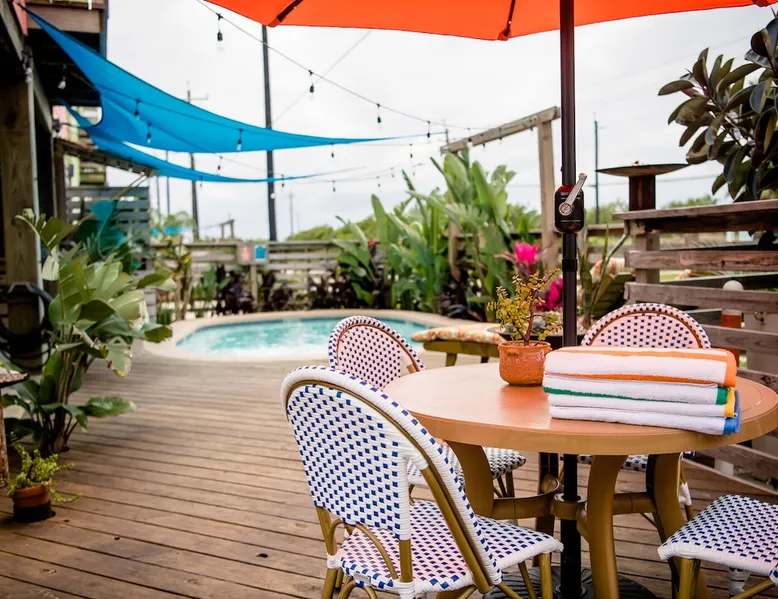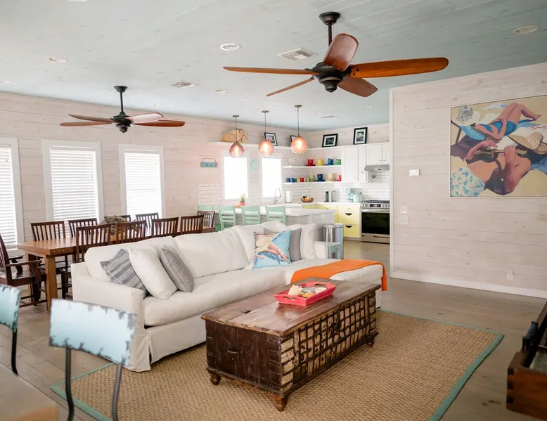 OV1: Havana Daydreamin' 4BD, 3.5BA, Private Heated Pool, Golf Cart Included, Shared Pool, Shuffleboard Table, Parking for 3 Welcome to Havana Daydreamin', your perfect coastal getaway just minutes from the beach and the vibrant downtown of Port Aransas! This charming stilted home, nestled in the desirable Ocean Village community, offers an idyllic blend of relaxation and entertainment. The space Step inside to discover an open-concept layout that seamlessly combines style and functionality. The spacious, well-equipped kitchen is a chef's dream, featuring a breakfast bar, farmhouse sink, and high-end appliances, including a 5-burner gas stove and Big Chill refrigerator. With essential cooking tools at your fingertips, including a microwave, toaster oven, blender, Instapot, and waffle maker, you’ll have everything you need to prepare delicious meals for family and friends. Gather around the custom-built formal dining table that comfortably seats 10 for unforgettable dinners. After a delightful meal, unleash your inner mixologist at the wet bar, complete with a margarita machine and barware for your favorite frozen cocktails! The home's inviting ambiance is enhanced by white-washed wood floors and walls, along with abundant windows that fill the spacious living room with natural light—perfect for cozy gatherings or quiet evenings. When it’s time to unwind, choose from multiple outdoor spaces. Sip your morning coffee while soaking in the sunrise on the expansive 35-foot front deck or head to your private heated pool for a refreshing dip. Enjoy the Tiki bar complete with an ice maker, there's also a fire-pit, a smoker/grill and an outdoor table to enjoy dining outside. With a shuffleboard for fun-filled afternoons and a 6-passenger golf cart included for easy beach access, you'll never run out of ways to enjoy your time here. With 4 beautifully appointed bedrooms and 3.5 bathrooms, there’s ample space for everyone to relax and recharge. Havana Daydreamin' is not just a home; it's the ultimate vacation retreat. Don’t miss your chance to own this slice of paradise! Things to know: WIFI Golf Cart Included (6-Seater Golf Cart Included - Subject to a $10 Fuel Charge – Short Term Stay Only) Private Heated Pool ($50 charge per day for pool heat, and must remain on for the duration of stay) Pools are serviced weekly, upwards of twice per week during the summertime. Services may be performed while occupied. Shared Pool Charcoal grill (Please provide your own charcoal) Fully equipped Kitchen (Drip coffee maker, Keurig and Nespresso. Coffee, Pods etc. are not provided.) Margarita Machine Ninja Instant Pot High Chair Washer/Dryer (No laundry soap provided) Property comes with a starter pack of toiletries, any supplies beyond this are up to the guest to replenish. No Pets Allowed Parking for 3 vehicles Must be 25 years old to book one of our units. Strictly enforced, ID verified upon check-in. We provide WIFI to enhance your stay and keep you connected. While Port A is typically reliable, you may experience occasional outages beyond our control. Thank you for your understanding. Construction is a constant in Port Aransas. While we strive to ensure your visit is peaceful, you may encounter sights and sounds of building, projects or community improvements during your stay. We appreciate your understanding as we work towards making our community better for everyone. Bedrooms and bathrooms: BR1 King, TV, Ensuite Bath w/ walk-in shower, single vanity BR2 King, TV, Ensuite Bath w/ walk-in shower, single vanity BD3 BR2 King, TV BD4 Queen, 2 Twins in Bunk Form Hall Bath w/ tub/shower combo, single vanity Living Room Queen Sleeper Sofa Half Bath